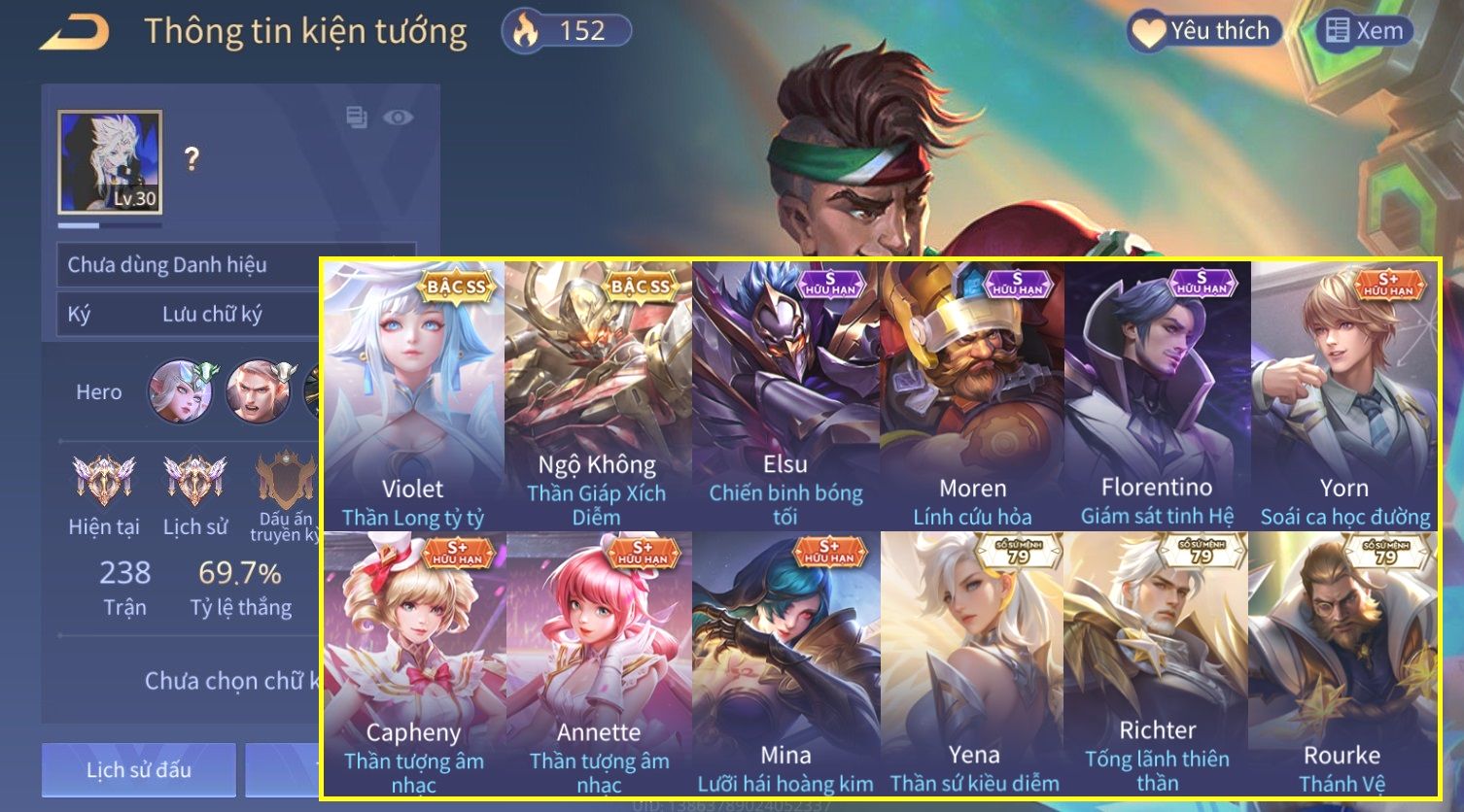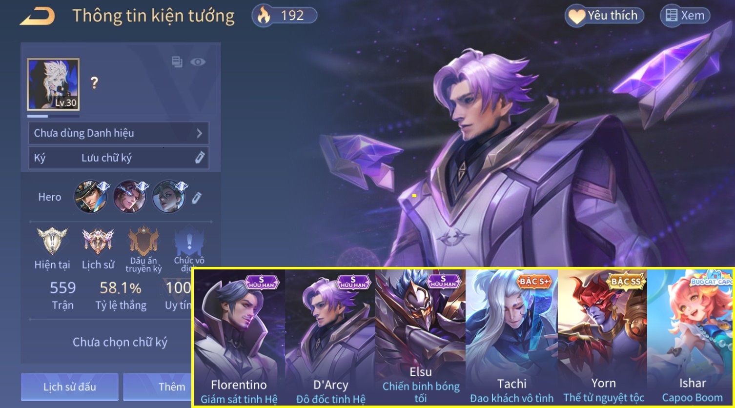 Nổi bật: FUL SKIN OMEN Airi Kiemono×Omen Đao Phủ Tận Thế×Yorn Thế Tử Nguyệt Tộc×Omen Nhạc Sĩ Huyền Thoại×Omen Quái Kiệt Guitar×Omen Ám Tử Đao×Omen Chiến Binh Trăng Khuyết×Omen Quỷ Nguyệt Tướng×