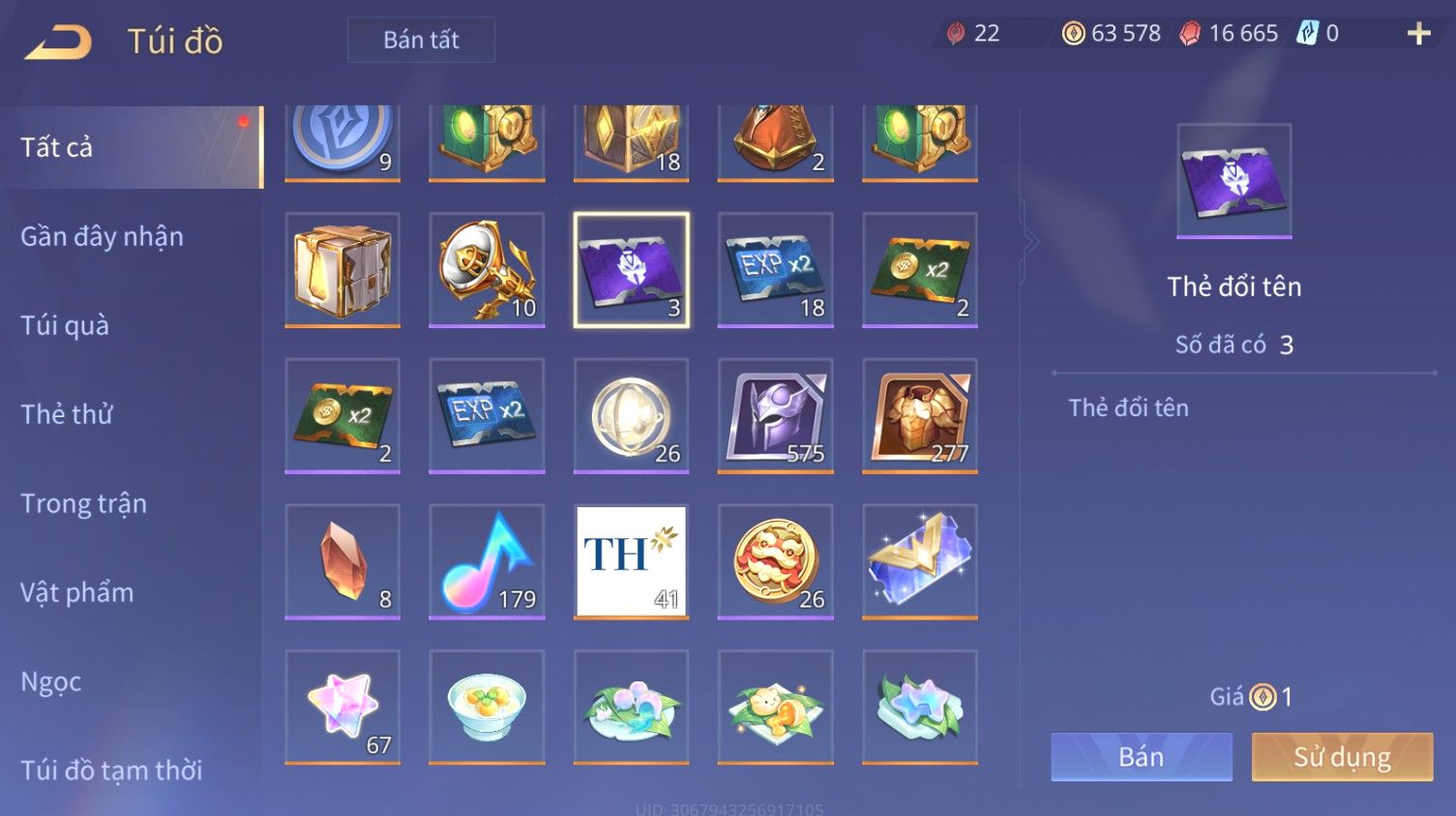 Trạng Thái: Nick có SĐT or Gmail Của Shop( Có Thể Thay Đổi)