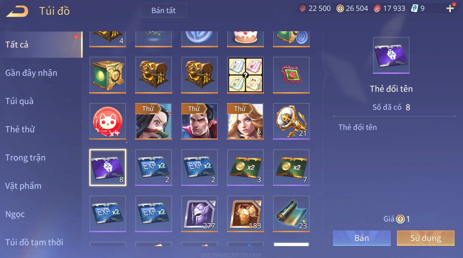 Trạng Thái: Nick có SĐT or Gmail Của Shop( Có Thể Thay Đổi)