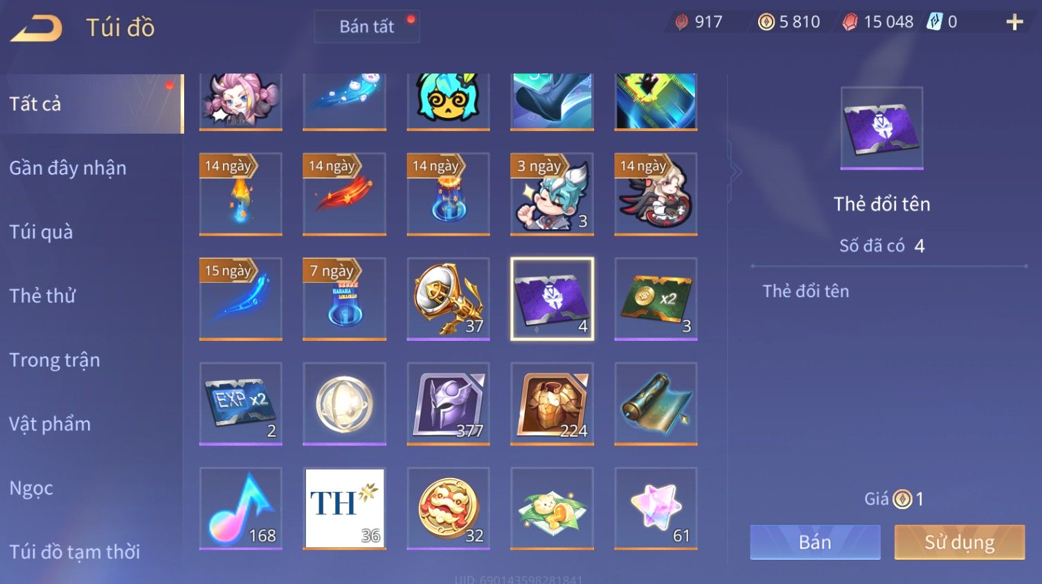Trạng Thái: Nick có SĐT or Gmail Của Shop( Có Thể Thay Đổi)