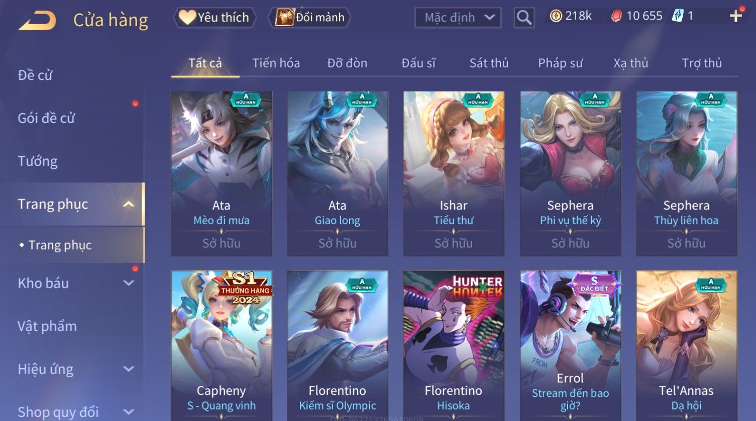 Nổi bật: Skin: Điêu Thuyền Thất Tịch Tiên Tử Full Ngọc, Nhiều Skin Đẹp