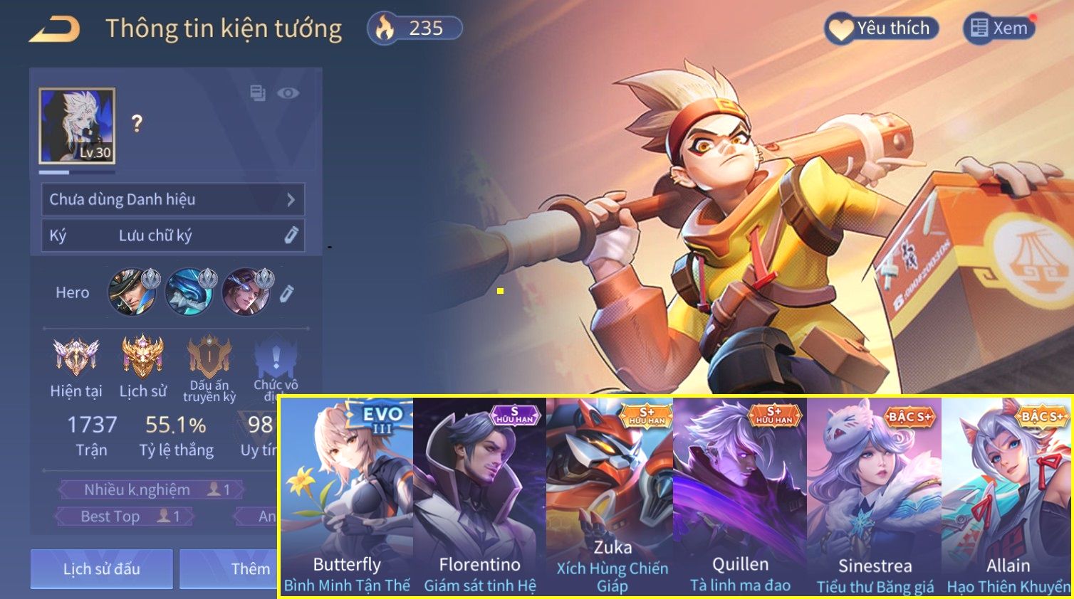 Nổi bật: Skin: Laville Xạ thần Tinh Vệ×Florentino Giám Sát Tinh Hệ×Elsu Chiến Binh Bóng Tối×Airi Thánh Nữ Xiêm La×Qi Búp Bê Daruma×Teemee Tanuki Chiêu Tài×