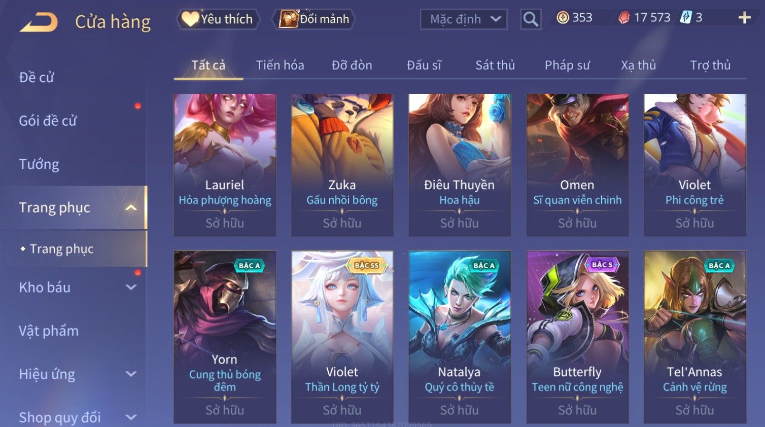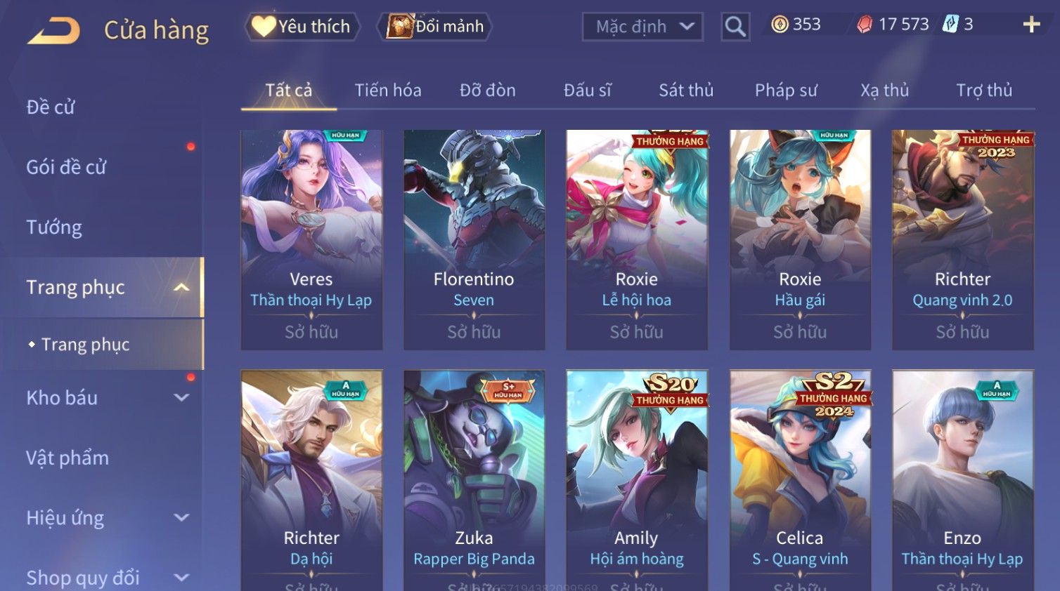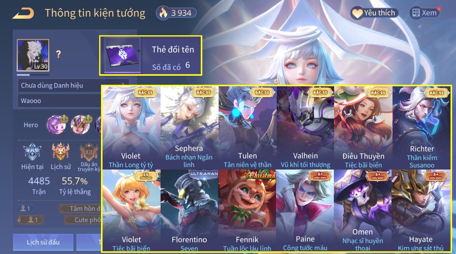 Nổi bật: Skin: Violet Thần Long Tỷ Tỷ×Tulen Tân Niên Vệ Thần×Valhein Vũ Khí Tối Thượng×Richter Thần Kiếm Susanoo×Florentino Seven×Sephera