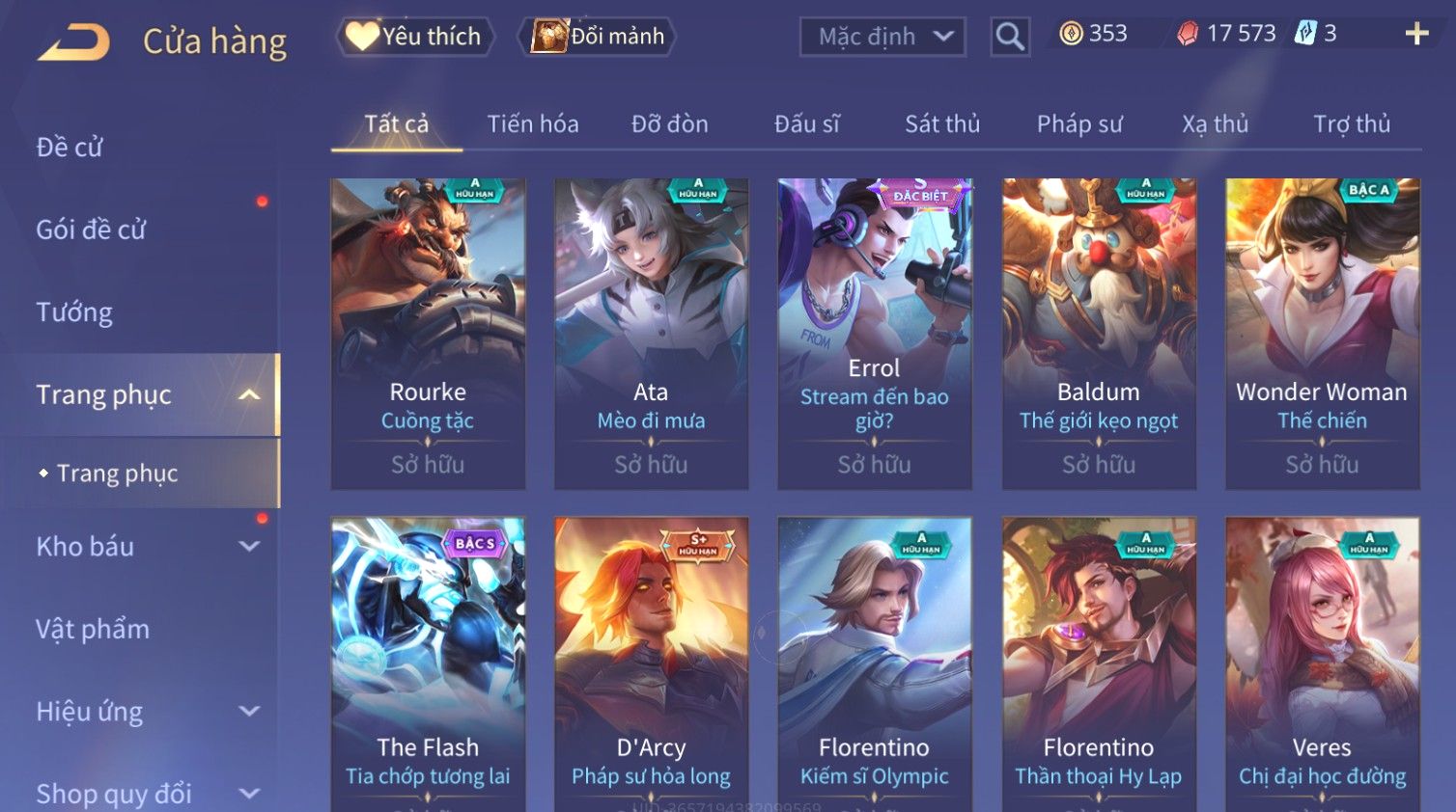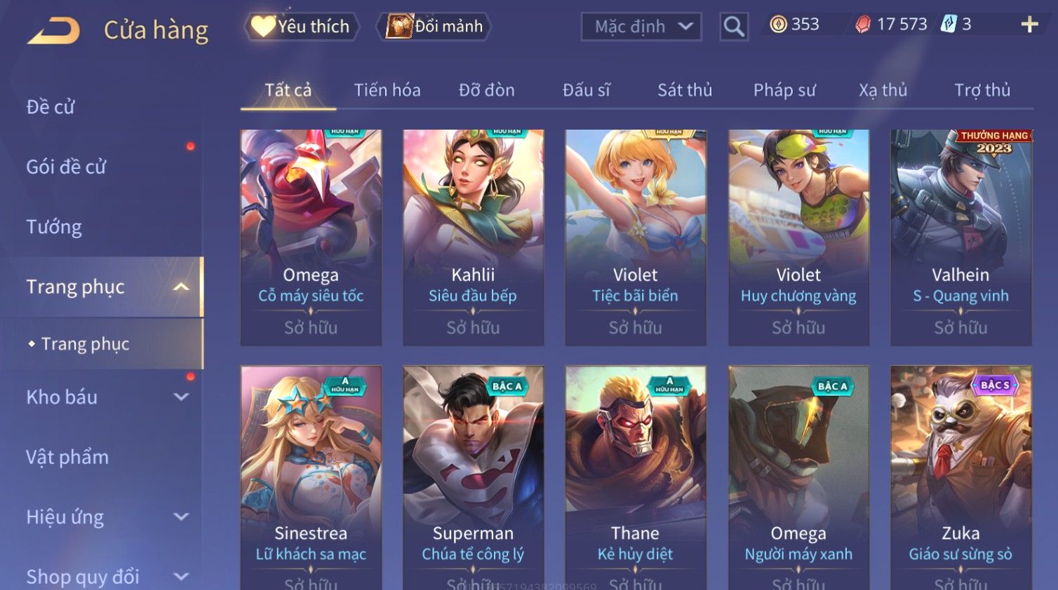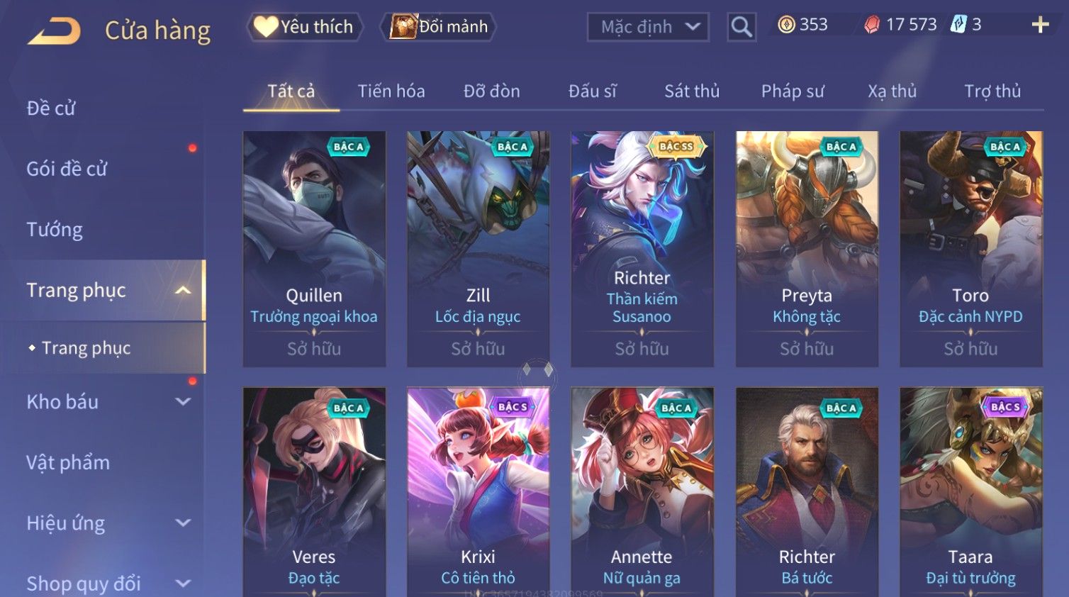 Nổi bật: Skin: Violet Thần Long Tỷ Tỷ×Tulen Tân Niên Vệ Thần×Valhein Vũ Khí Tối Thượng×Richter Thần Kiếm Susanoo×Florentino Seven×Sephera