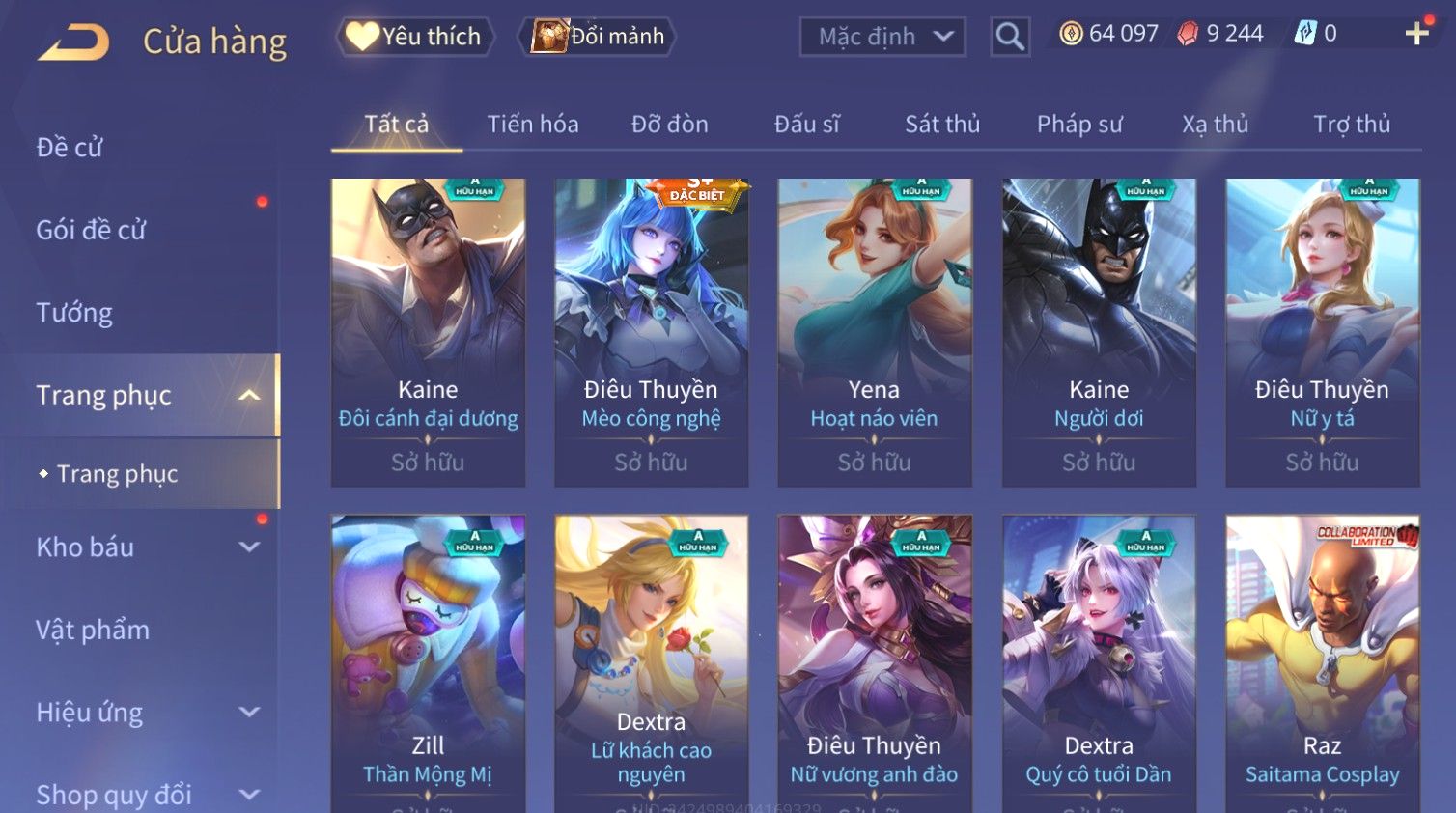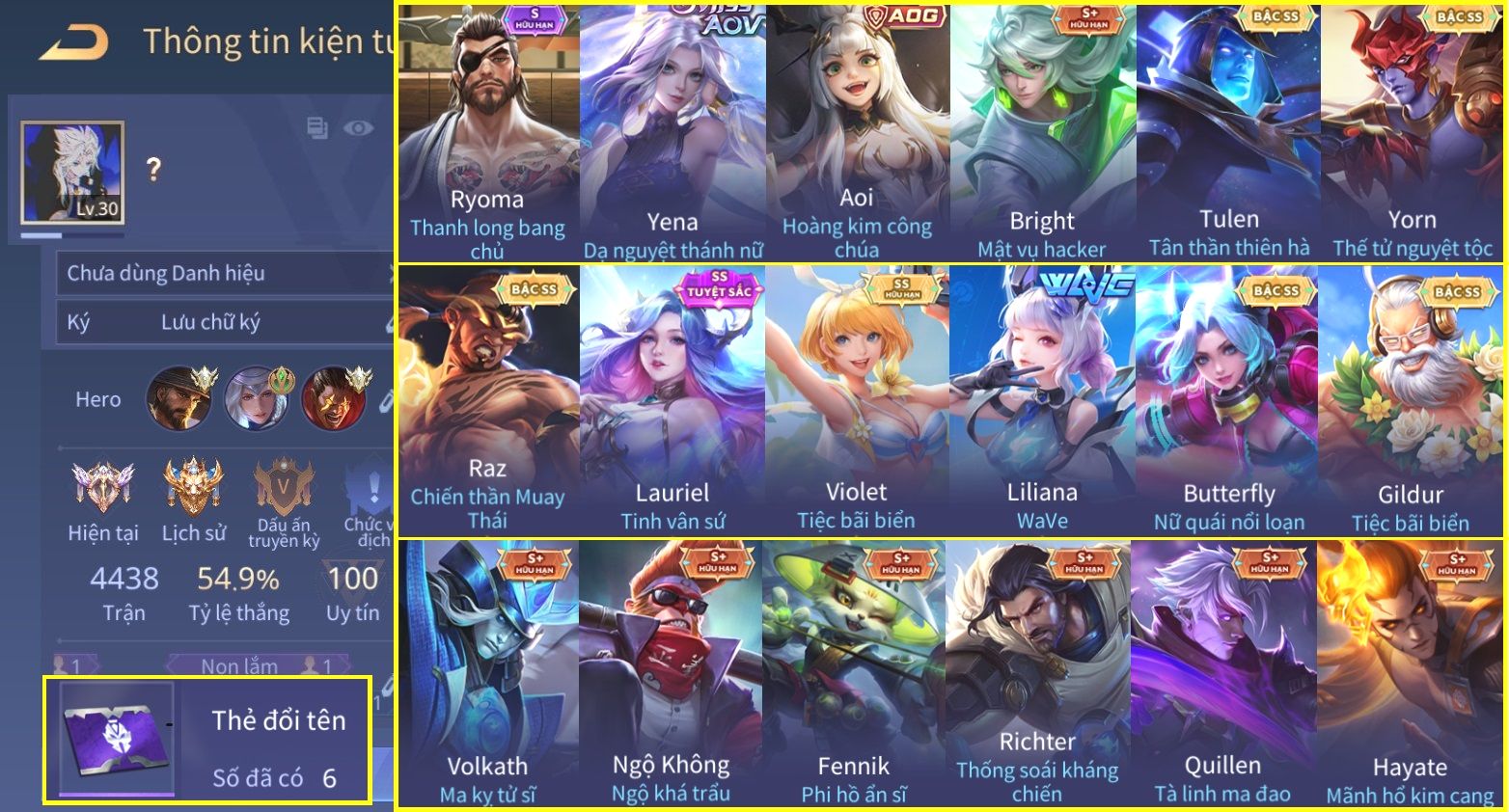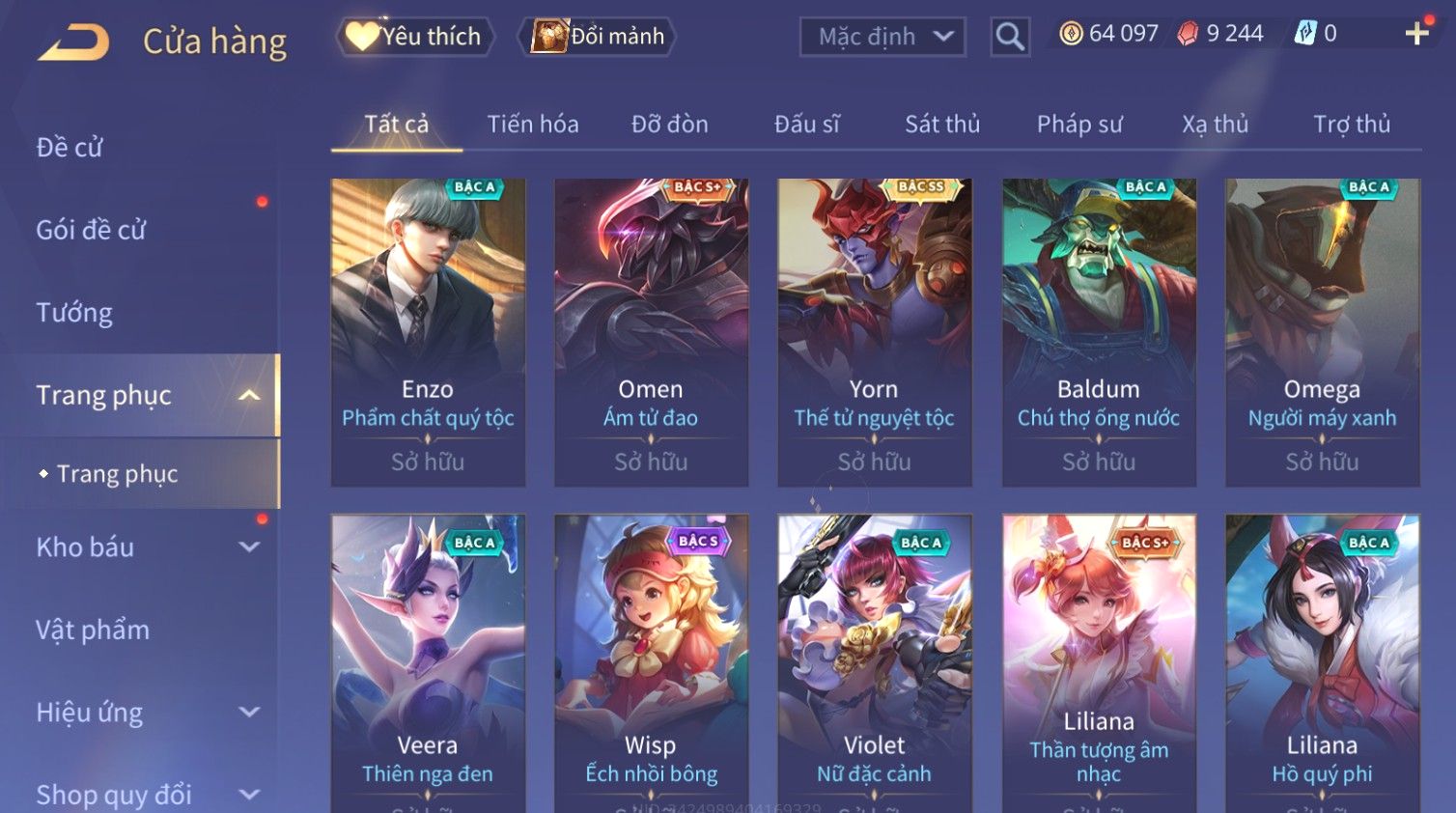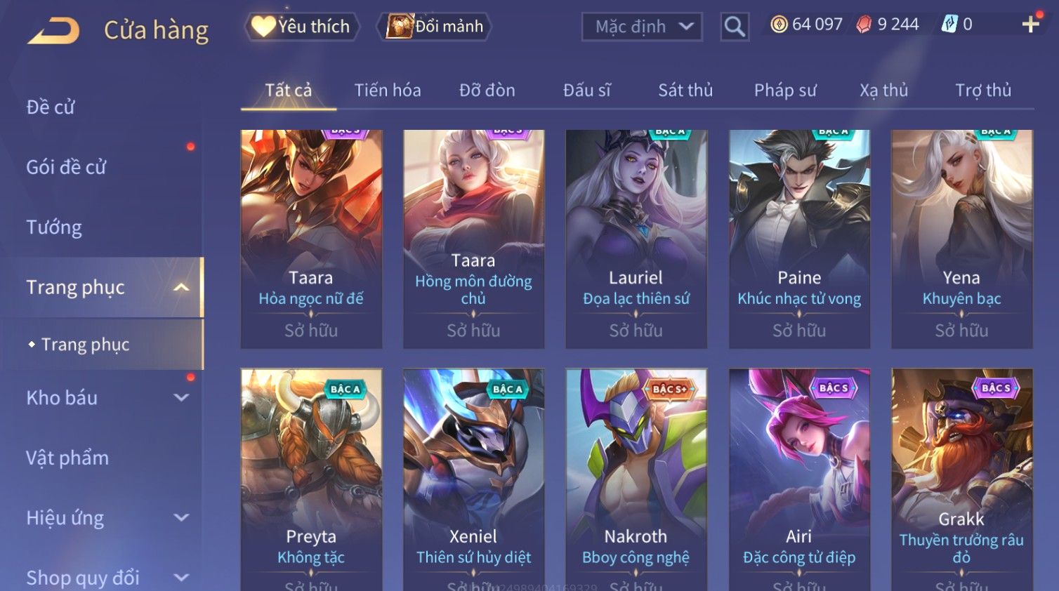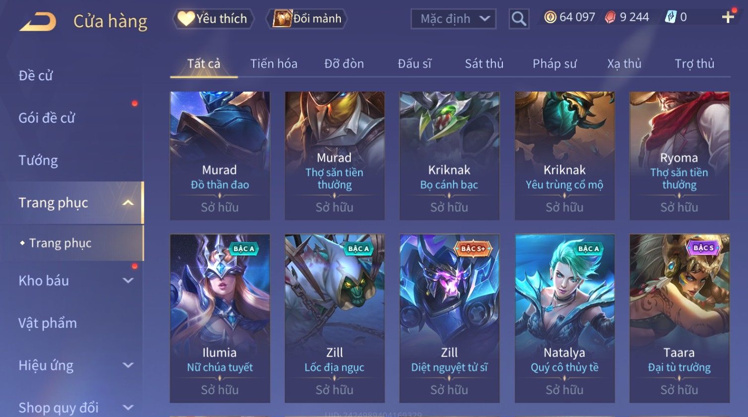 Nổi bật: Skin: Raz Chiến Thần Muay Thái×Lauriel Tinh Vân Sứ×Violet Tiệc Bãi Biển×Liliana WaVe×Butterfly Nữ Quái Nổi Loạn×Richter Thống Soái Kháng Chiến×Volkath Ma Kỵ Tử Sĩ×Ryoma Thanh Long Bang Chủ×Full Ngọc, Nhiều Skin Đẹp