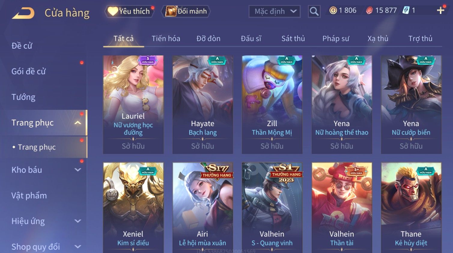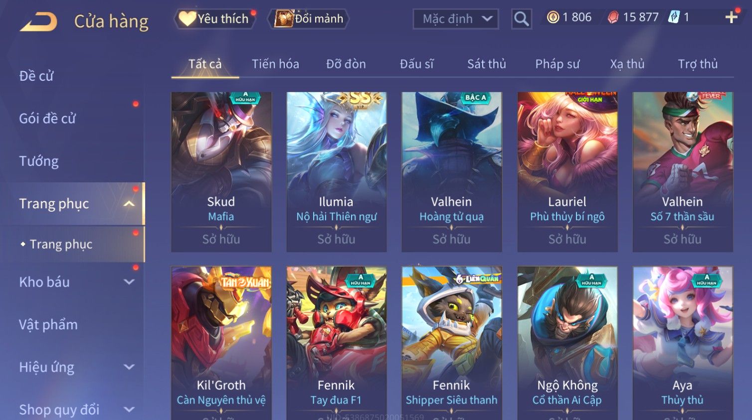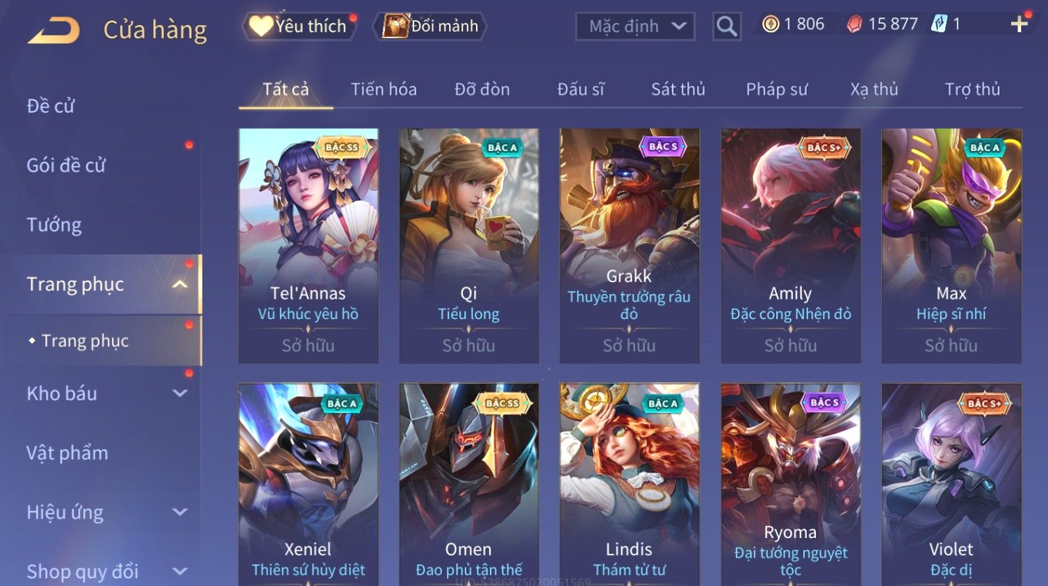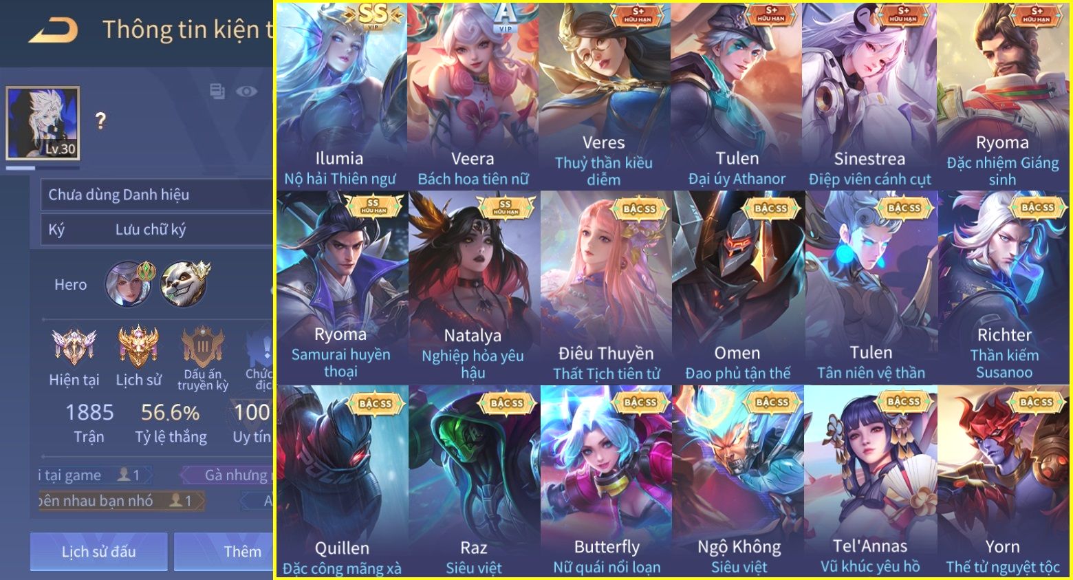 Nổi bật: Skin: Ryoma Sumarai Huyền Thoại×Natalya Nghiệp Hỏa Yêu Hậu×Điêu Thuyền Thất Tịch Tiên Tử×Omen Đao Phủ Tận Thế×Tulen Tân Niên Vệ Thần×Richter Thần Kiếm Susanoo×Quillen Đặc Công Mãng Xà×Raz Siêu Việt×Butterfly Nữ Quái Nổi Loạn×Ngộ Không Siêu Việt×Tel'Annas Vũ Khúc Yêu Hồ×Ilumia Nộ Hải Thiên Ngư×
