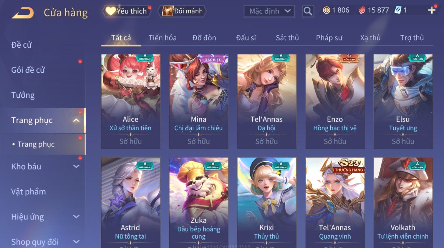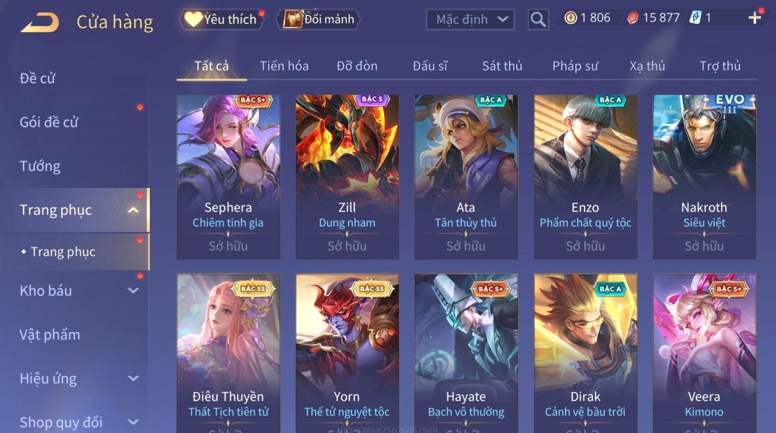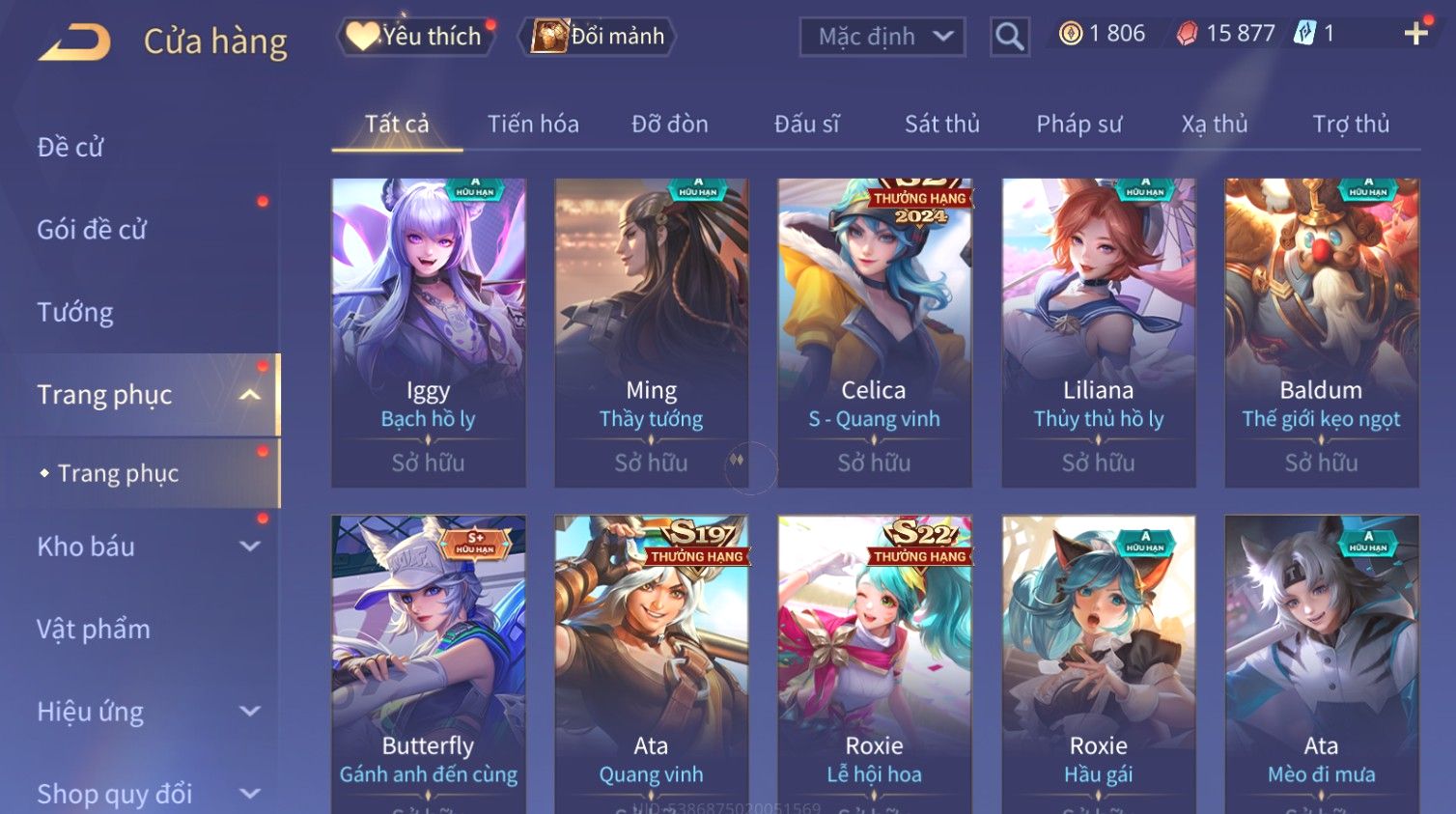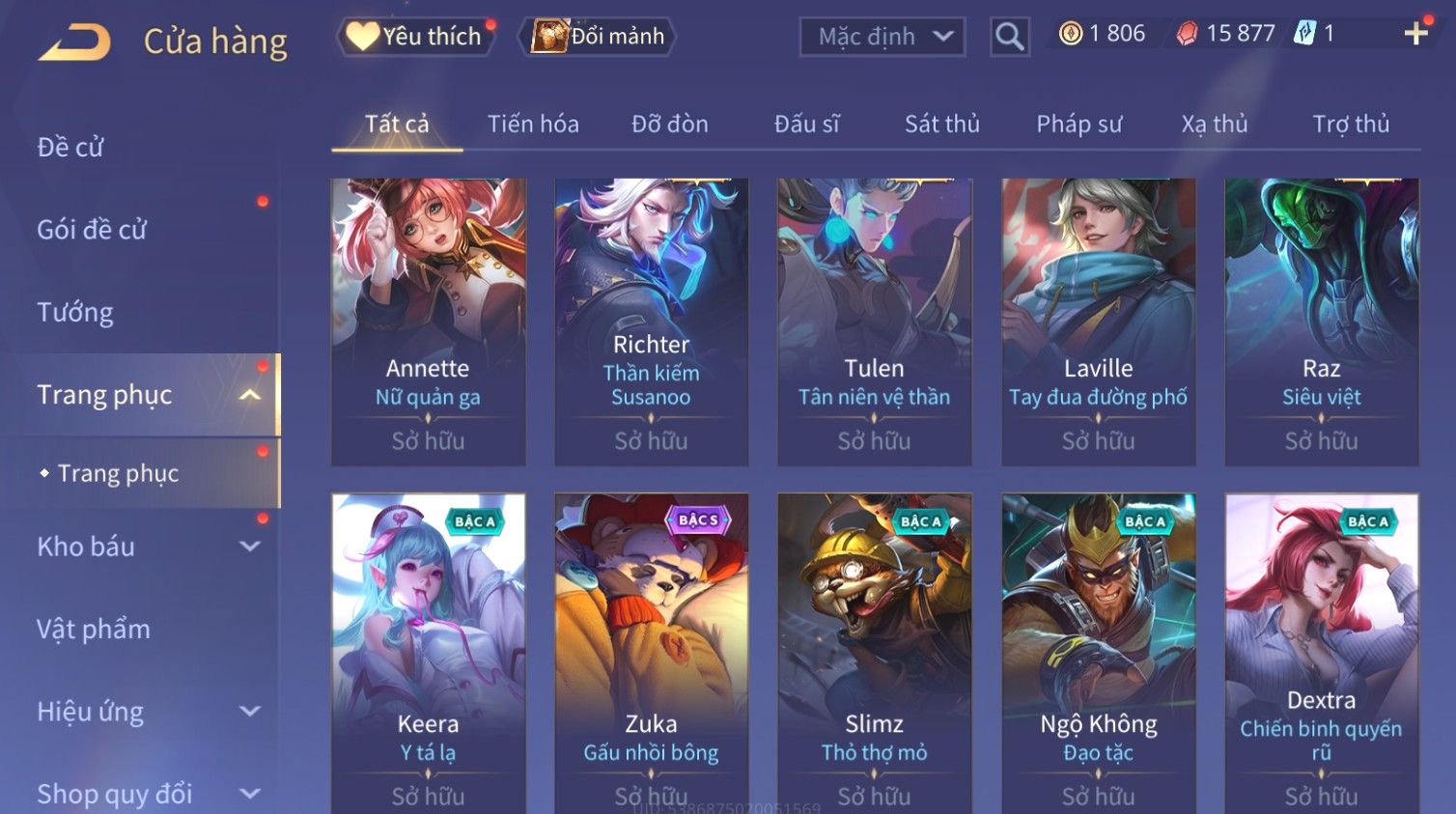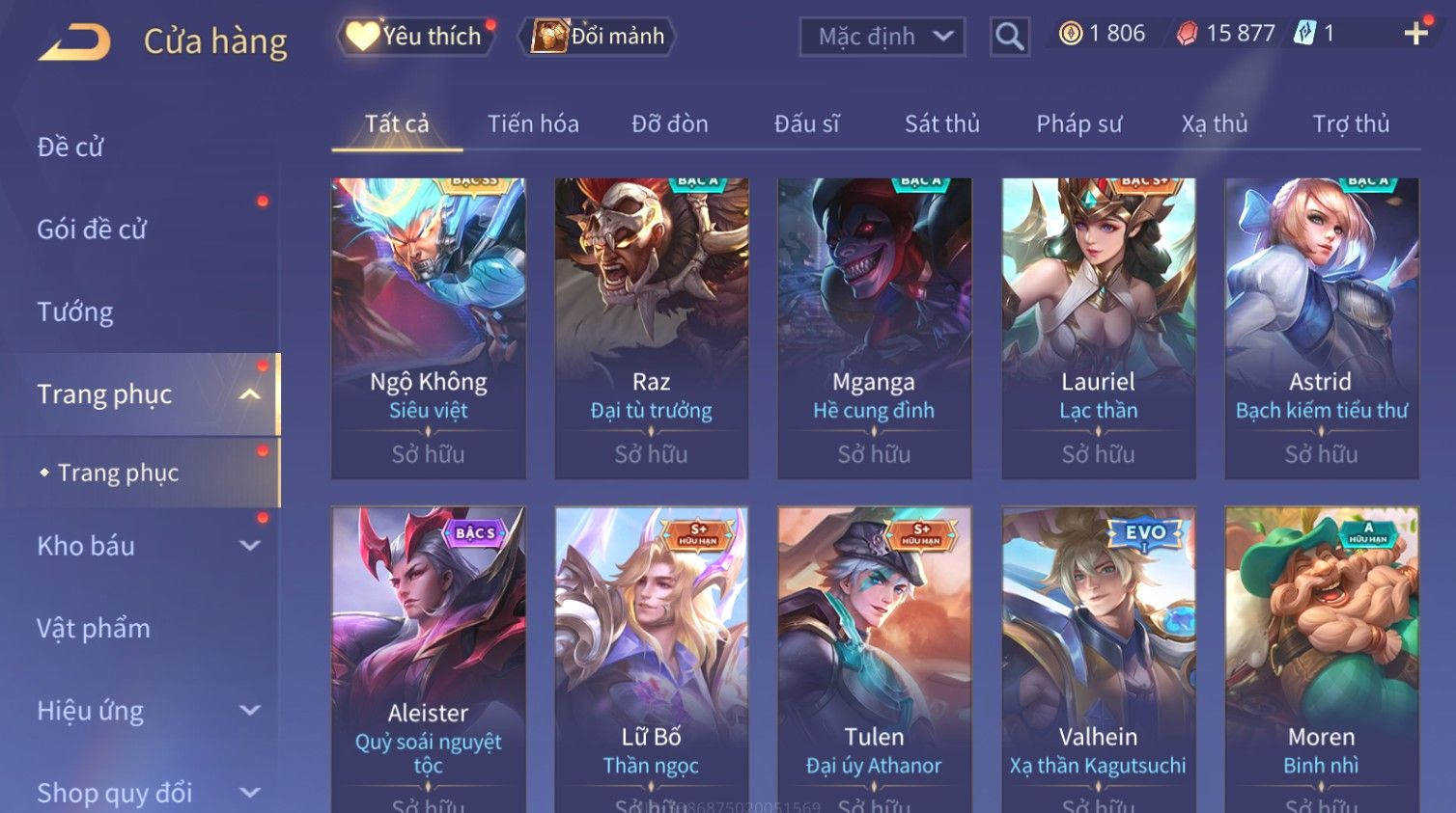 Nổi bật: Skin: Ryoma Sumarai Huyền Thoại×Natalya Nghiệp Hỏa Yêu Hậu×Điêu Thuyền Thất Tịch Tiên Tử×Omen Đao Phủ Tận Thế×Tulen Tân Niên Vệ Thần×Richter Thần Kiếm Susanoo×Quillen Đặc Công Mãng Xà×Raz Siêu Việt×Butterfly Nữ Quái Nổi Loạn×Ngộ Không Siêu Việt×Tel'Annas Vũ Khúc Yêu Hồ×Ilumia Nộ Hải Thiên Ngư×