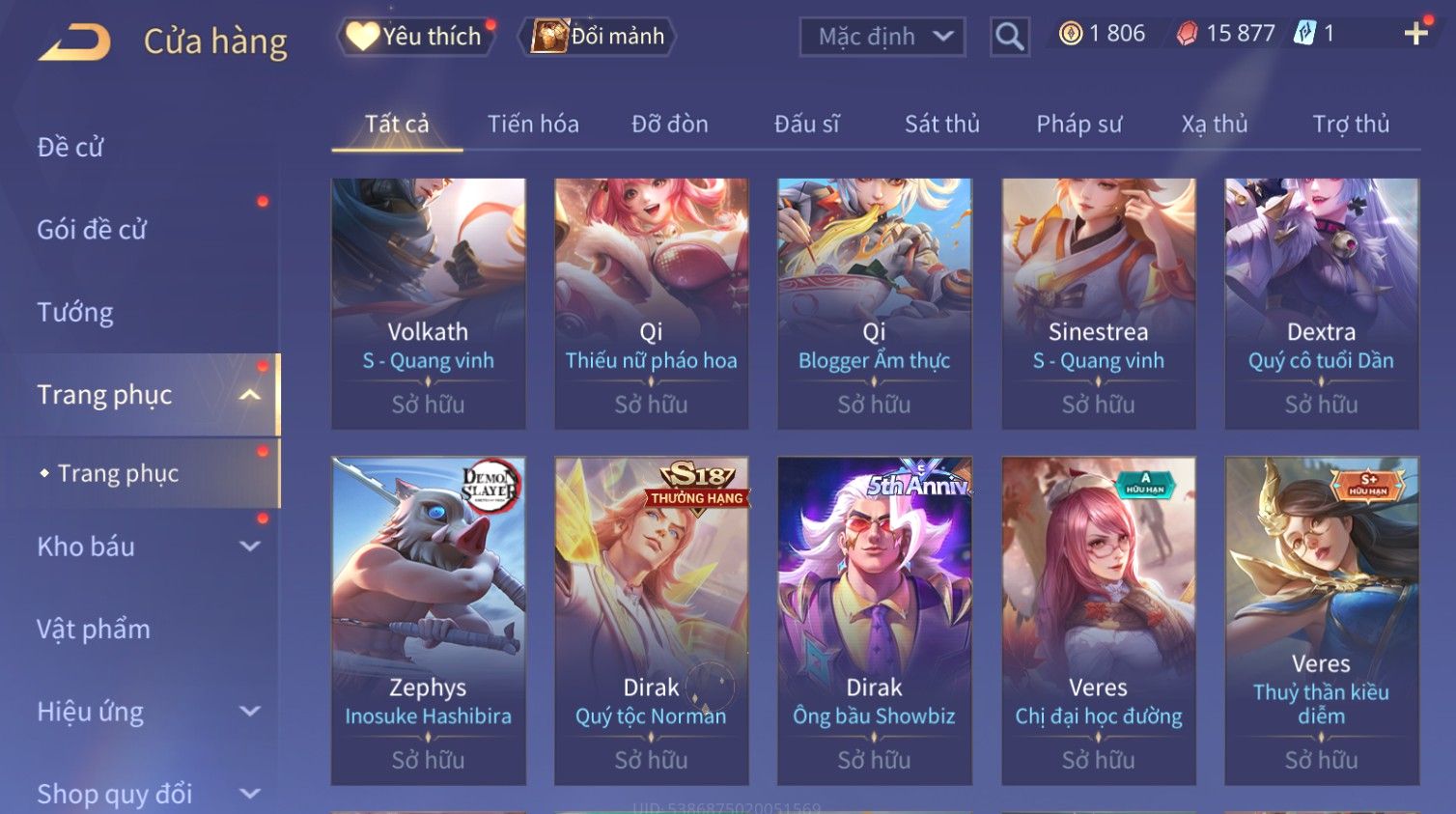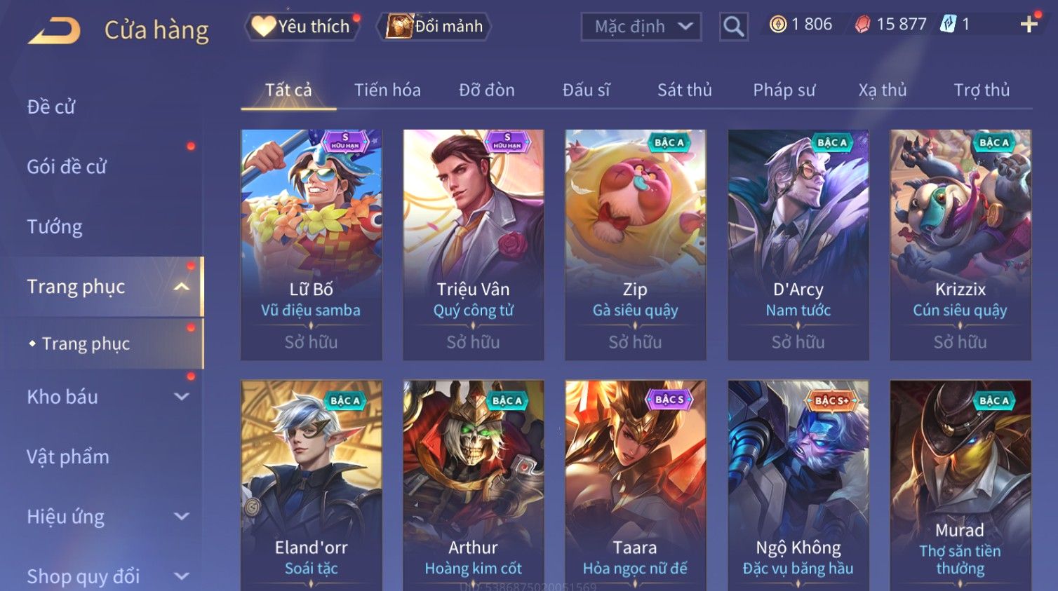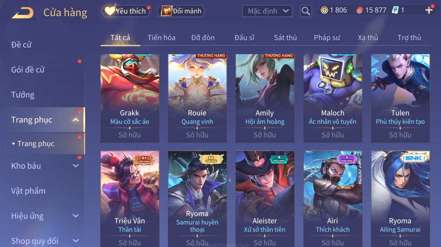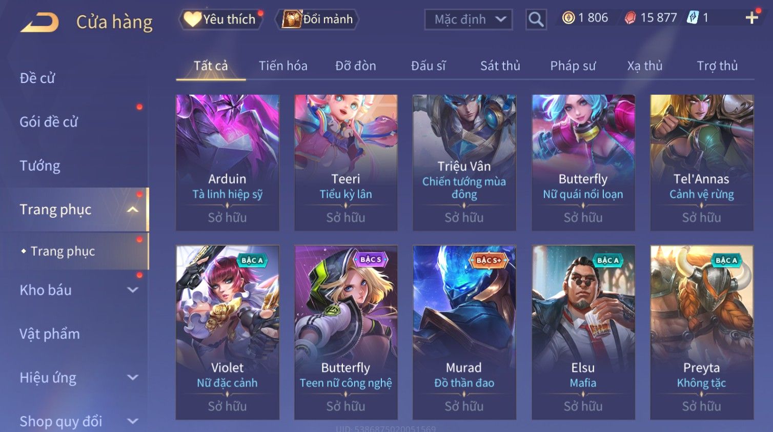 Nổi bật: Skin: Ryoma Sumarai Huyền Thoại×Natalya Nghiệp Hỏa Yêu Hậu×Điêu Thuyền Thất Tịch Tiên Tử×Omen Đao Phủ Tận Thế×Tulen Tân Niên Vệ Thần×Richter Thần Kiếm Susanoo×Quillen Đặc Công Mãng Xà×Raz Siêu Việt×Butterfly Nữ Quái Nổi Loạn×Ngộ Không Siêu Việt×Tel'Annas Vũ Khúc Yêu Hồ×Ilumia Nộ Hải Thiên Ngư×