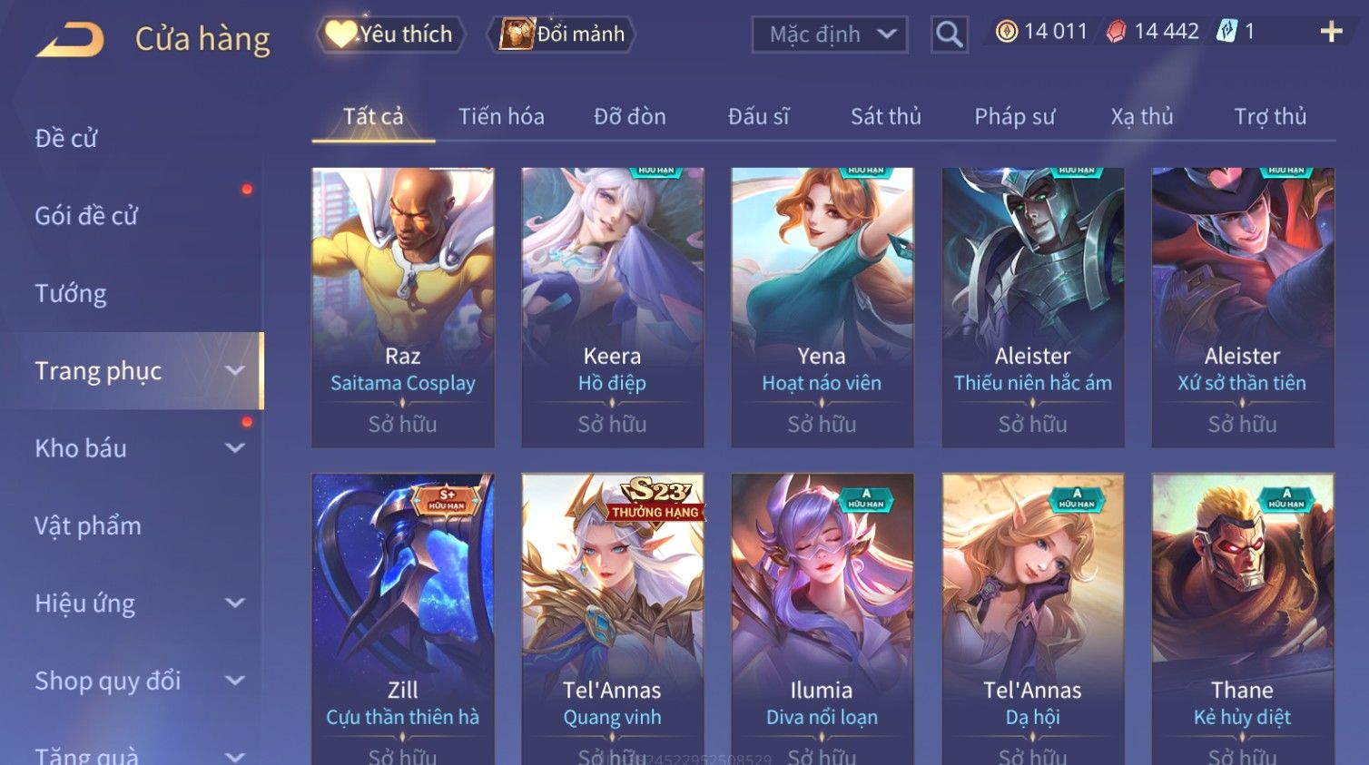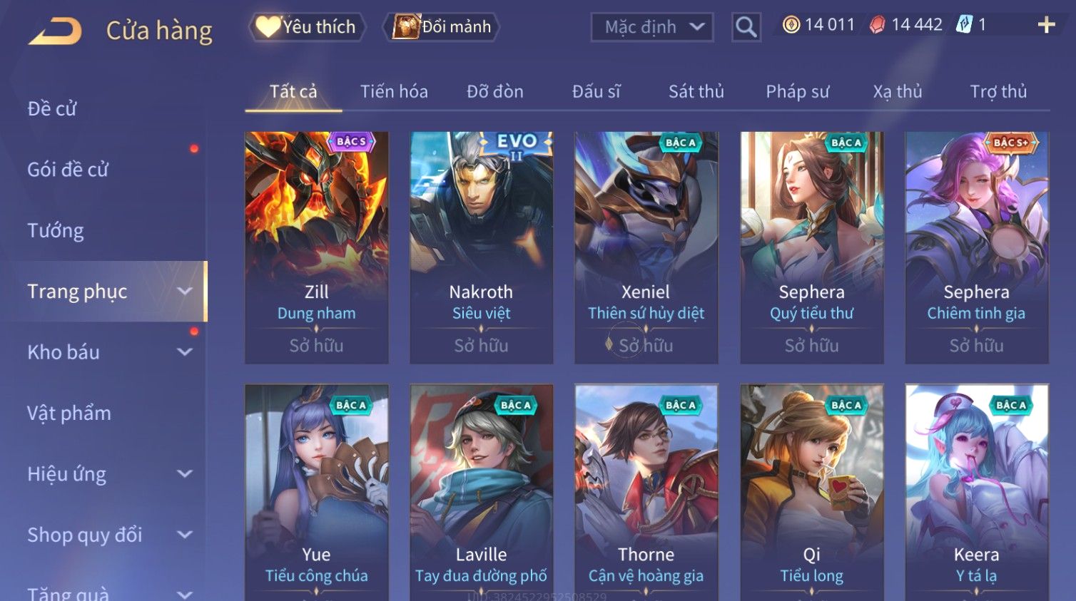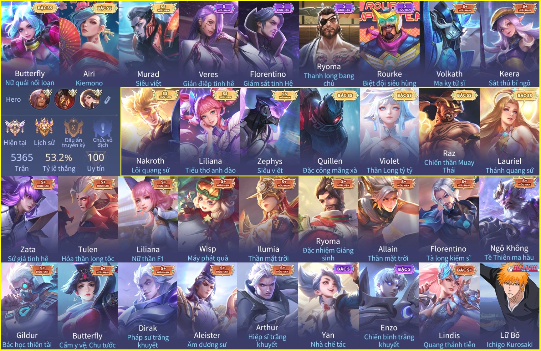 Nổi bật: Skin: Nakroth Lôi Quang Sứ×Liliana Tiểu Thơ Anh Đào×Zephys Siêu Việt×Quillen Đặc Công Mãng Xà×Violet Thần Long Tỷ Tỷ×Raz Chiến Thần Muay Thái×Lauriel Thánh Quang Sứ×Zata Sứ Giả Tinh Hệ×Florentino Giám Sát Tinh Hệ×Veres Gián Điệp Tinh Hệ×Ryoma Thanh Long Bang Chủ×Airi Kiemono×Butterfly Nữ Quái Nổi Loạn×