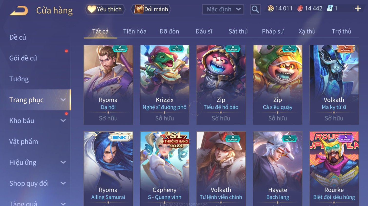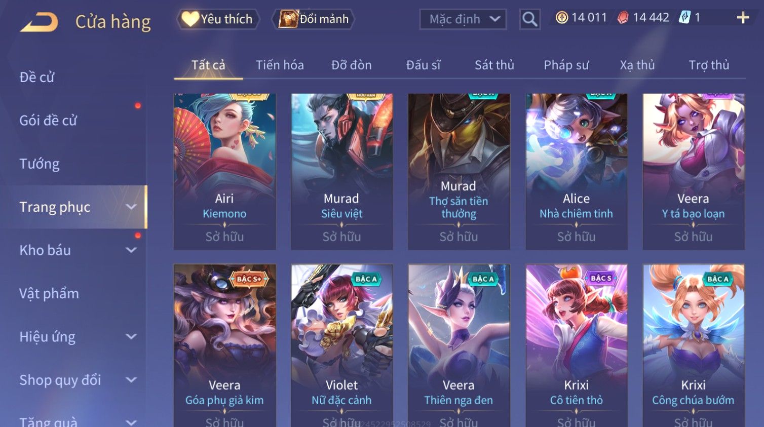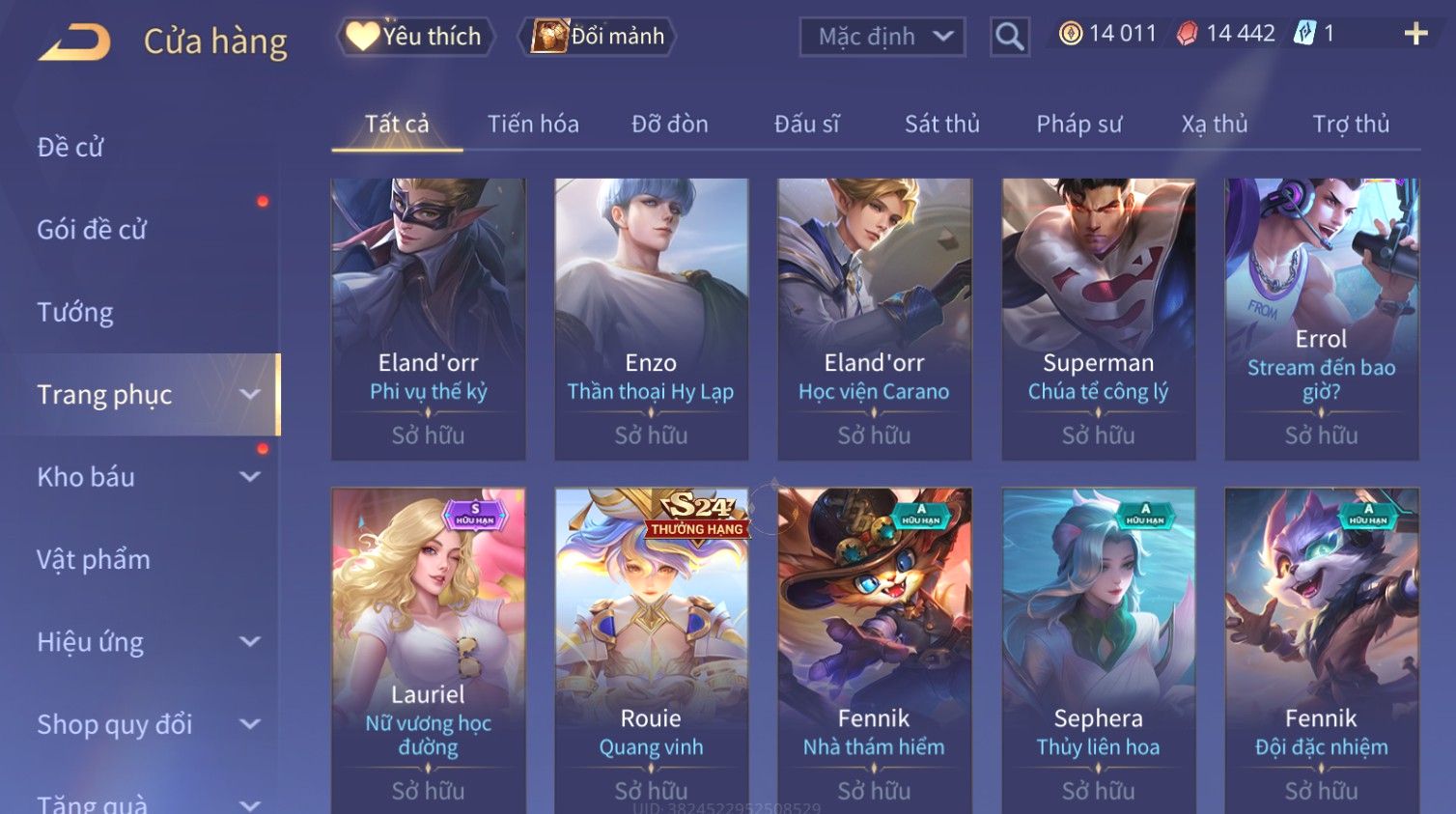 Nổi bật: Skin: Nakroth Lôi Quang Sứ×Liliana Tiểu Thơ Anh Đào×Zephys Siêu Việt×Quillen Đặc Công Mãng Xà×Violet Thần Long Tỷ Tỷ×Raz Chiến Thần Muay Thái×Lauriel Thánh Quang Sứ×Zata Sứ Giả Tinh Hệ×Florentino Giám Sát Tinh Hệ×Veres Gián Điệp Tinh Hệ×Ryoma Thanh Long Bang Chủ×Airi Kiemono×Butterfly Nữ Quái Nổi Loạn×