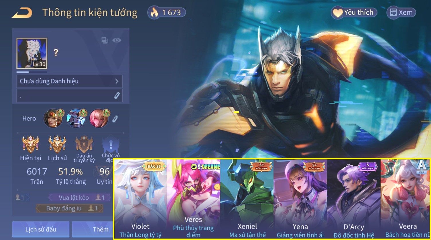 Nổi bật: Violet Thần Long Tỷ Tỷ, Full Ngọc, Nhiều Skin Đẹp