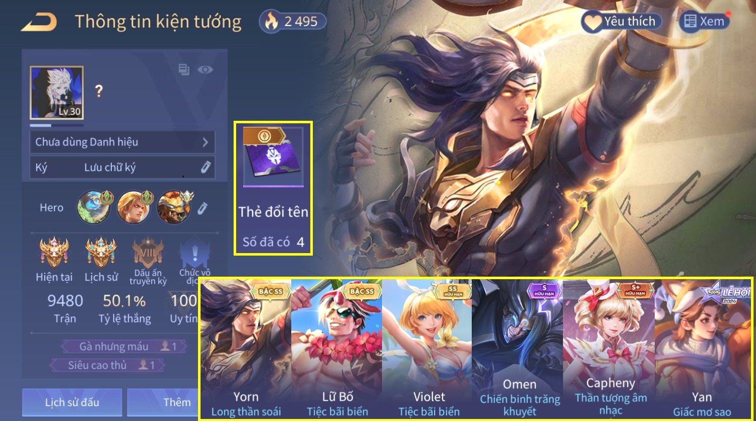 Nổi bật: Yorn Long Thần Soái Full Ngọc, Nhiều Skin Đẹp