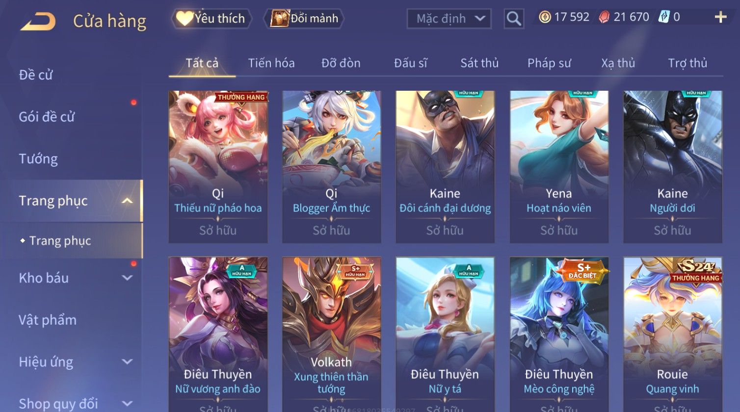 Nổi bật: Full Ngọc, Nhiều Skin SS Đẹp