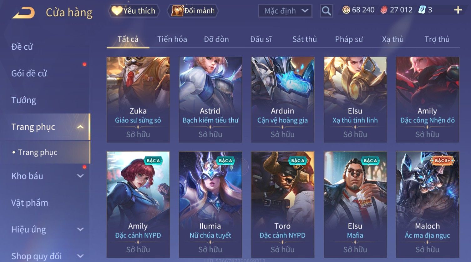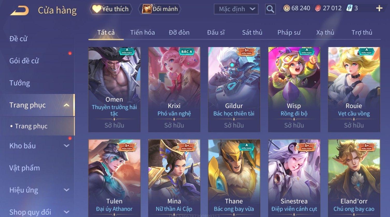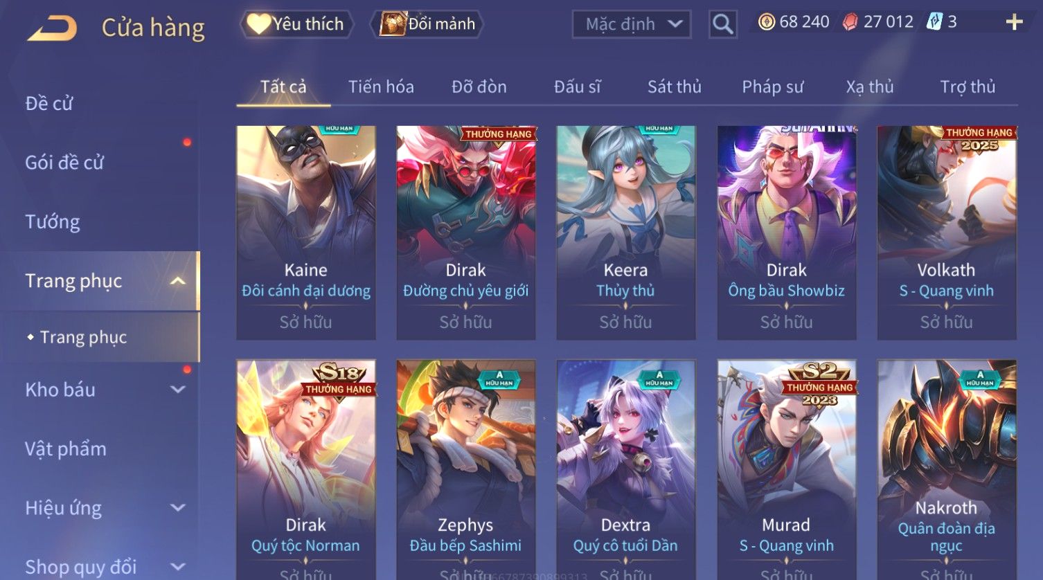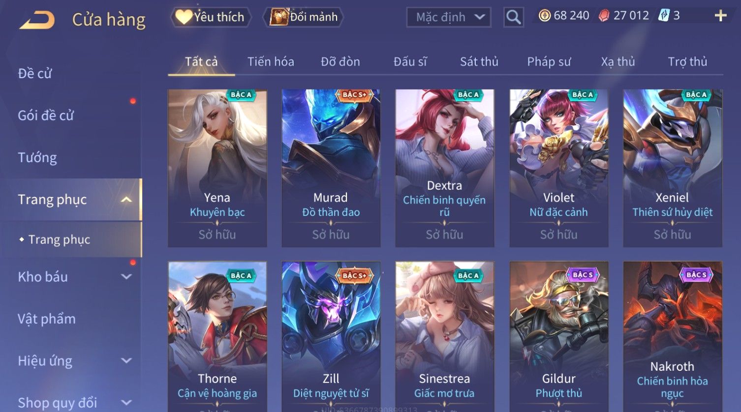 Nổi bật: Skin: Lữ Bố Tư Lệnh Robot×Raz Chiến Thần Muay Thái×Omen Đao Phủ Tận Thế×Richter Thần Kiếm Susanoo×Ngộ Không Siêu Việt×Zata Sứ Giả Tinh Hệ×Airi Kiemono×Florentino Giám Sát Tinh Hệ×Ilumia Nộ Hải Thiên Ngư×Full Ngọc, Nhiều Skin SS Đẹp