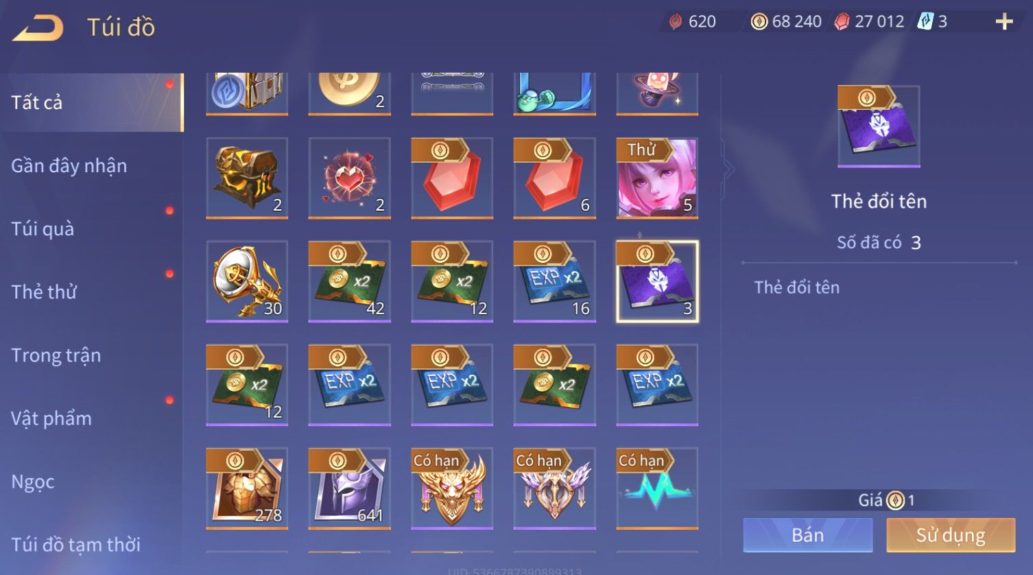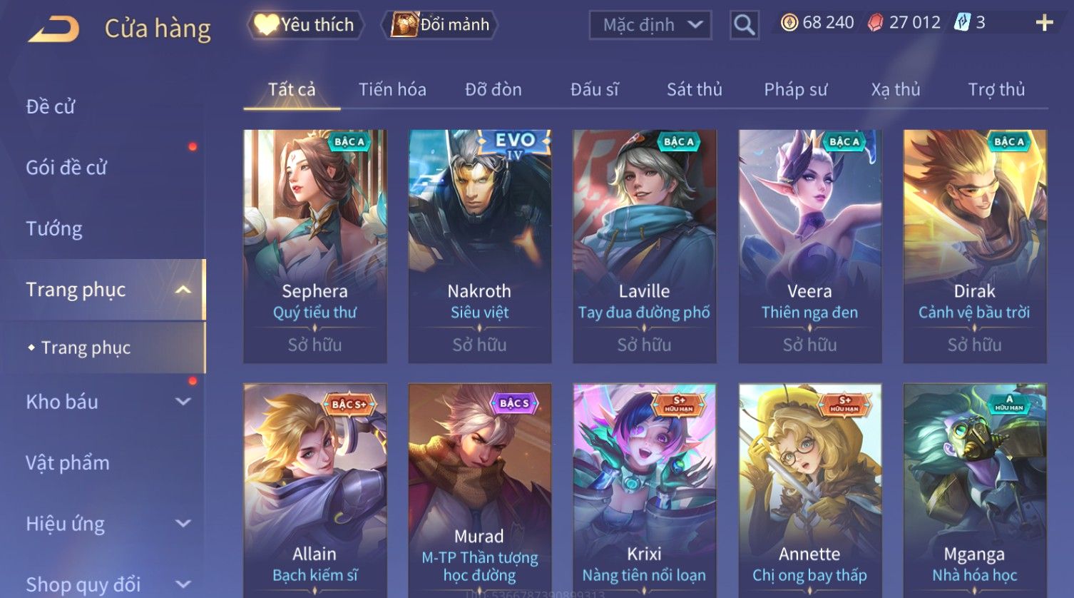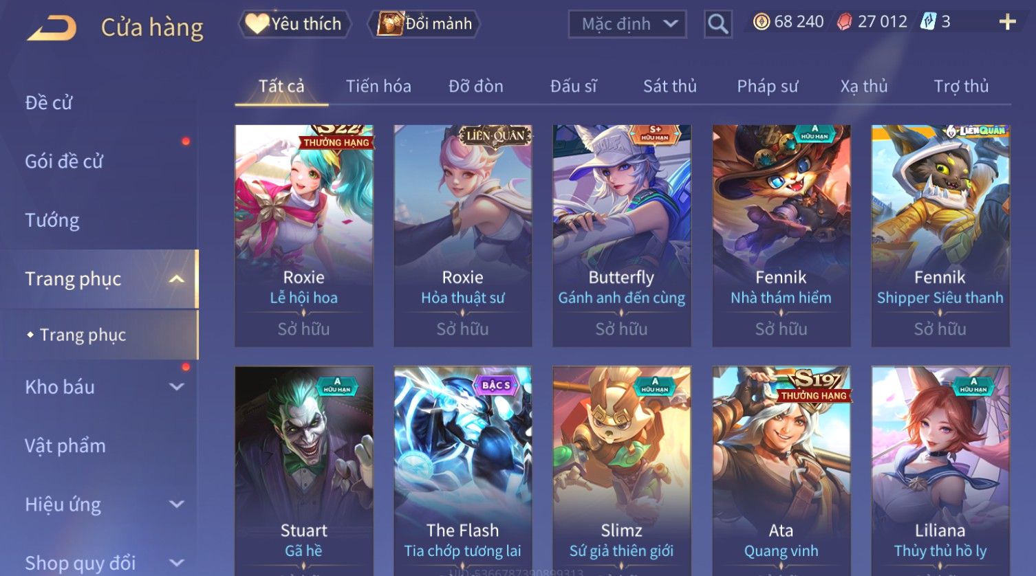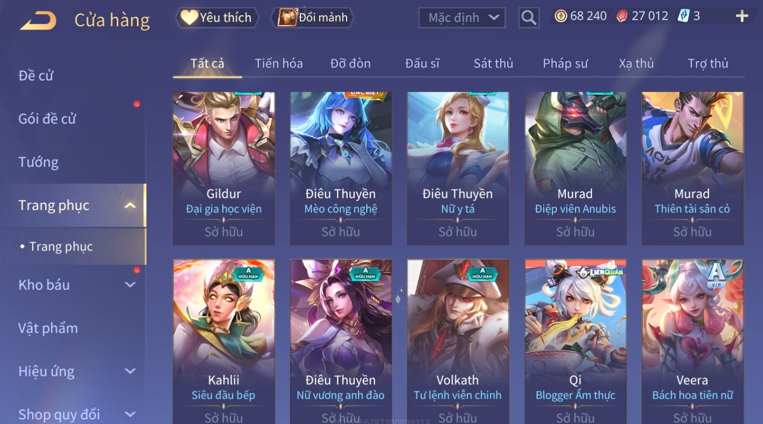 Nổi bật: Skin: Lữ Bố Tư Lệnh Robot×Raz Chiến Thần Muay Thái×Omen Đao Phủ Tận Thế×Richter Thần Kiếm Susanoo×Ngộ Không Siêu Việt×Zata Sứ Giả Tinh Hệ×Airi Kiemono×Florentino Giám Sát Tinh Hệ×Ilumia Nộ Hải Thiên Ngư×Full Ngọc, Nhiều Skin SS Đẹp