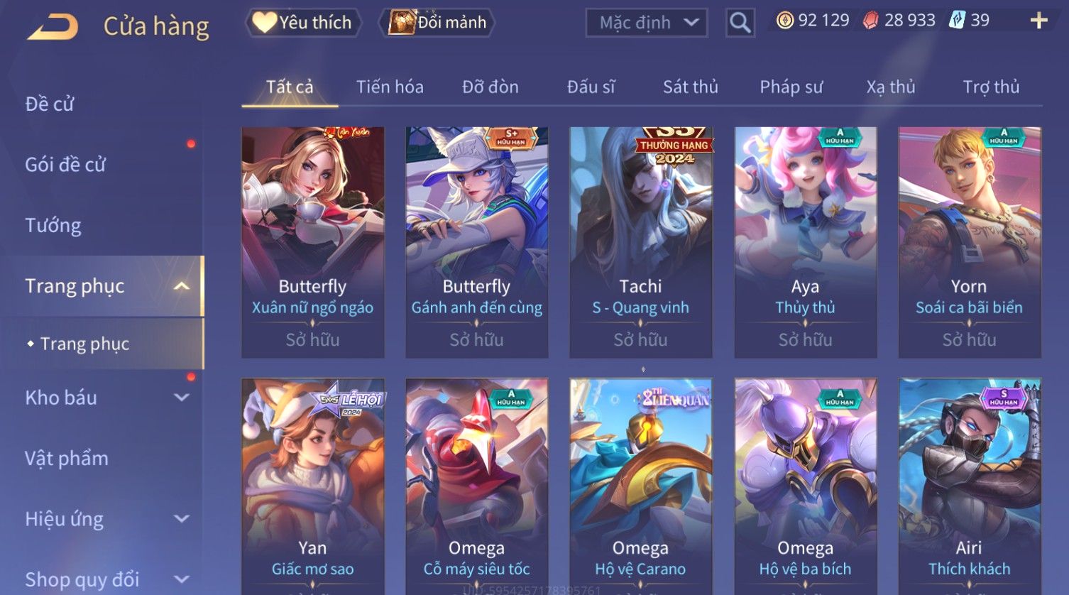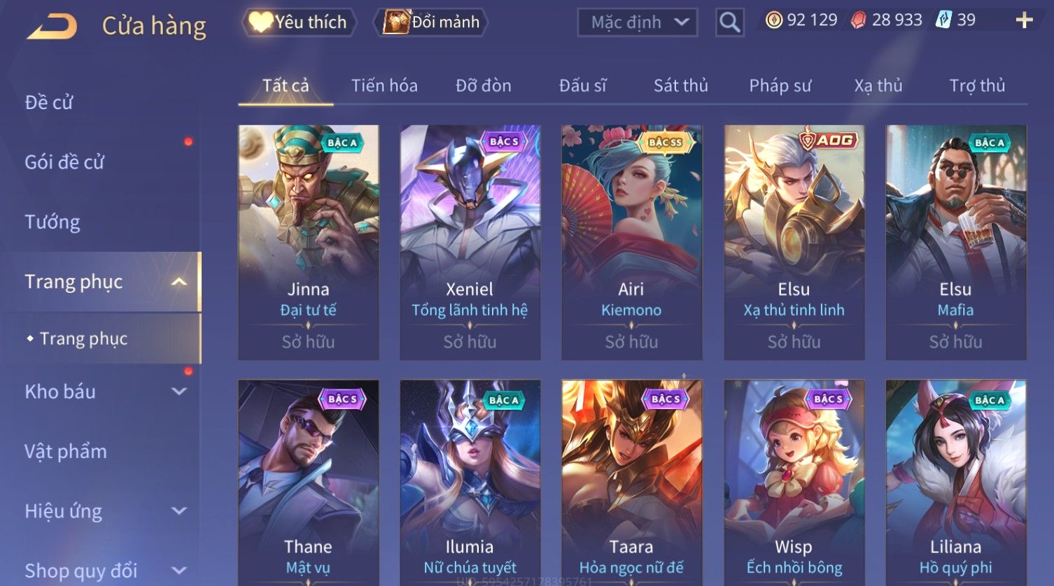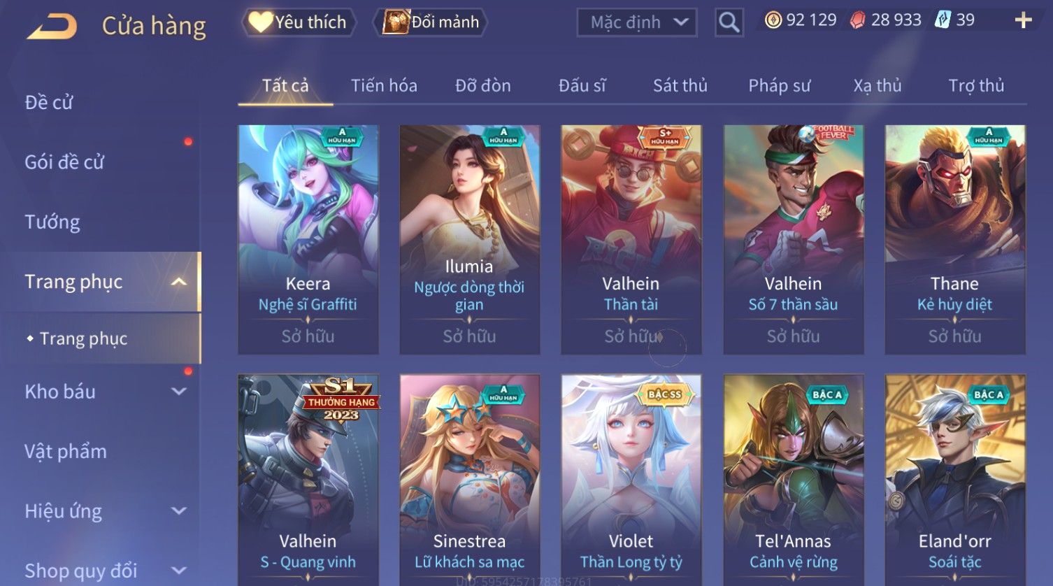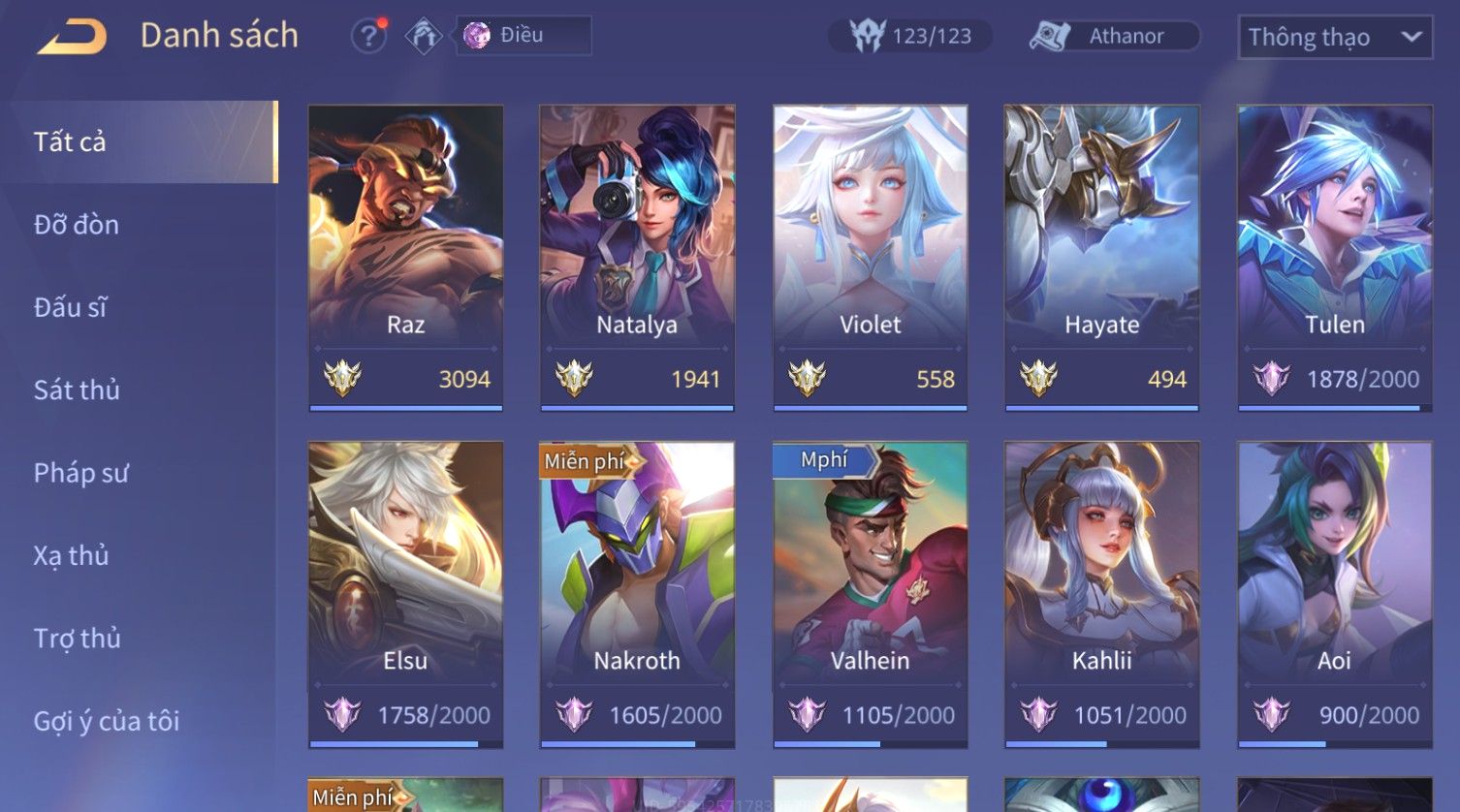 Nổi bật: Skin: Raz Chiến Thần Muay Thái×Laville Xạ thần Tinh Vệ×Butterfly Nữ Quái Nổi Loạn×Airi Kiemono×Violet Thần Long Tỷ Tỷ×Lauriel Thiên Sứ Công Nghệ×Richter Thống Soái Kháng Chiến×Elsu Hỏa diệm chu tước×Full Ngọc, Nhiều Skin SS Đẹp