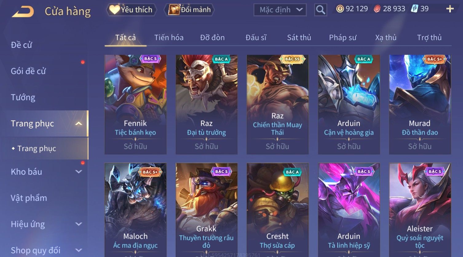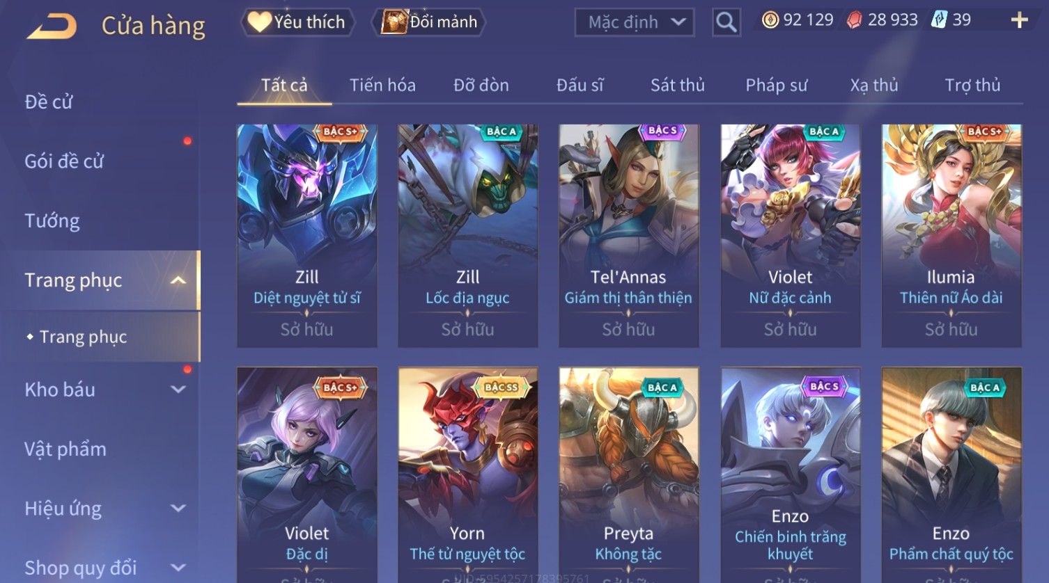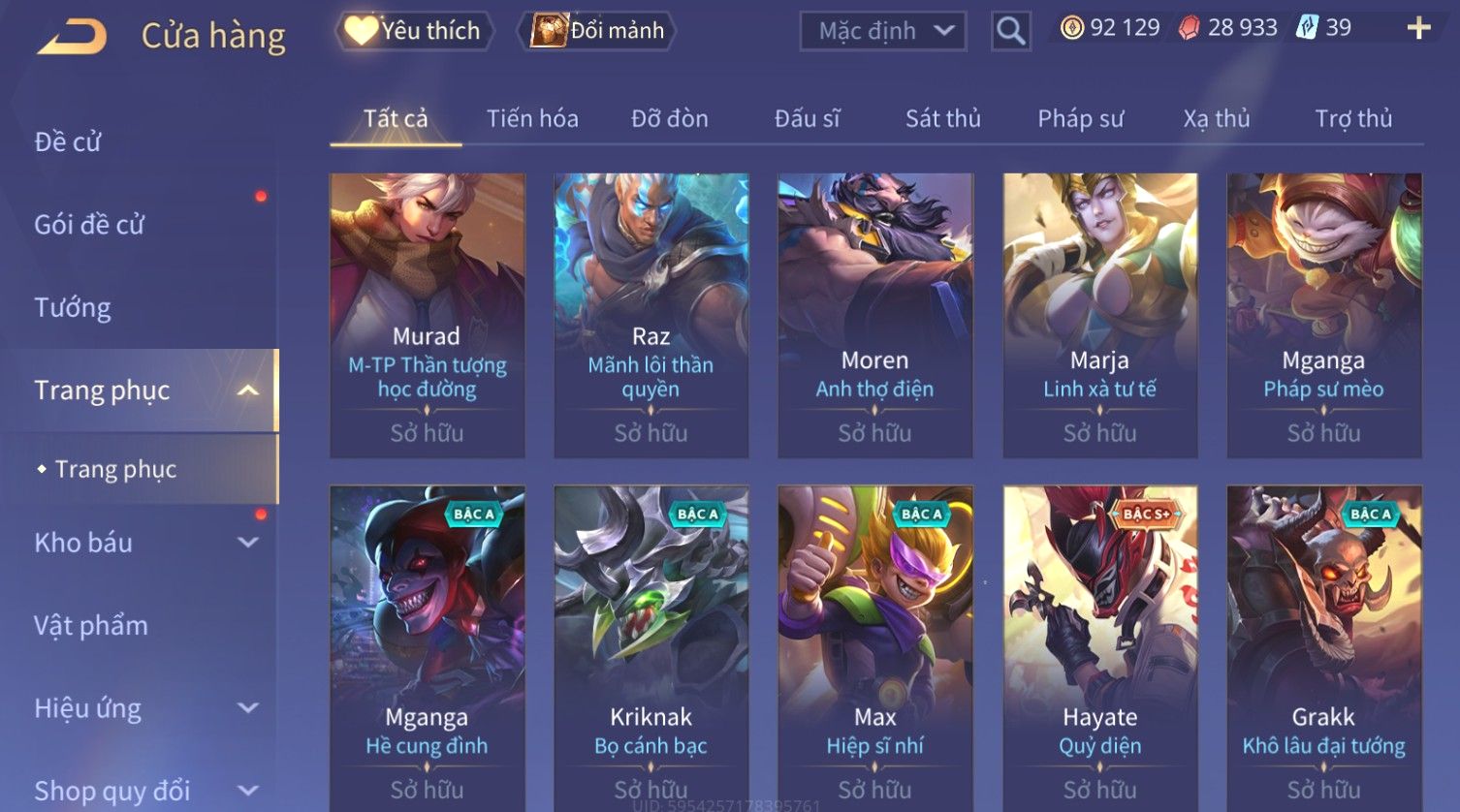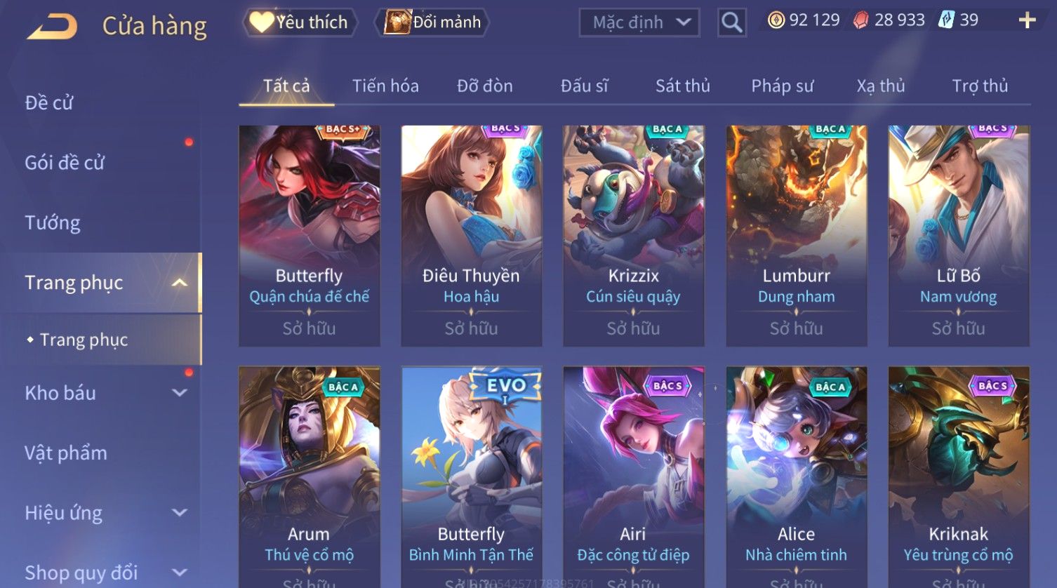 Nổi bật: Skin: Raz Chiến Thần Muay Thái×Laville Xạ thần Tinh Vệ×Butterfly Nữ Quái Nổi Loạn×Airi Kiemono×Violet Thần Long Tỷ Tỷ×Lauriel Thiên Sứ Công Nghệ×Richter Thống Soái Kháng Chiến×Elsu Hỏa diệm chu tước×Full Ngọc, Nhiều Skin SS Đẹp