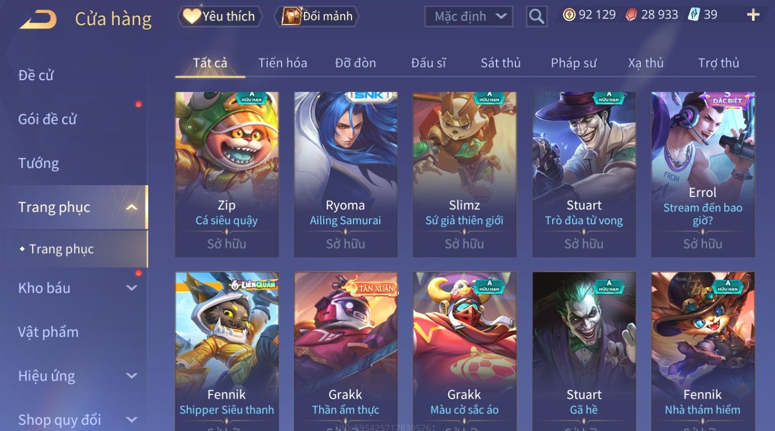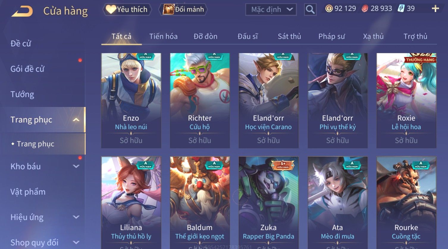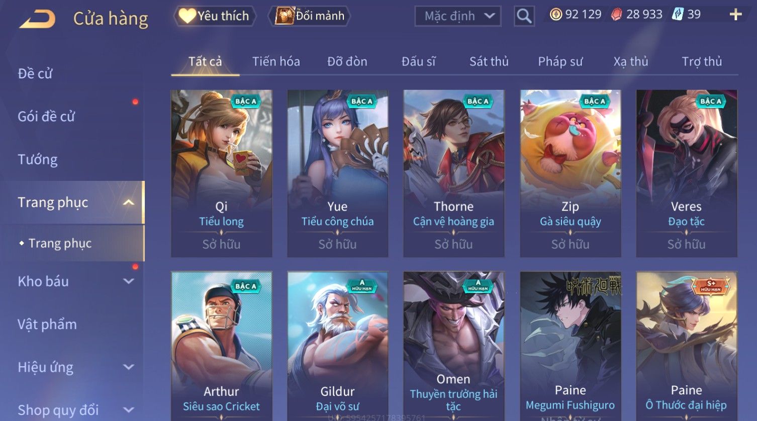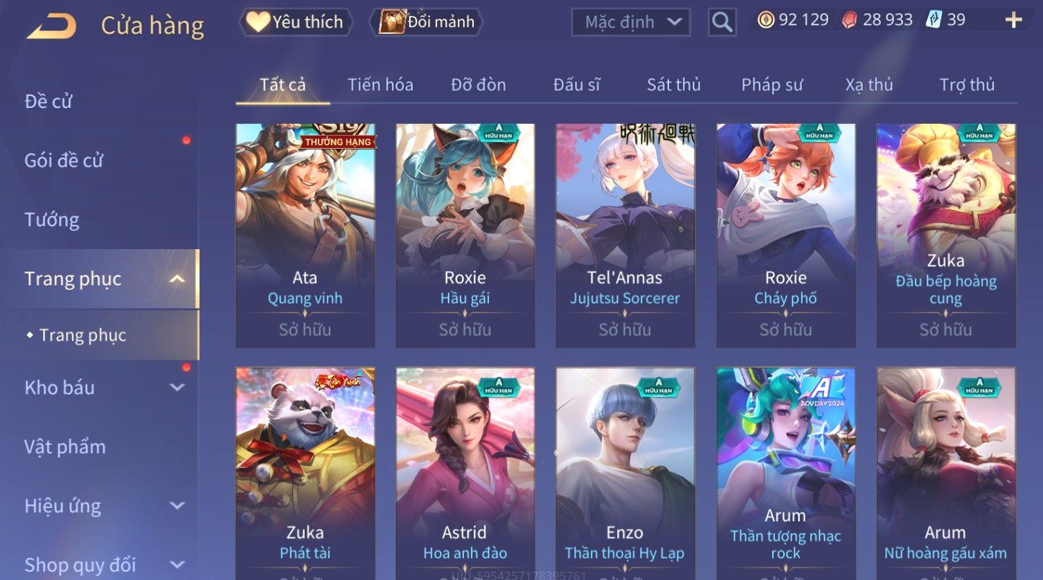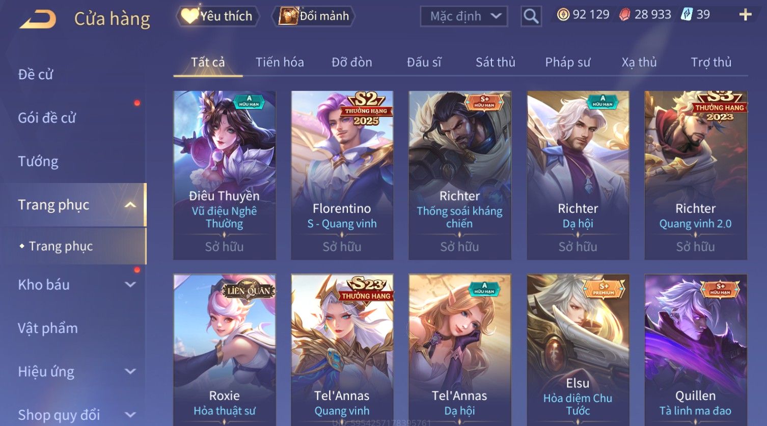 Nổi bật: Skin: Raz Chiến Thần Muay Thái×Laville Xạ thần Tinh Vệ×Butterfly Nữ Quái Nổi Loạn×Airi Kiemono×Violet Thần Long Tỷ Tỷ×Lauriel Thiên Sứ Công Nghệ×Richter Thống Soái Kháng Chiến×Elsu Hỏa diệm chu tước×Full Ngọc, Nhiều Skin SS Đẹp