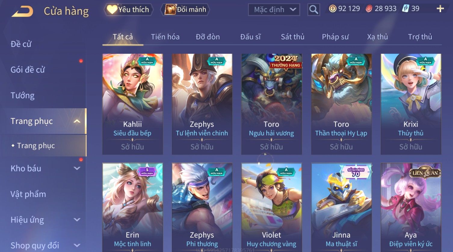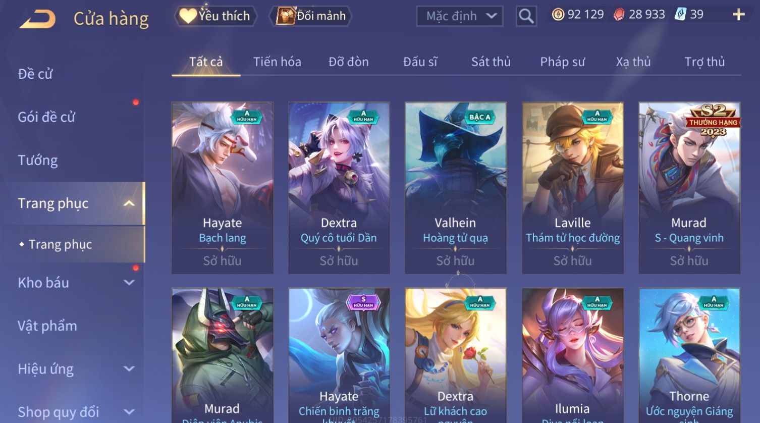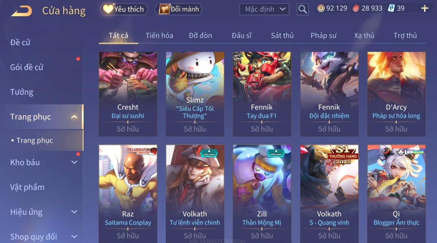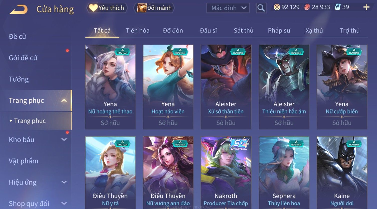 Nổi bật: Skin: Raz Chiến Thần Muay Thái×Laville Xạ thần Tinh Vệ×Butterfly Nữ Quái Nổi Loạn×Airi Kiemono×Violet Thần Long Tỷ Tỷ×Lauriel Thiên Sứ Công Nghệ×Richter Thống Soái Kháng Chiến×Elsu Hỏa diệm chu tước×Full Ngọc, Nhiều Skin SS Đẹp