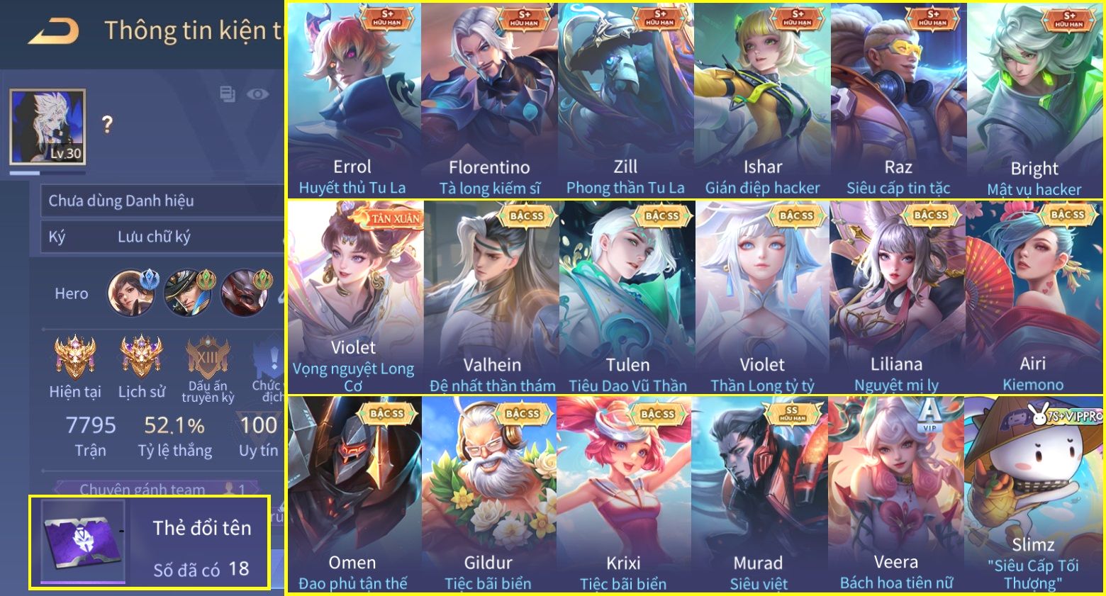 Trạng Thái: Nick có SĐT or Gmail Của Shop( Có Thể Thay Đổi)