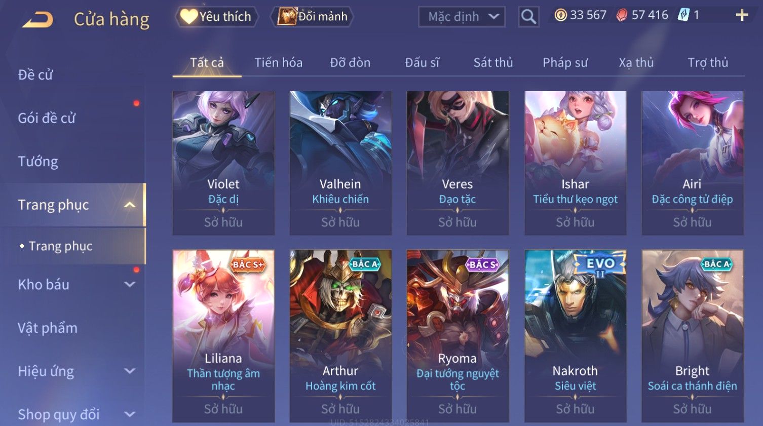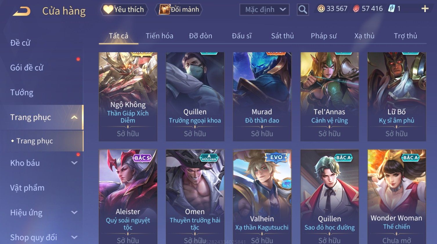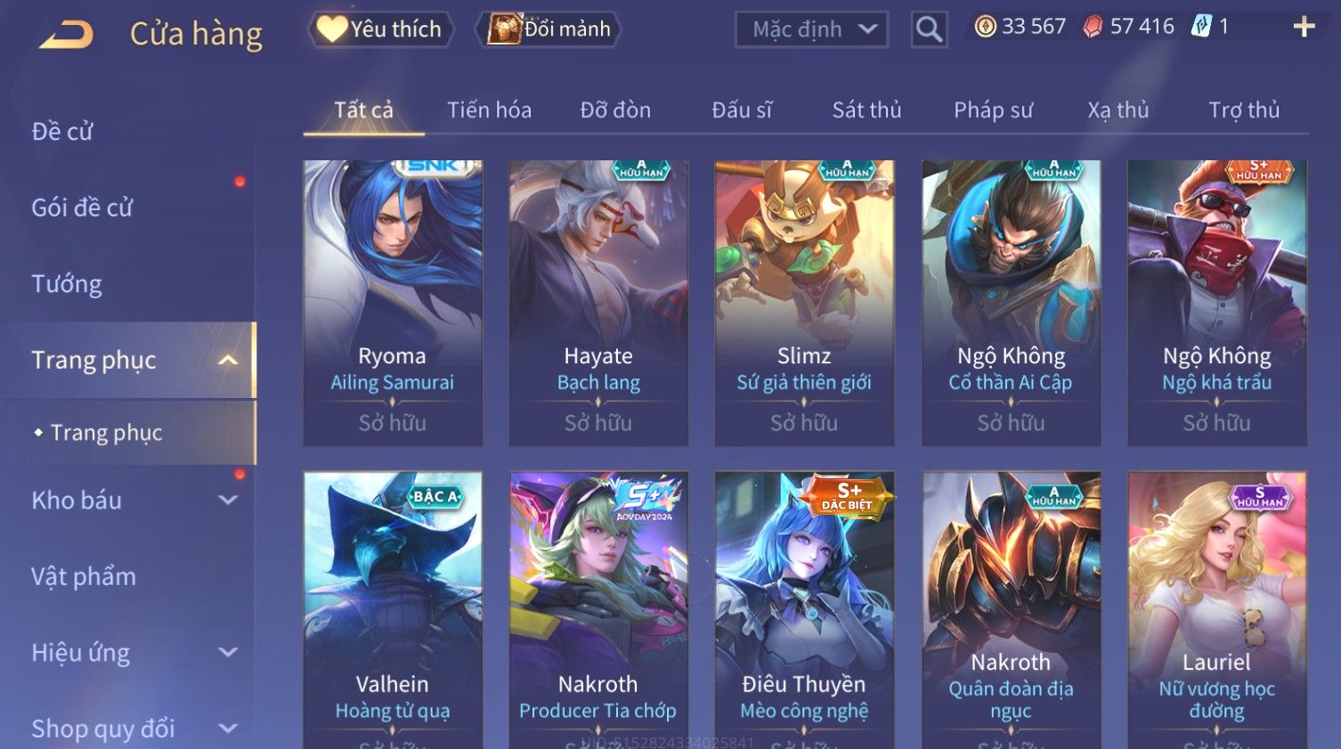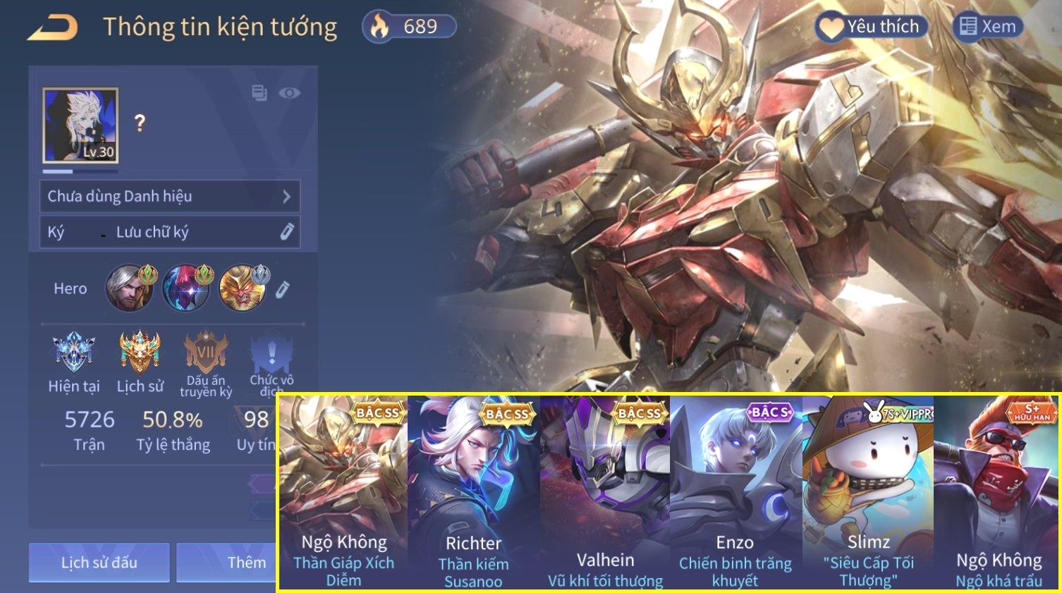 Nổi bật: Skin: Ngộ Không Thần Giáp Xích Diễm×Richter Thần Kiếm Susanoo×Valhein Vũ Khí Tối Thượng×Full Ngọc, Nhiều Skin SS Đẹp