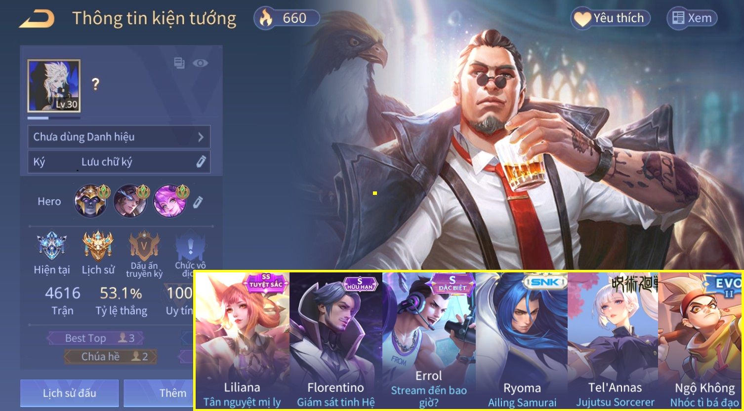Nổi bật: Florentino Giám Sát Tinh Hệ, Liliana Tân Nguyệt Mị Ly, Full Ngọc, Nhiều Skin Đẹp