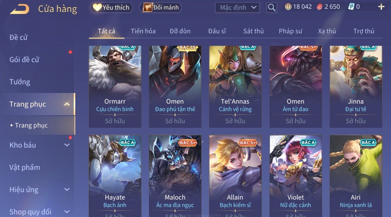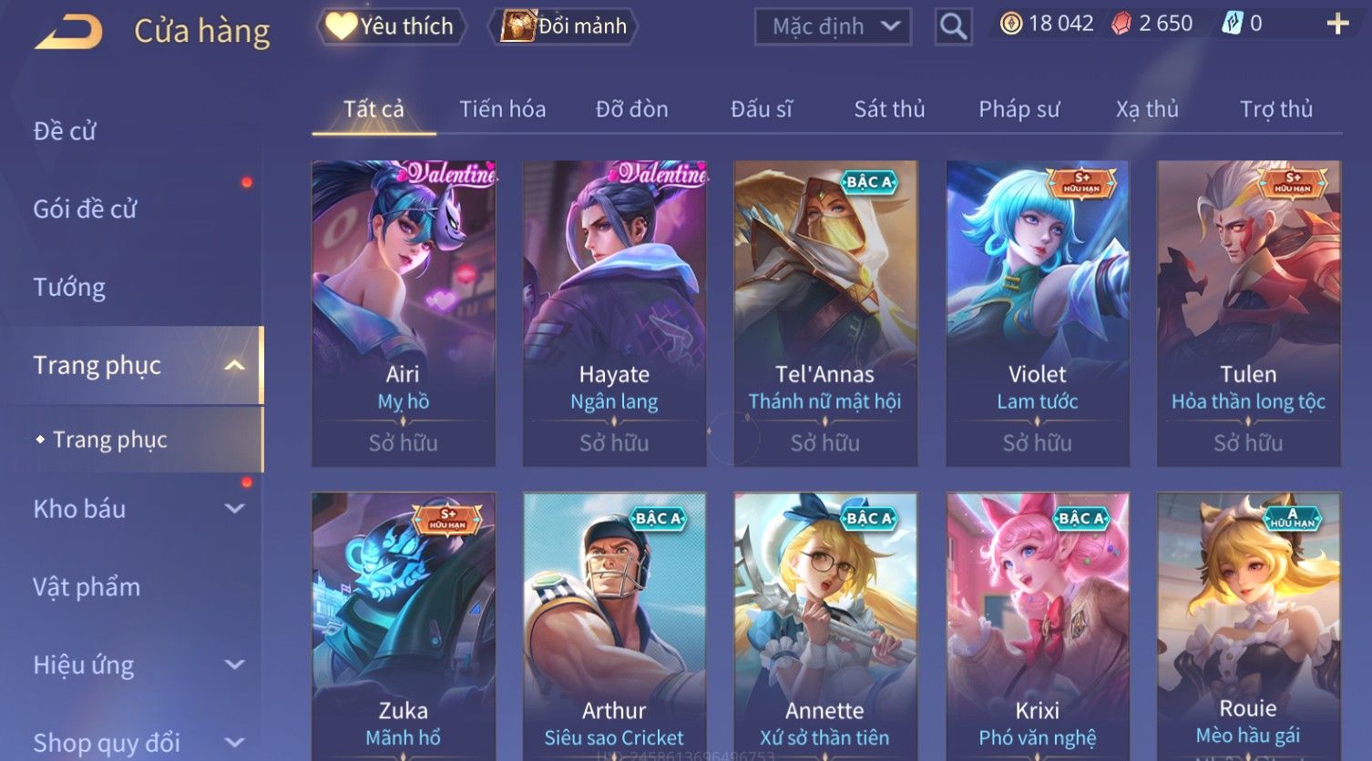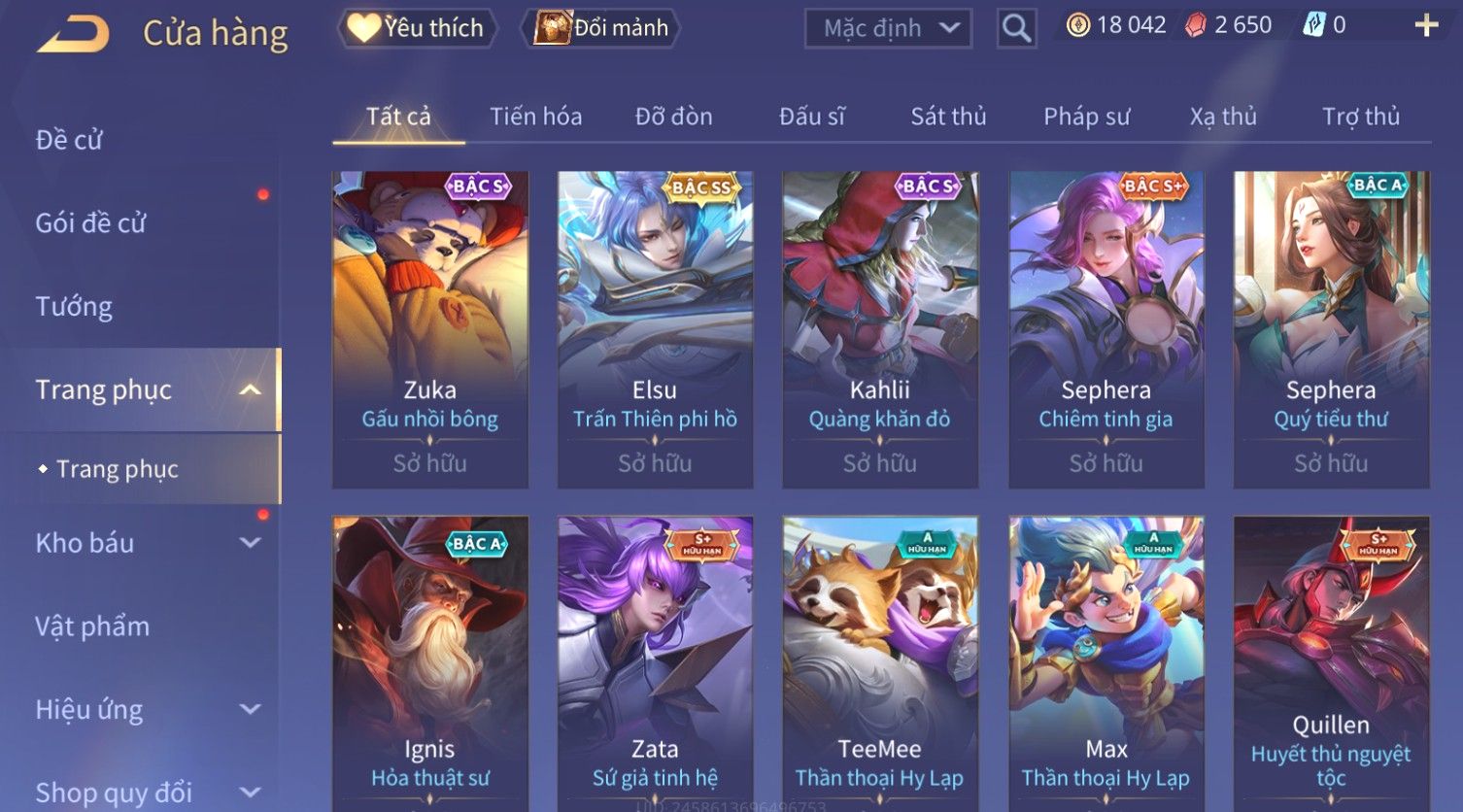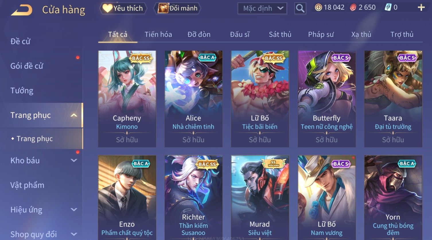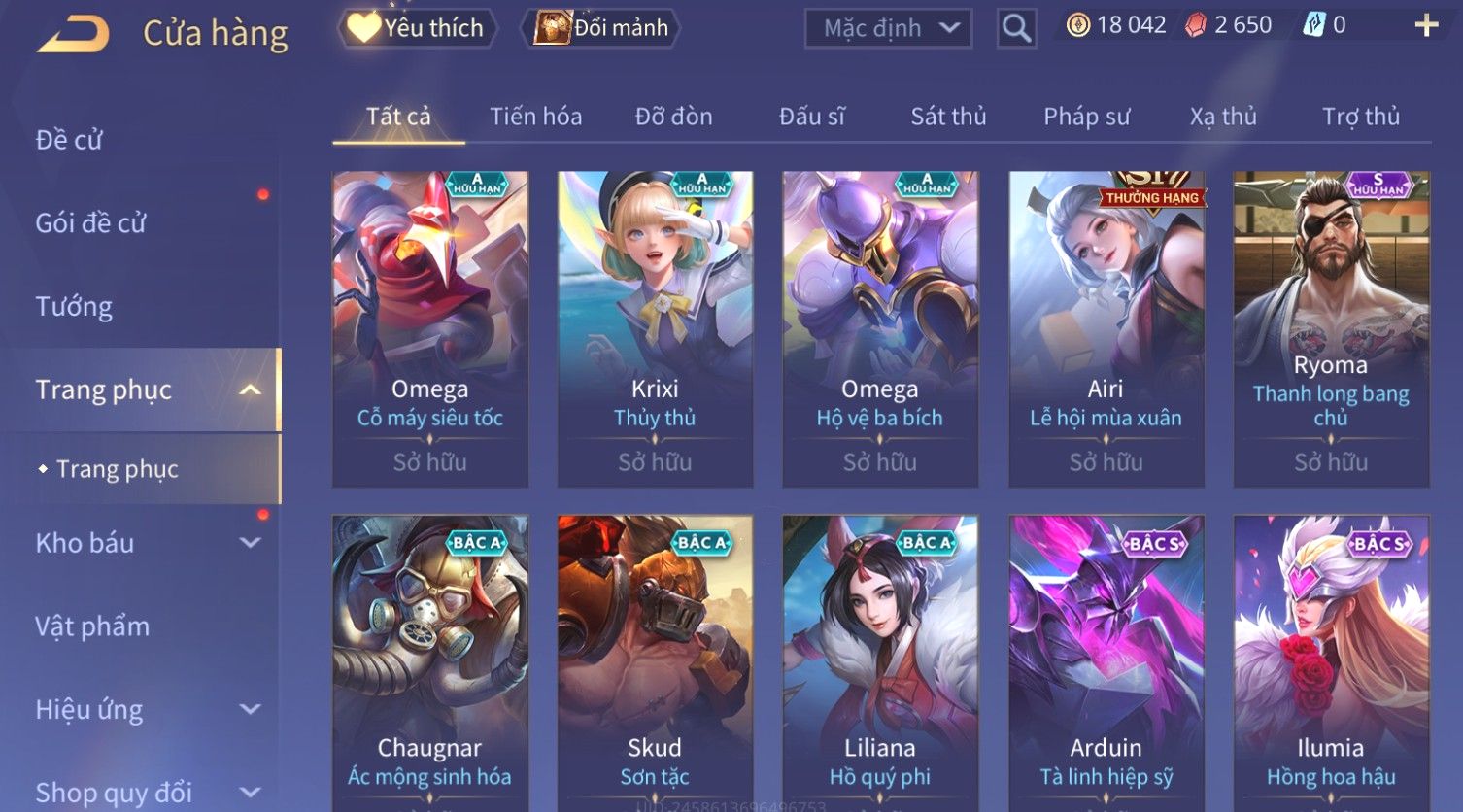Nổi bật: Skin: Yena WaVe×Elsu Trấn Thiên Phi Hồ×Bijan Hoàng Kim Cơ Giáp×Tulen Tân Niên Vệ Thần×Raz Siêu Việt×Richter Thần Kiếm Susanoo×Capheny Kimono×Zata Sứ Giả Tinh Hệ×Ryoma Thanh Long Bang Chủ×Ilumia Nộ Hải Thiên Ngư×Omen Đao Phủ Tận Thế×Full Ngọc, Nhiều Skin SS Đẹp