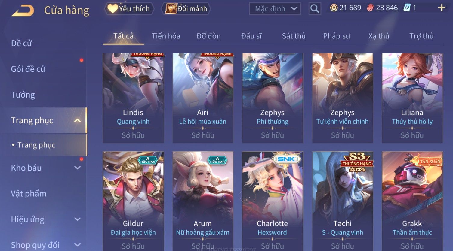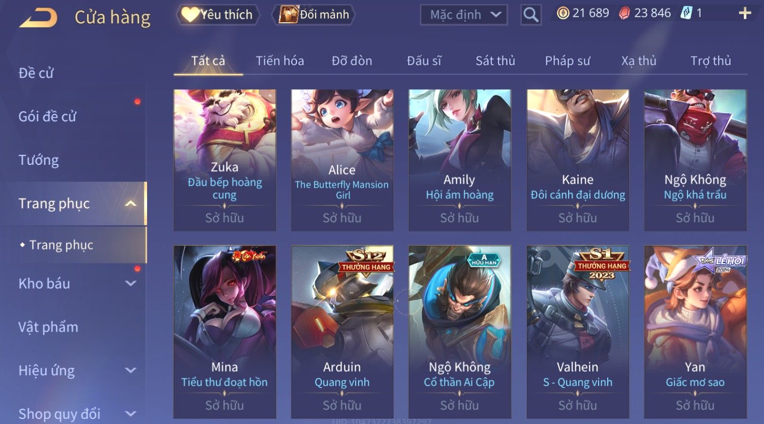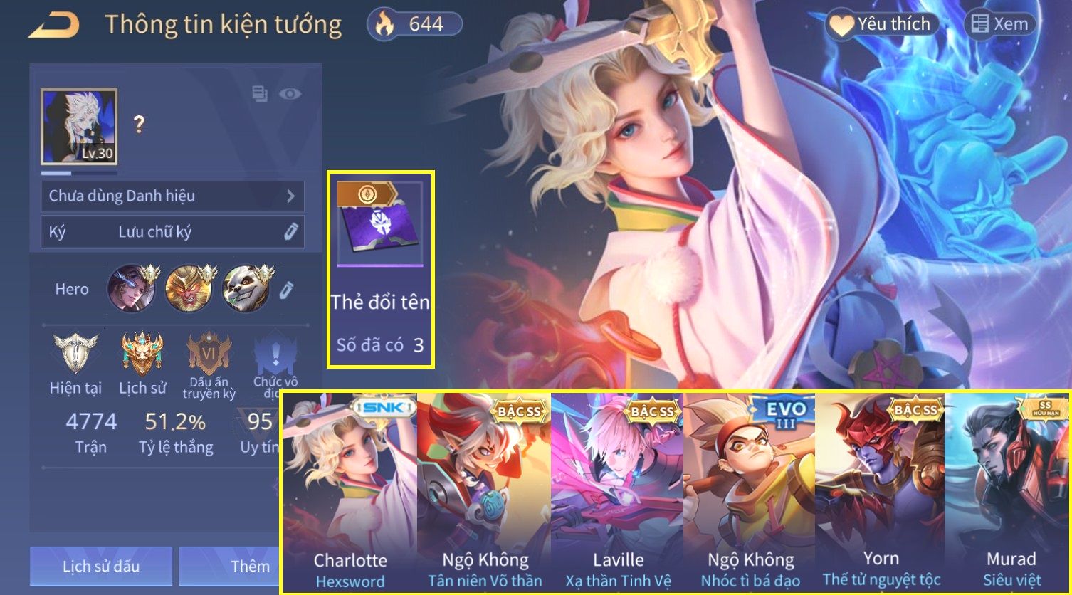Nổi bật: Skin: Ngộ Không Tân Niên Võ Thần×Laville Xạ thần Tinh Vệ×Charlotte Full Ngọc, Nhiều Skin SS Đẹp