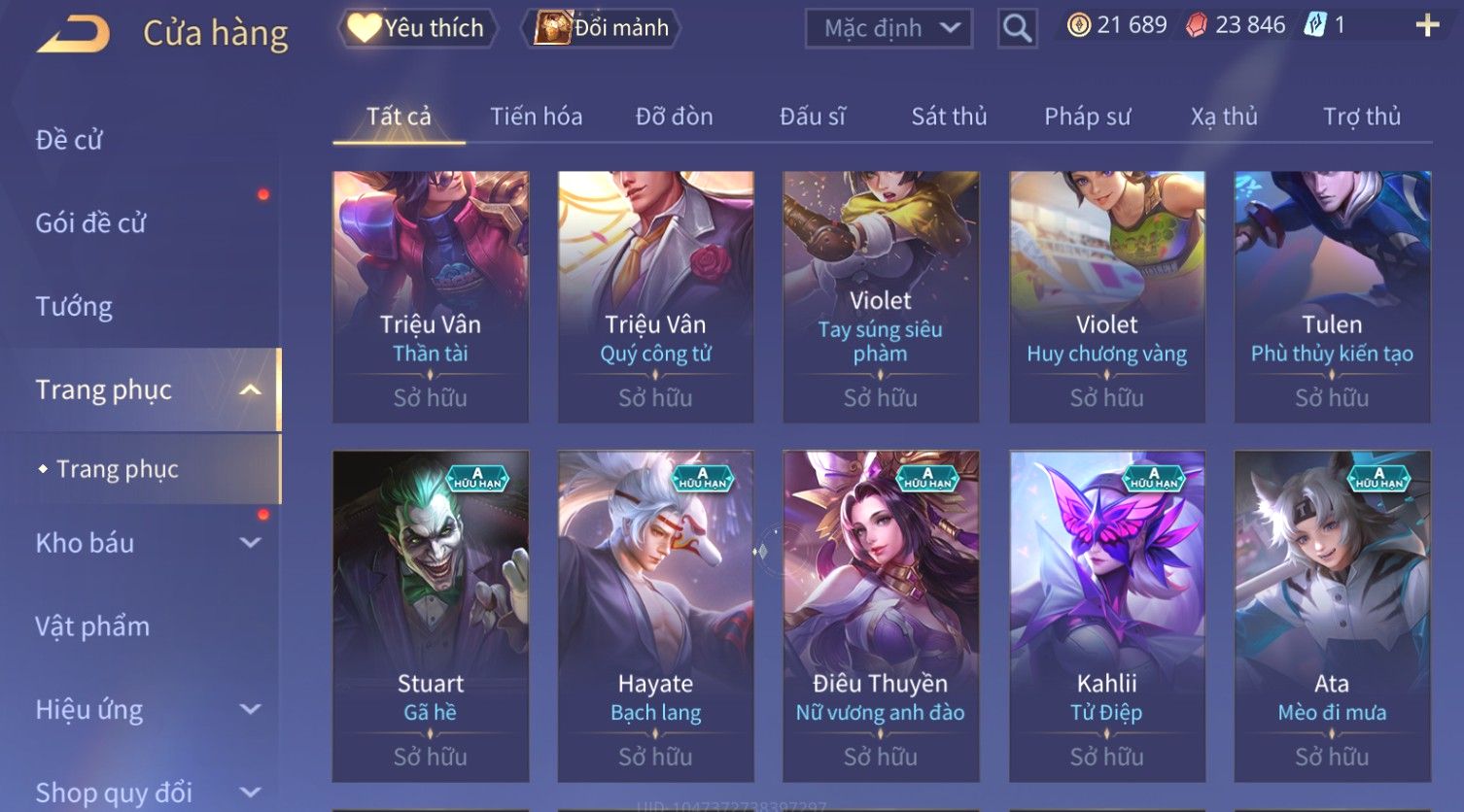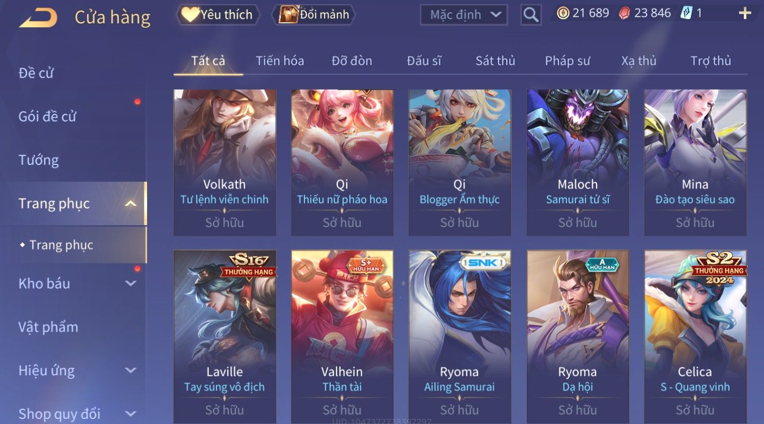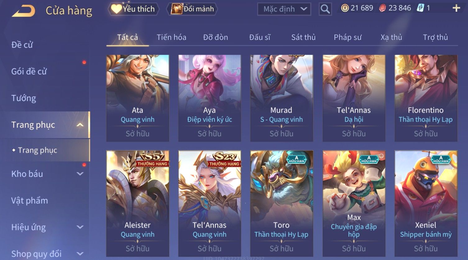 Nổi bật: Skin: Ngộ Không Tân Niên Võ Thần×Laville Xạ thần Tinh Vệ×Charlotte Full Ngọc, Nhiều Skin SS Đẹp