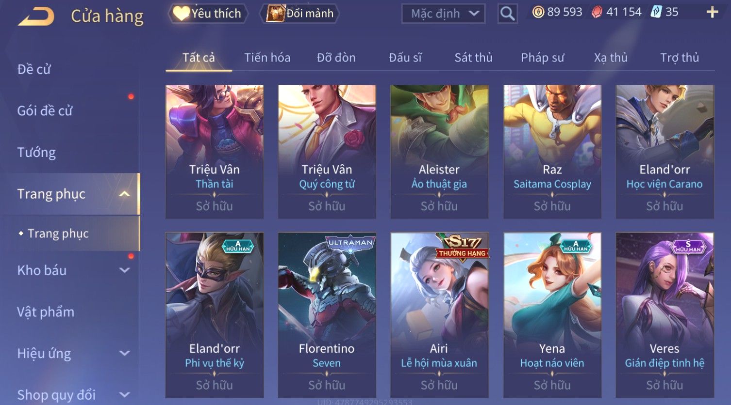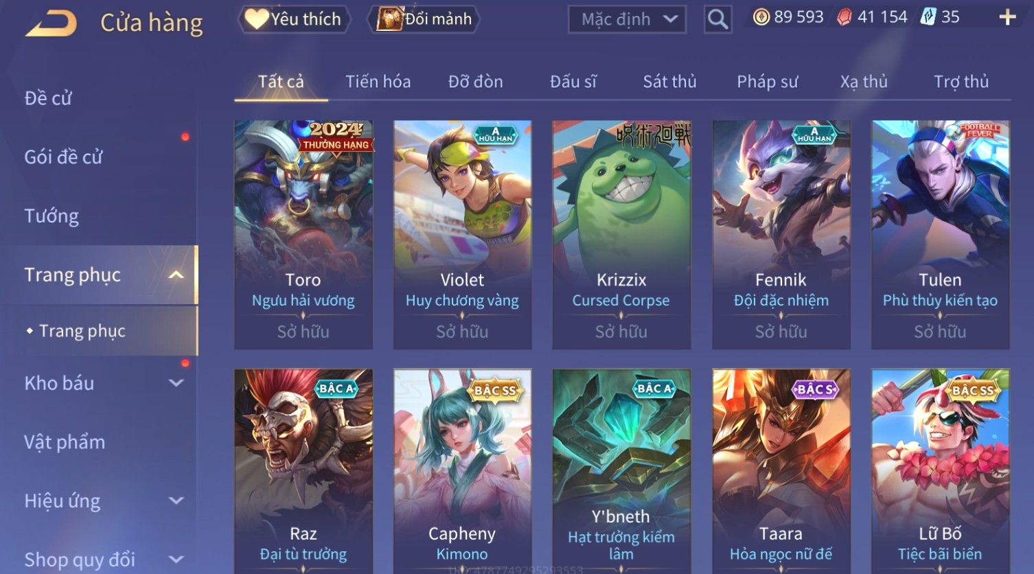 Nổi bật: Skin: Raz Chiến Thần Muay Thái×Yorn Vệ Binh Ngân Hà×Capheny Kimono×Florentino Seven×Full Ngọc, Nhiều Skin SS Đẹp