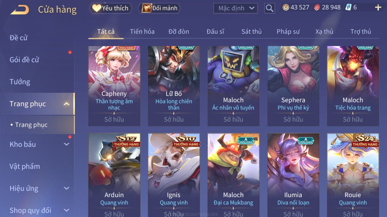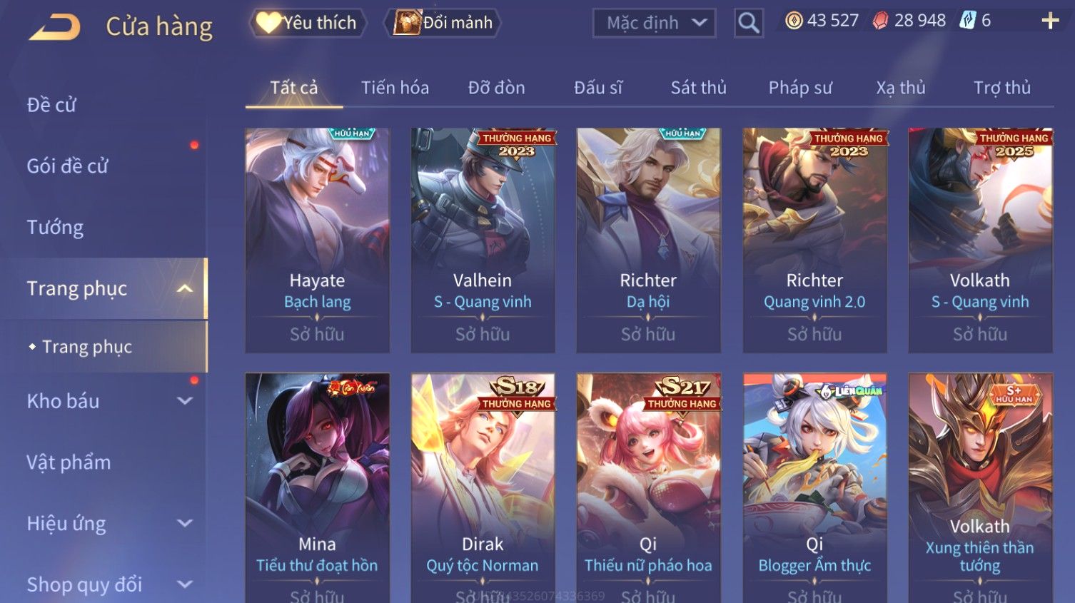 Nổi bật: Skin: Liliana Tân Nguyệt Mị Ly×Raz Chiến Thần Muay Thái×Yorn Long Thần Soái×Maloch Đại Tướng Nguyệt Tộc×Florentino Seven×Full Ngọc, Nhiều Skin SS Đẹp