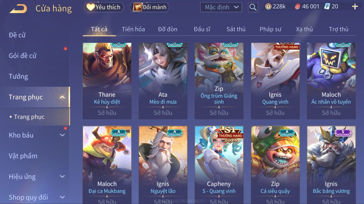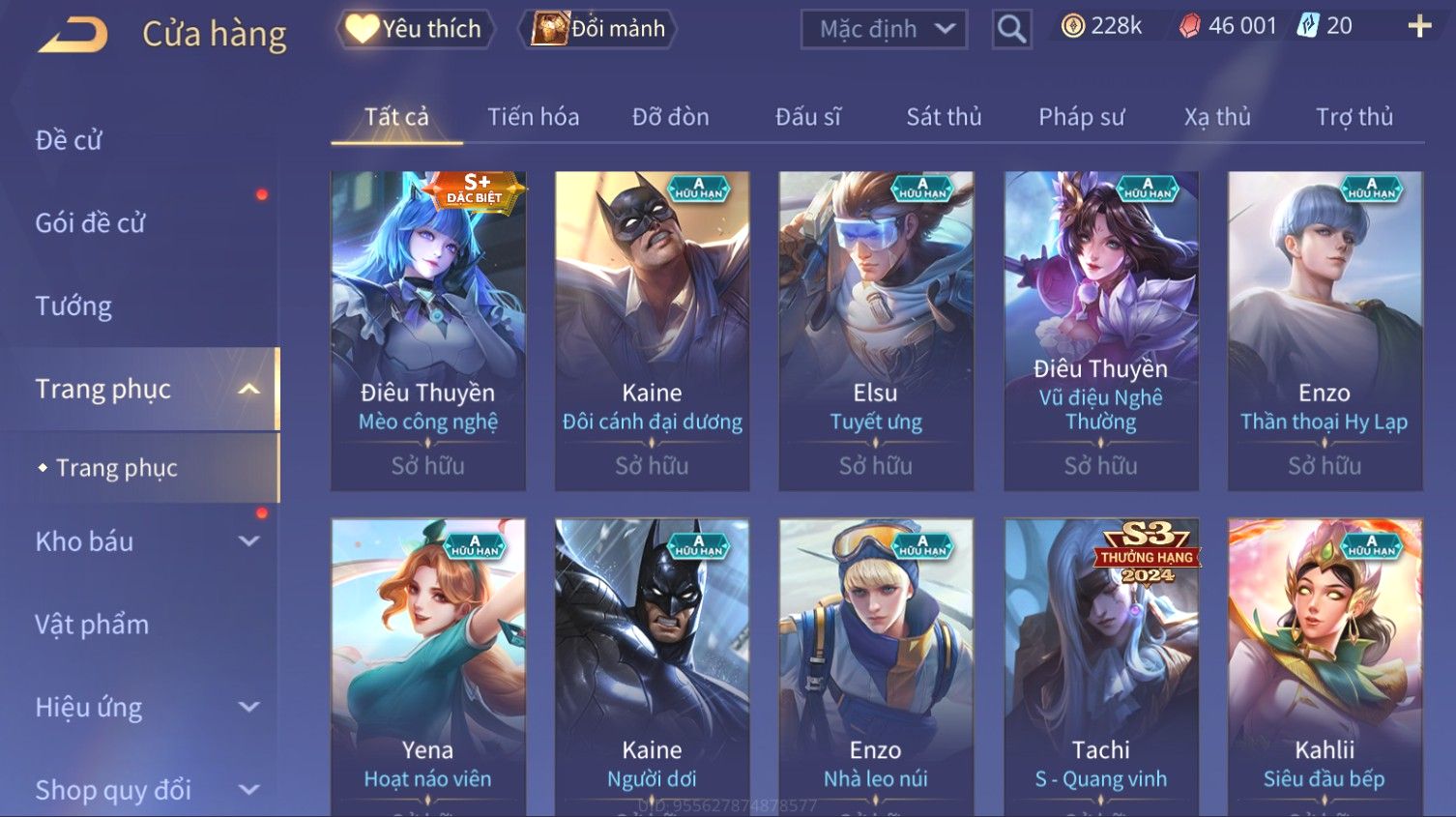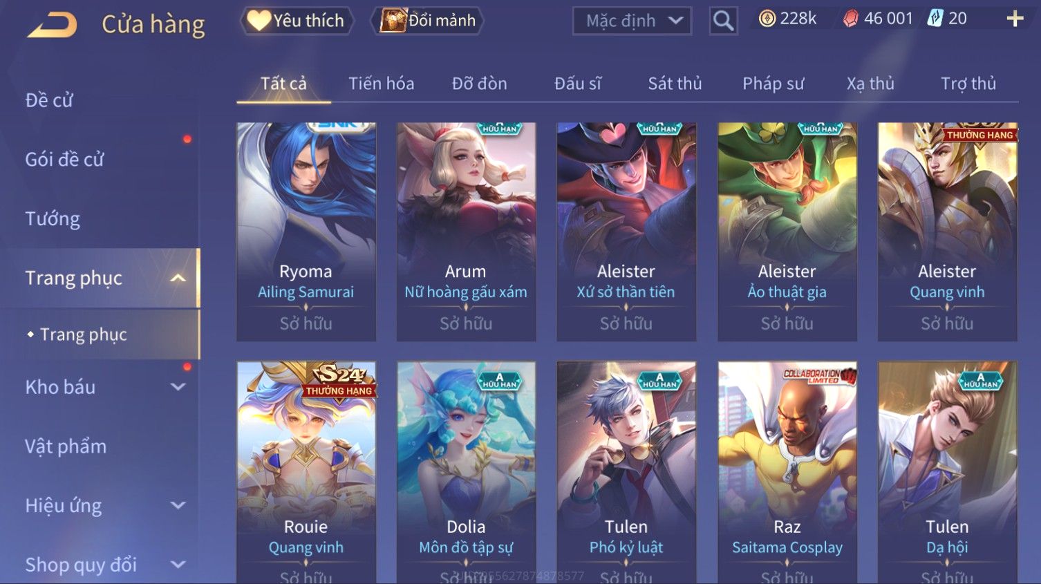 Nổi bật: Skin: Ryoma Sumarai Huyền Thoại×Full Ngọc, Nhiều Skin SS Đẹp