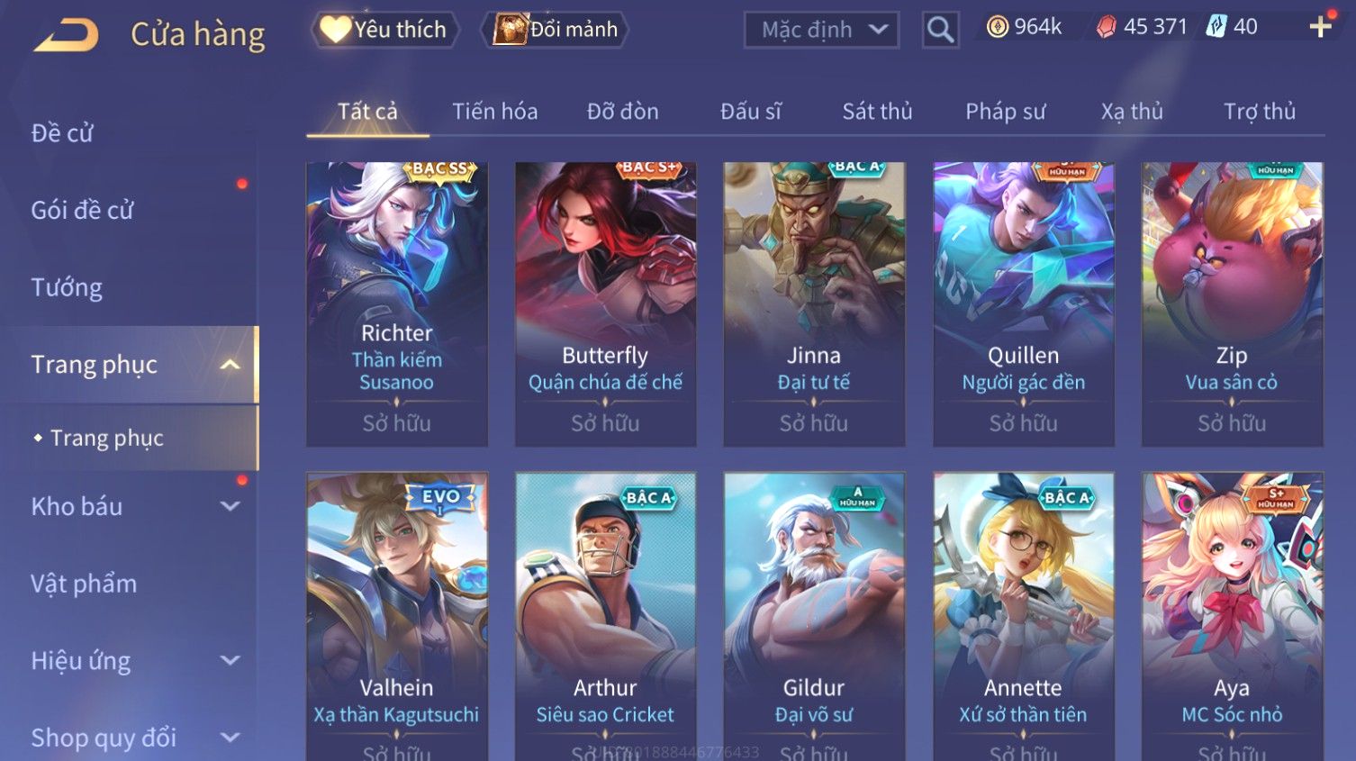 Nổi bật: Skin: Yorn Long Thần Soái×Richter Thần Kiếm Susanoo×Zephys Siêu Việt×Aya Mc Sóc Nhỏ×Full Ngọc, Nhiều Skin SS Đẹp