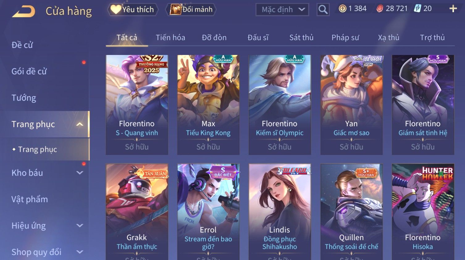 Nổi bật: Florentino Giám Sát Tinh Hệ, Full Ngọc, Nhiều Skin Đẹp