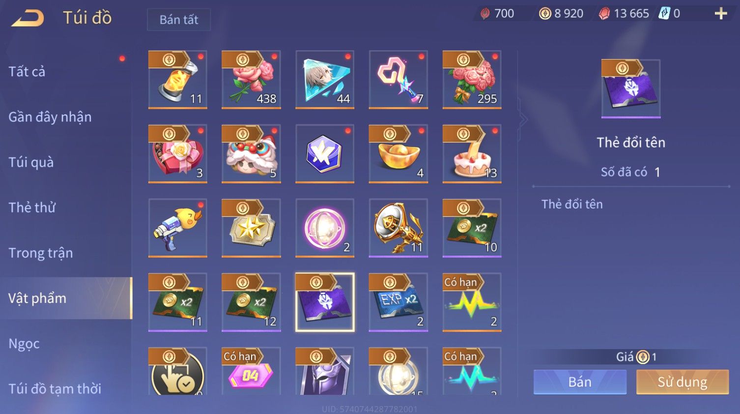 Trạng Thái: Nick có SĐT or Gmail Của Shop( Có Thể Thay Đổi)