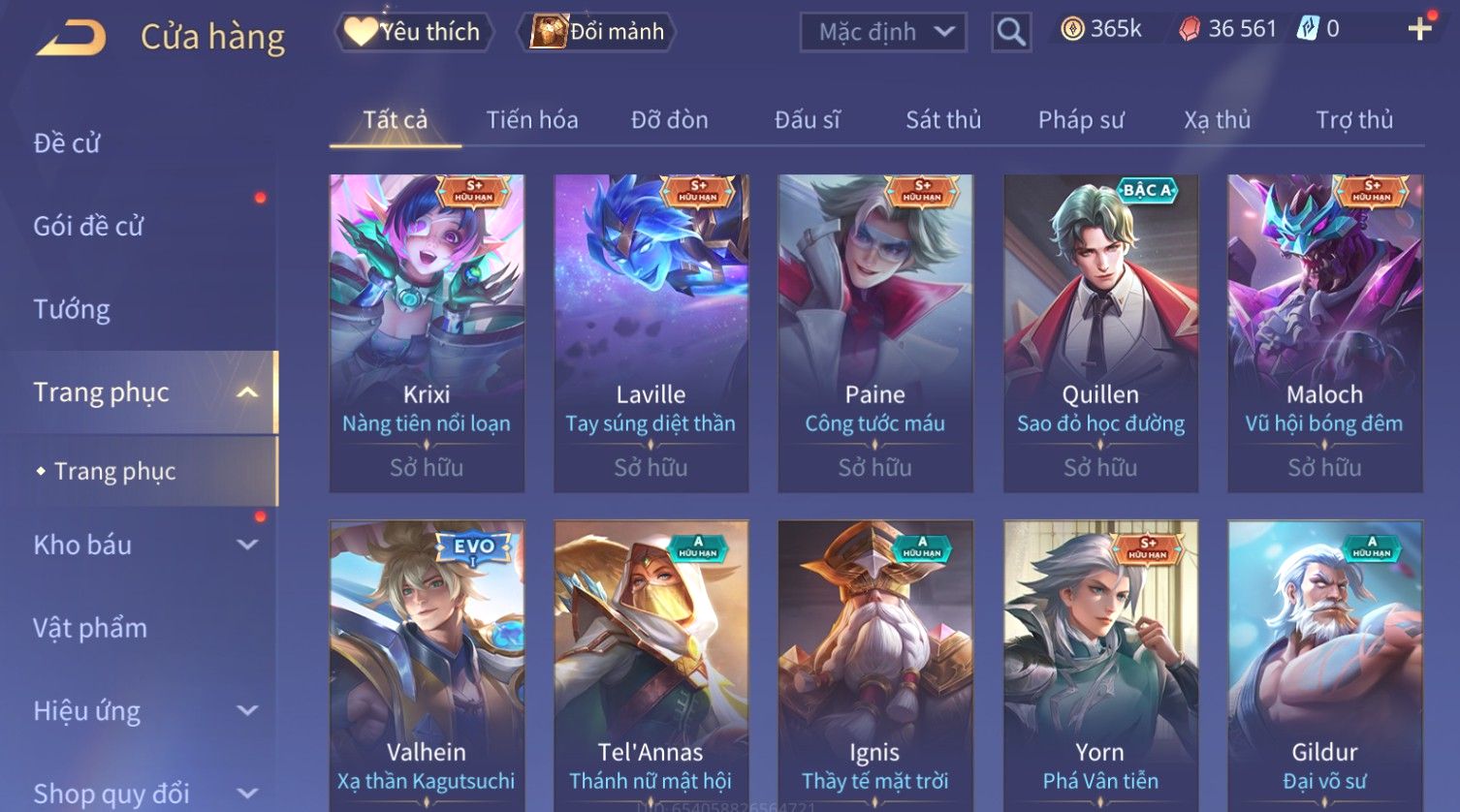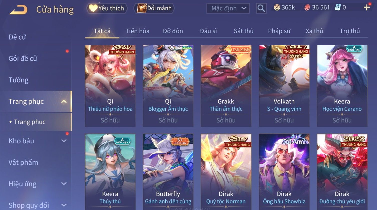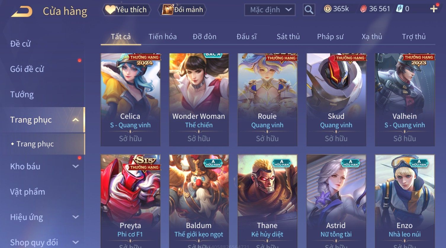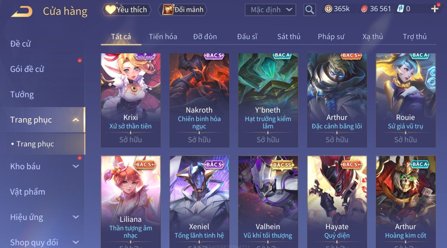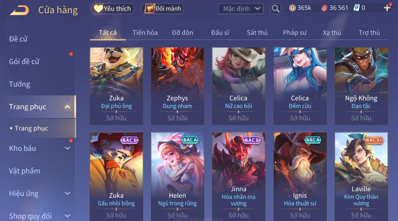 Nổi bật: Skin: Violet Tiệc Bãi Biển×Violet Thần Long Tỷ Tỷ×Richter Thần Kiếm Susanoo×Bijan Hoàng Kim Cơ Giáp×Valhein Đệ Nhất Thần Thám×Capheny Kimono×Lauriel Thánh Quang Sứ×Airi Kiemono×Full Ngọc, Nhiều Skin SS Đẹp