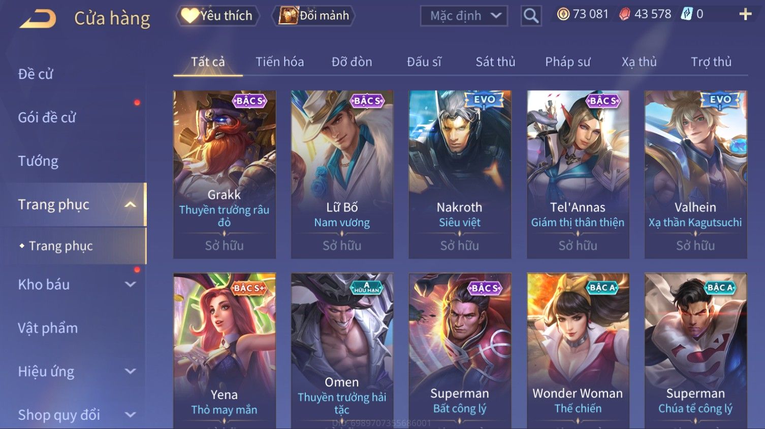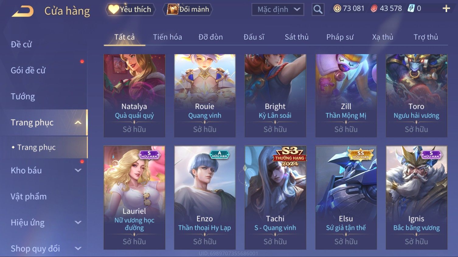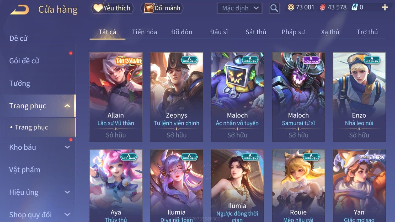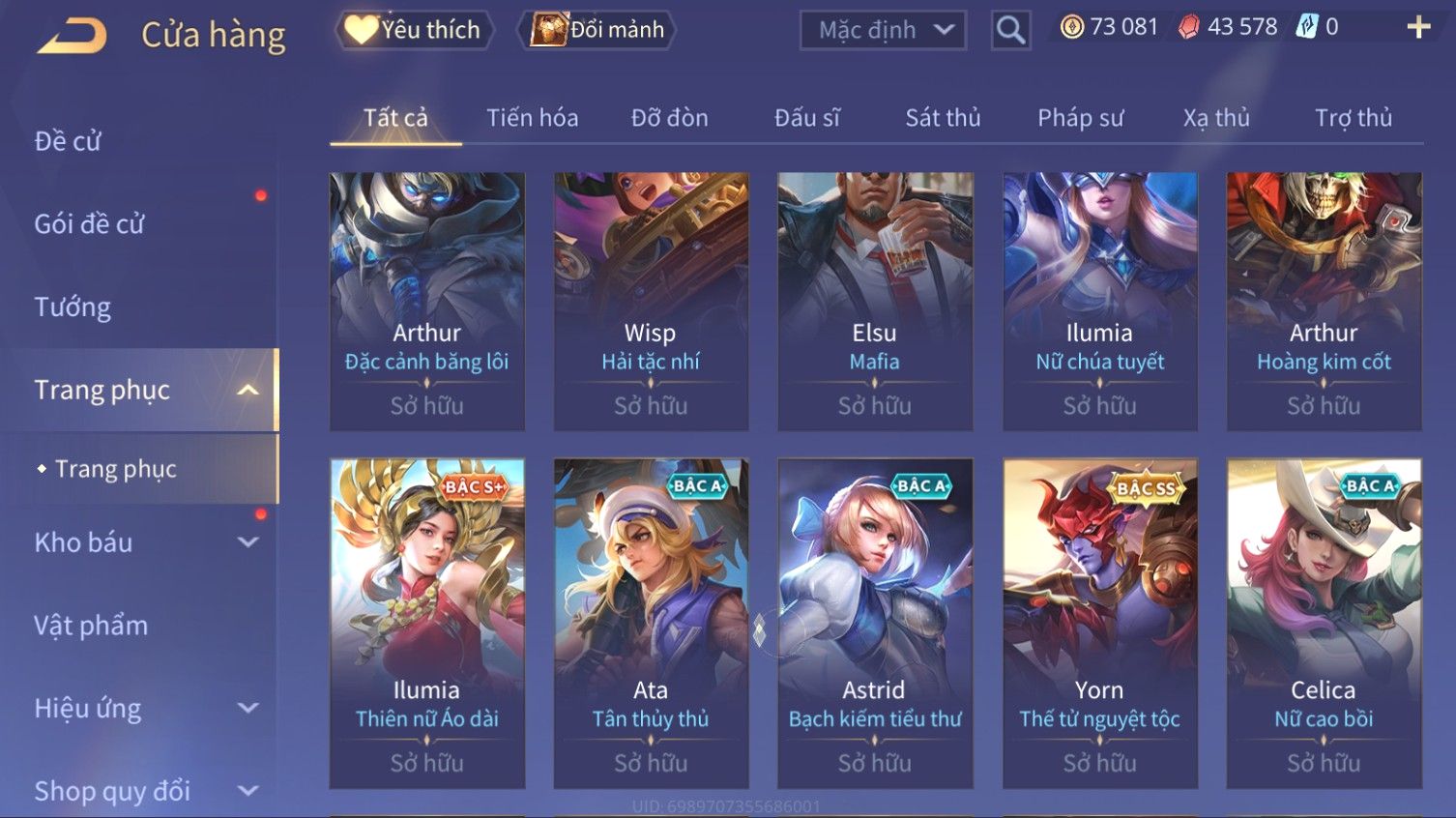 Nổi bật: Skin: Elsu Sử Giả Tận Thế×Elsu Hỏa diệm chu tước×Aoi Hoàng Kim Công Chúa×Full Ngọc, Nhiều Skin SS Đẹp