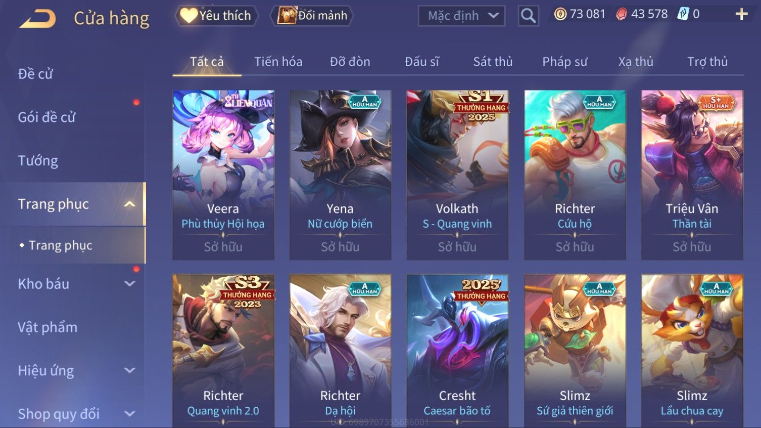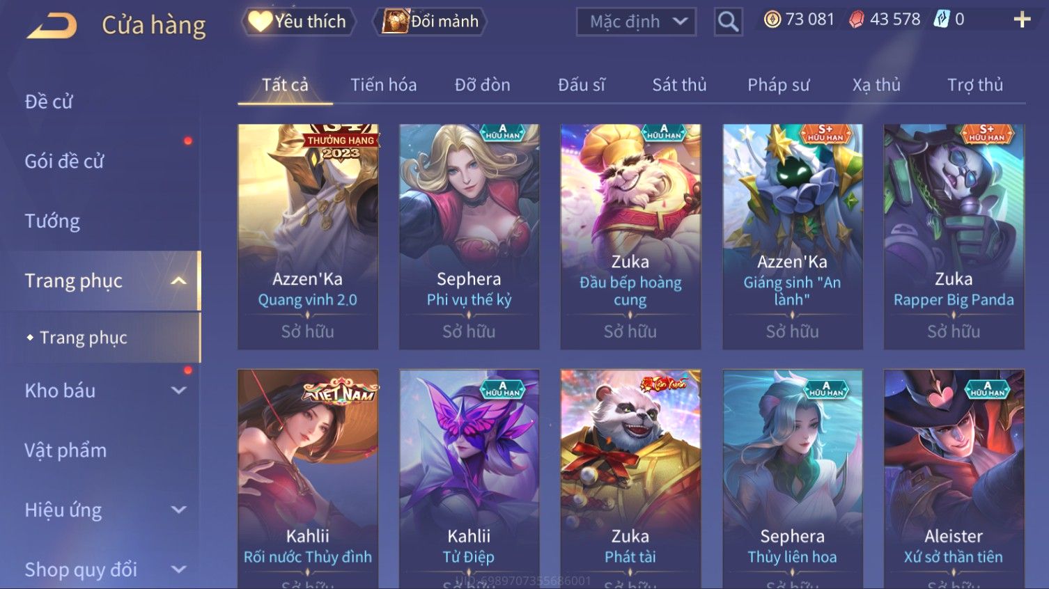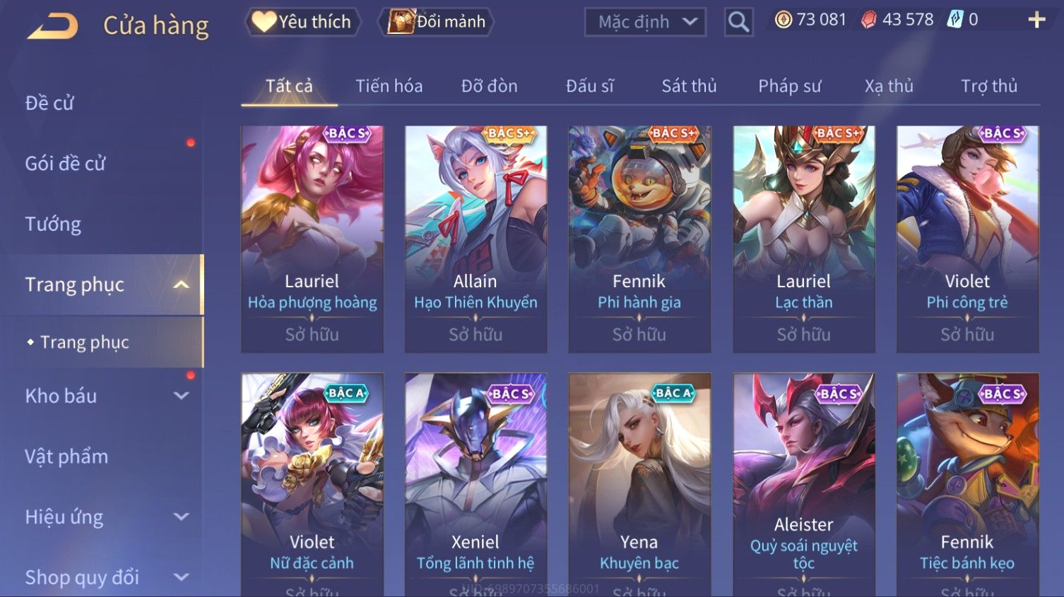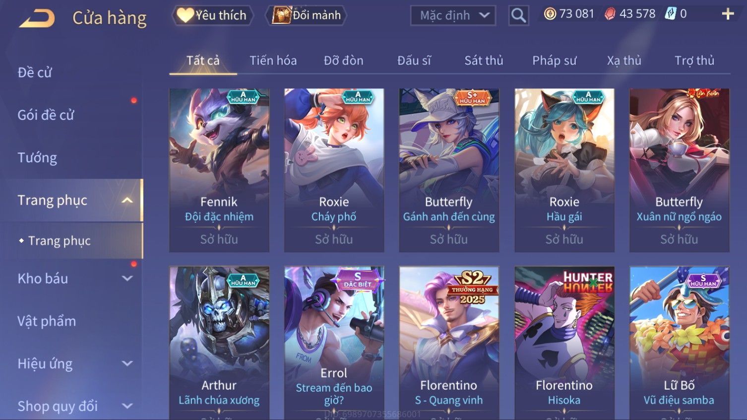 Nổi bật: Skin: Elsu Sử Giả Tận Thế×Elsu Hỏa diệm chu tước×Aoi Hoàng Kim Công Chúa×Full Ngọc, Nhiều Skin SS Đẹp