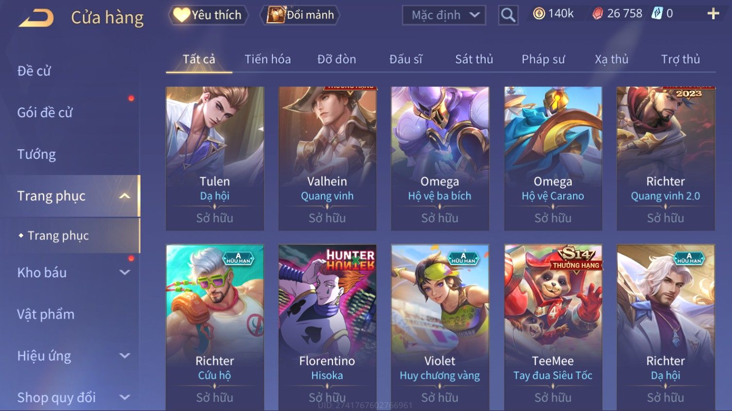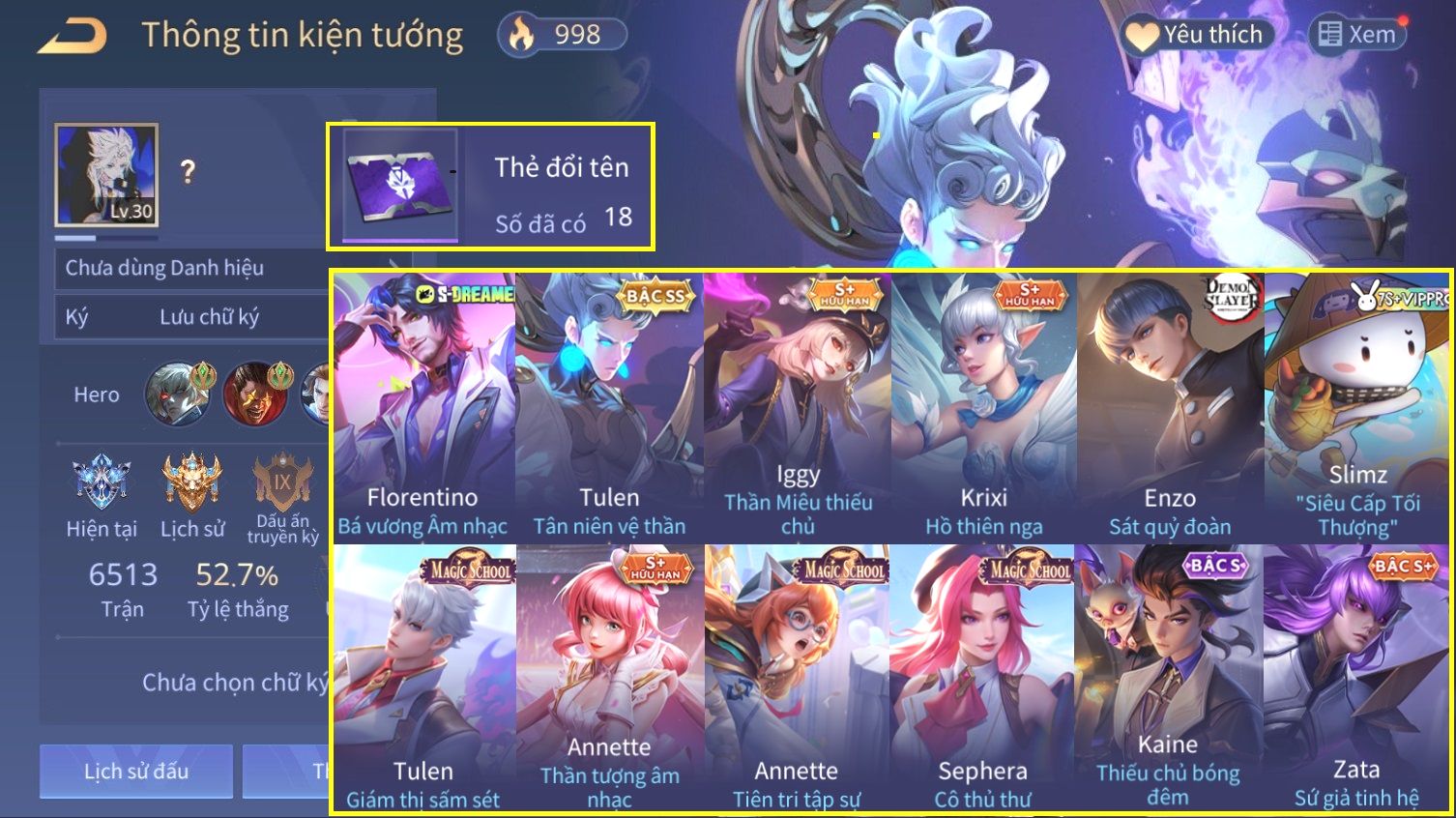 Nổi bật: Skin: Florentino Bá Vương Âm Nhạc×Tulen Tân Niên Vệ Thần×Iggy Thần Miêu Thiếu Chủ×Full Ngọc, Nhiều Skin Đẹp