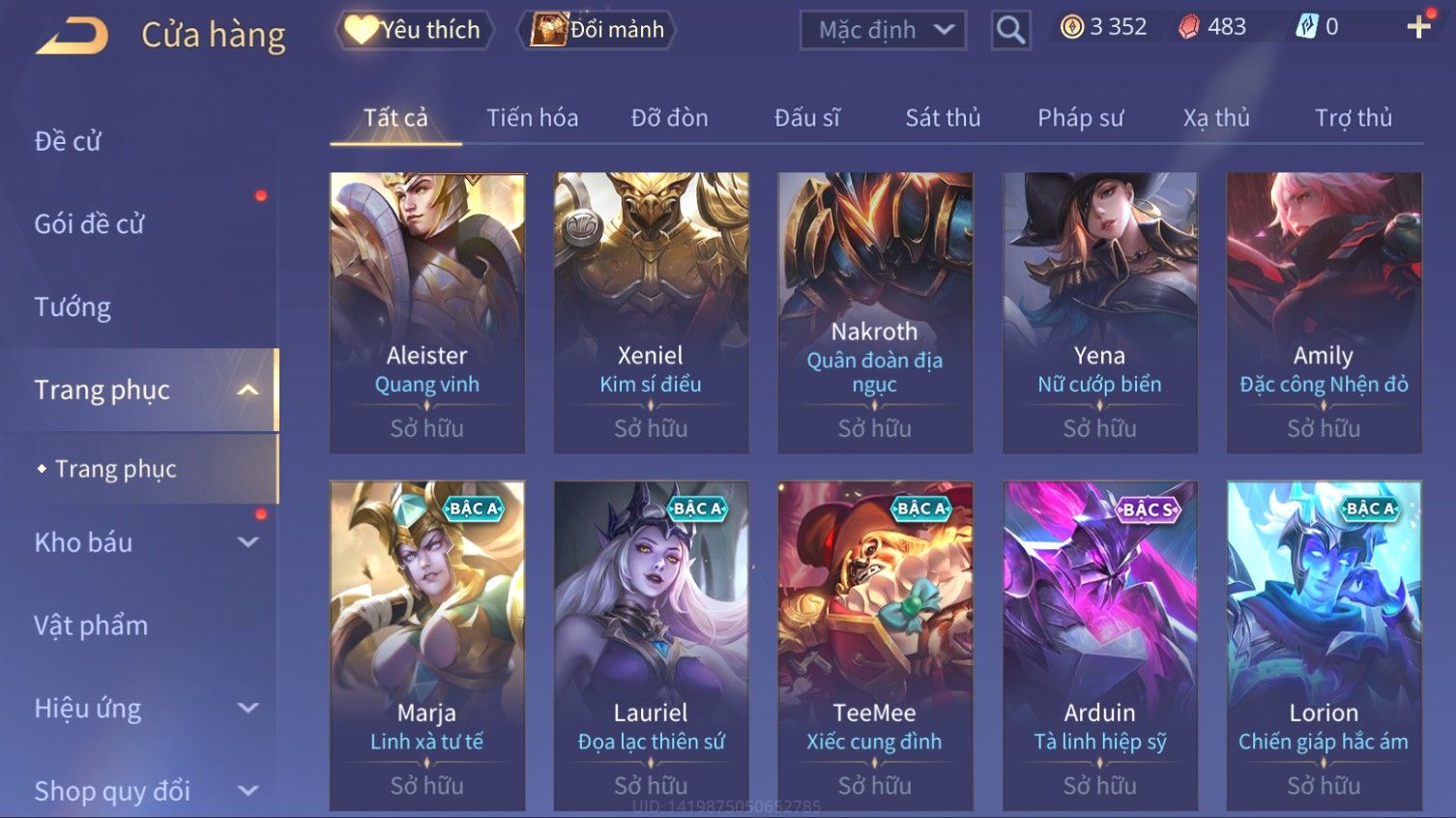 Trạng Thái: Nick có SĐT or Gmail Của Shop( Có Thể Thay Đổi)
