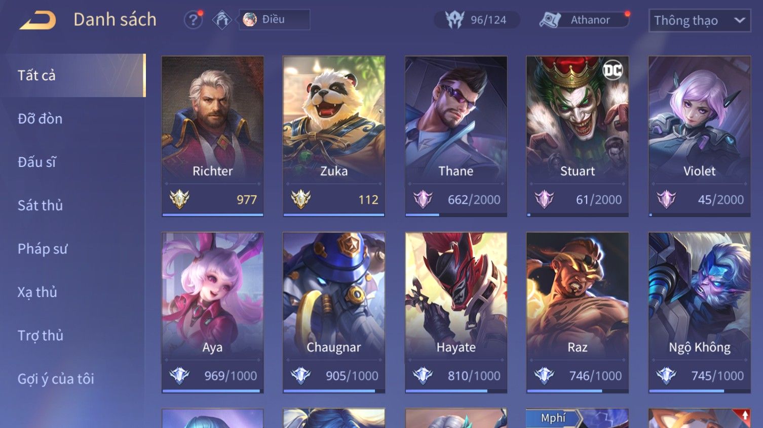 Nổi bật: Skin: Raz Chiến Thần Muay Thái×Raz Gon×Airi Kiemono×Richter Thần Kiếm Susanoo×Yorn Long Thần Soái×Elsu Guitar Tình Ái×Full Ngọc, Nhiều Skin SS Đẹp
