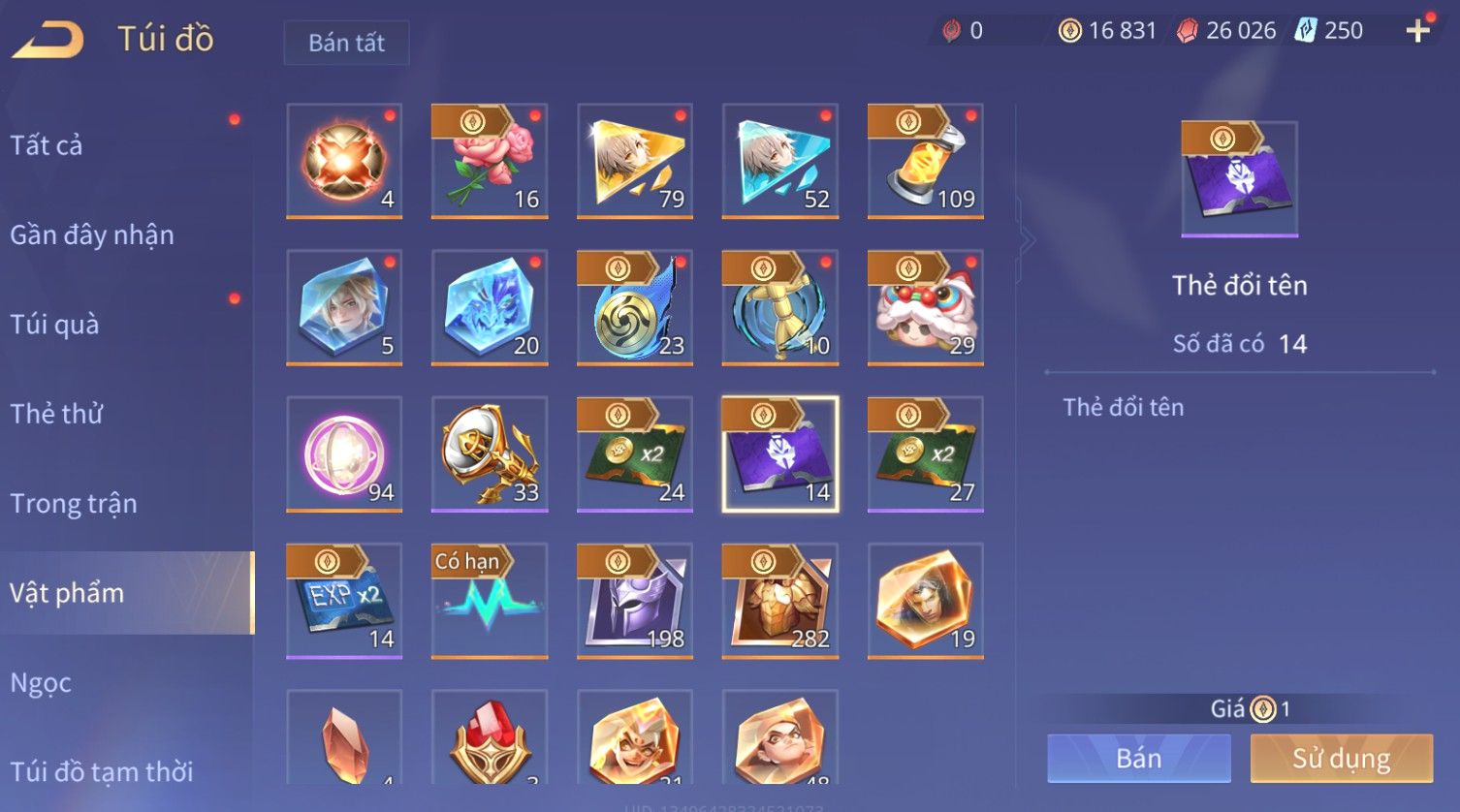 Trạng Thái: Nick có SĐT or Gmail Của Shop( Có Thể Thay Đổi)