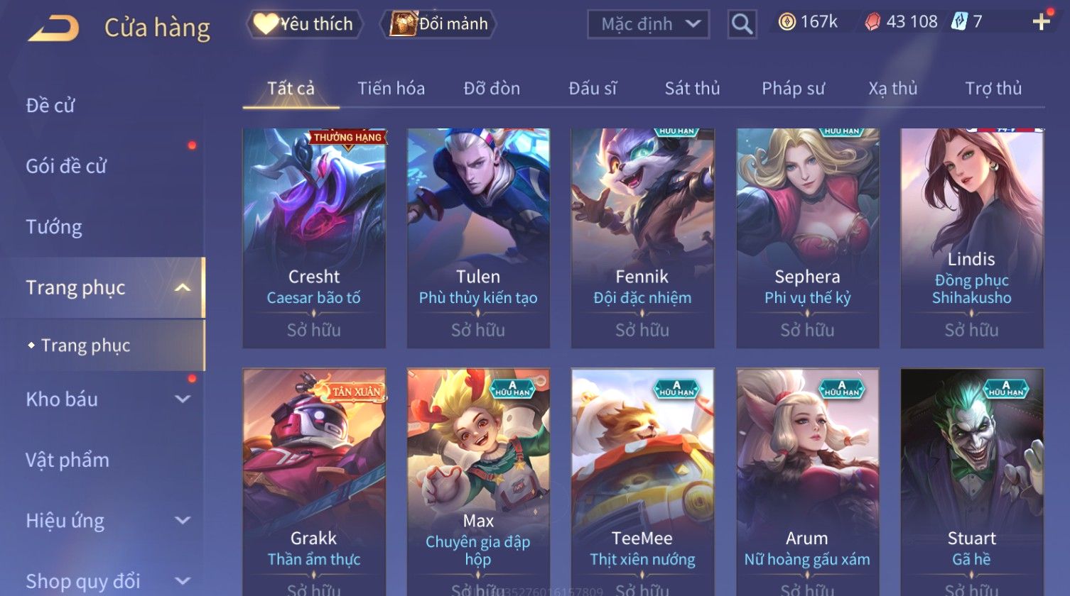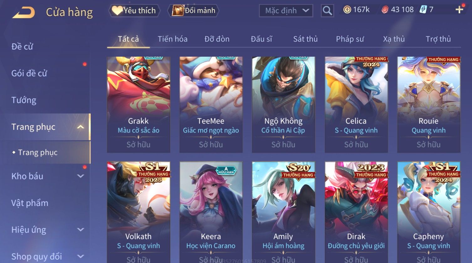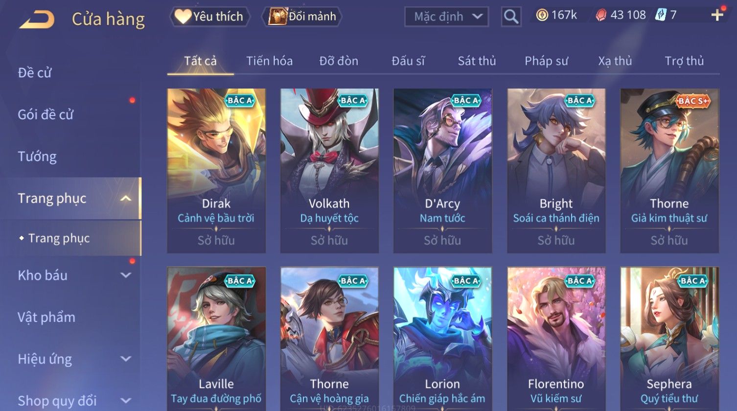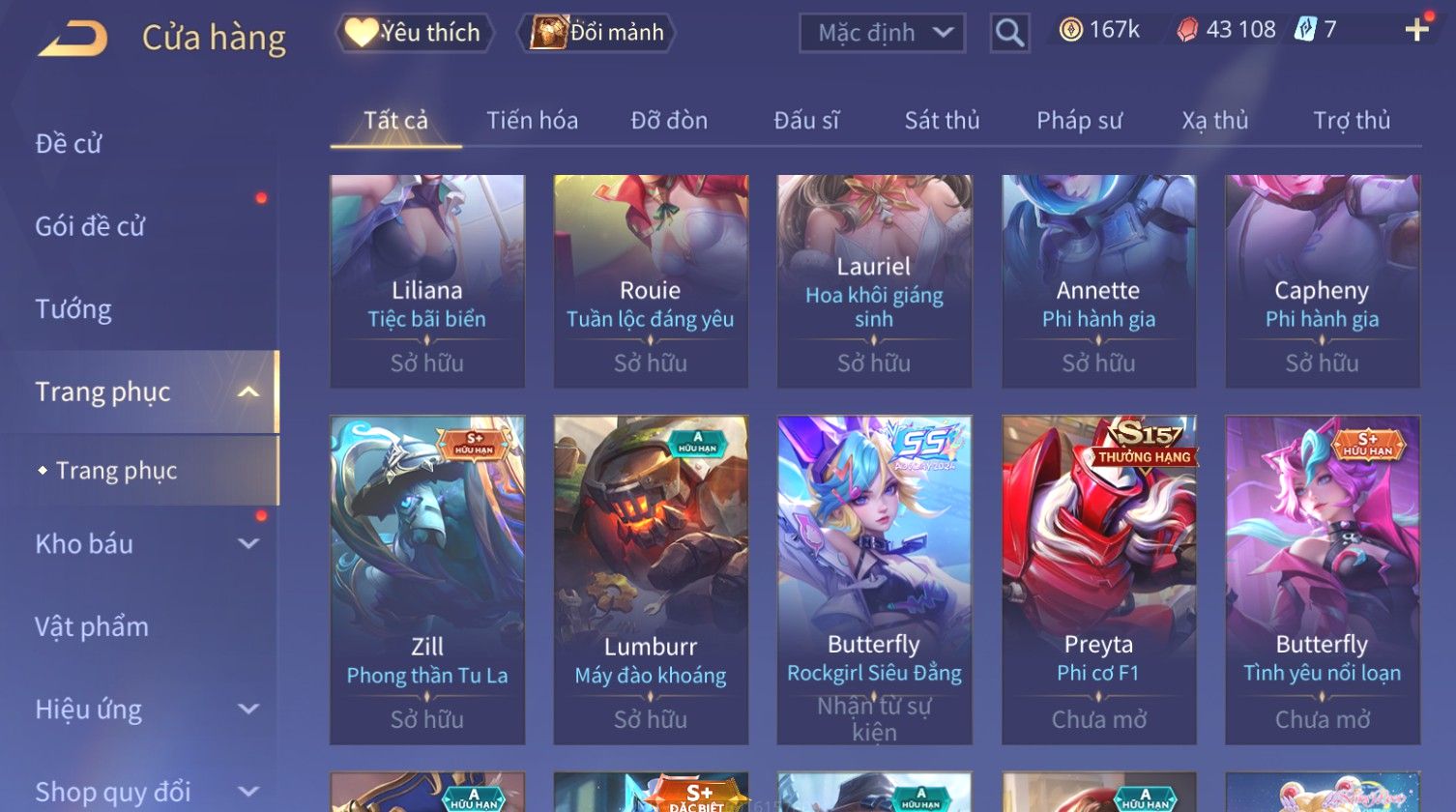 Nổi bật: Skin: Murad Byakuya Kuchiki×Raz Chiến Thần Muay Thái×Raz Siêu Việt×Ngộ Không Siêu Việt×Tulen Tiêu Dao Vũ Thần×Tel'Annas Vũ Khúc Yêu Hồ×Valhein Vũ Khí Tối Thượng×Richter Thần Kiếm Susanoo×Florentino Giám Sát Tinh Hệ×Full Ngọc, Nhiều Skin SS Đẹp
