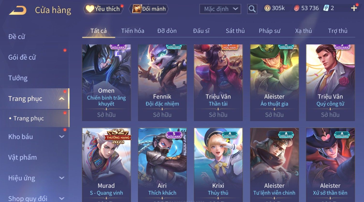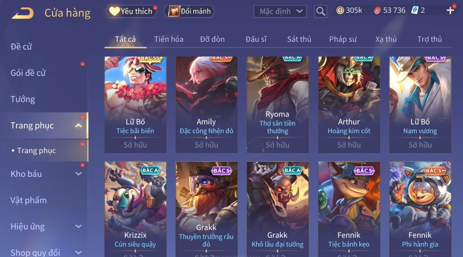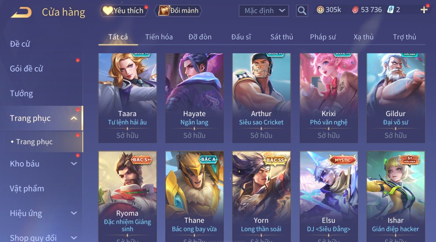 Nổi bật: Skin: Flo Kỷ Nguyên Hổ Phách×Elsu Sử Giả Tận Thế×Violet Thần Long Tỷ Tỷ×Yorn Long Thần Soái×Laville Xạ thần Tinh Vệ×Richter Thần Kiếm Susanoo×Airi Kiemono×Full Ngọc, Nhiều Skin SS Đẹp