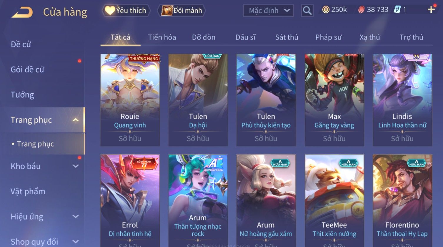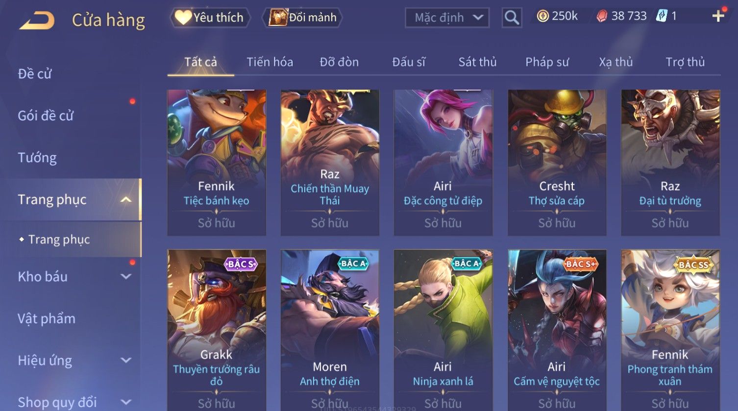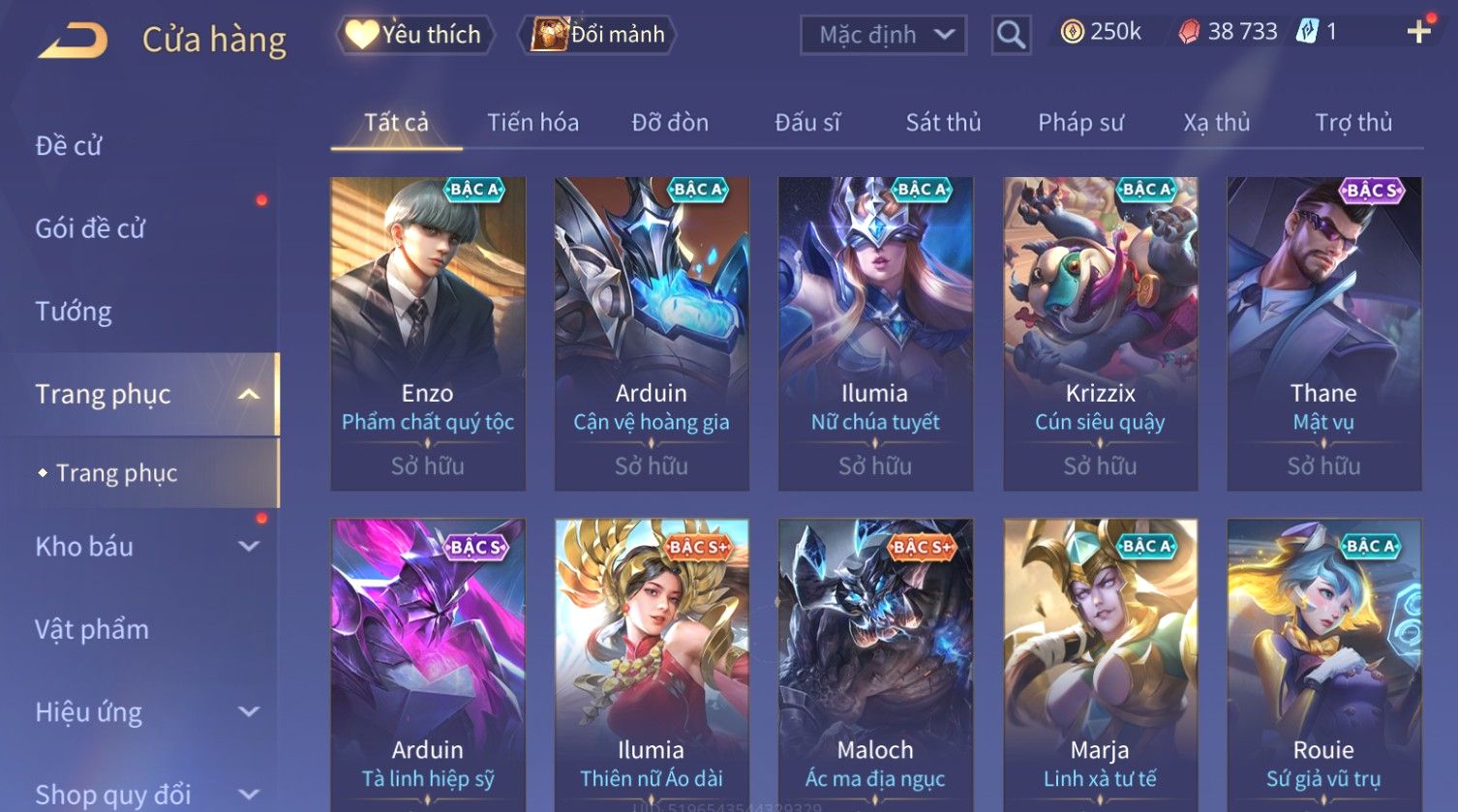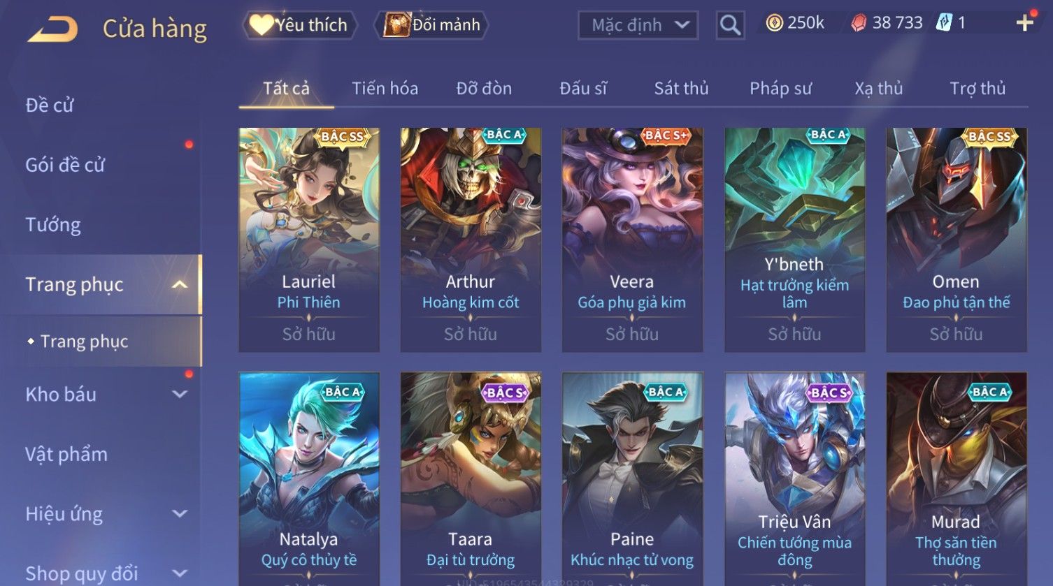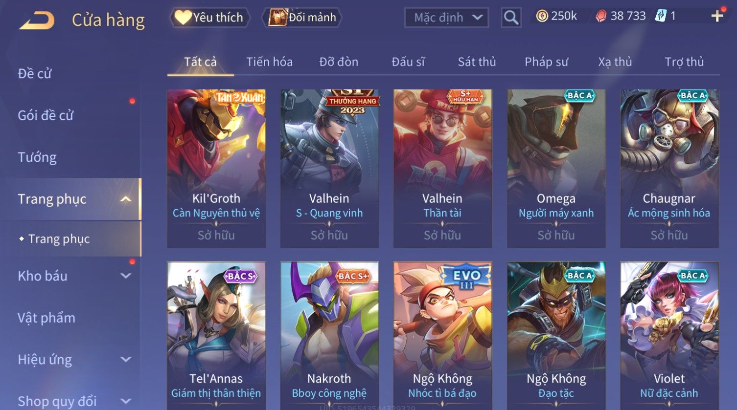 Nổi bật: Skin: Raz Chiến Thần Muay Thái×Yorn Long Thần Soái×Zata Chí Tôn Tà Phượng×Ngộ Không Thần Giáp Xích Diễm×Fennik Phong Tranh Thám Xuân×Lauriel Phi Thiên×Elsu Trấn Thiên Phi Hồ×Omen Đao Phủ Tận Thế×Florentino Giám Sát Tinh Hệ×Ilumia Nộ Hải Thiên Ngư×Full Ngọc, Nhiều Skin SS Đẹp