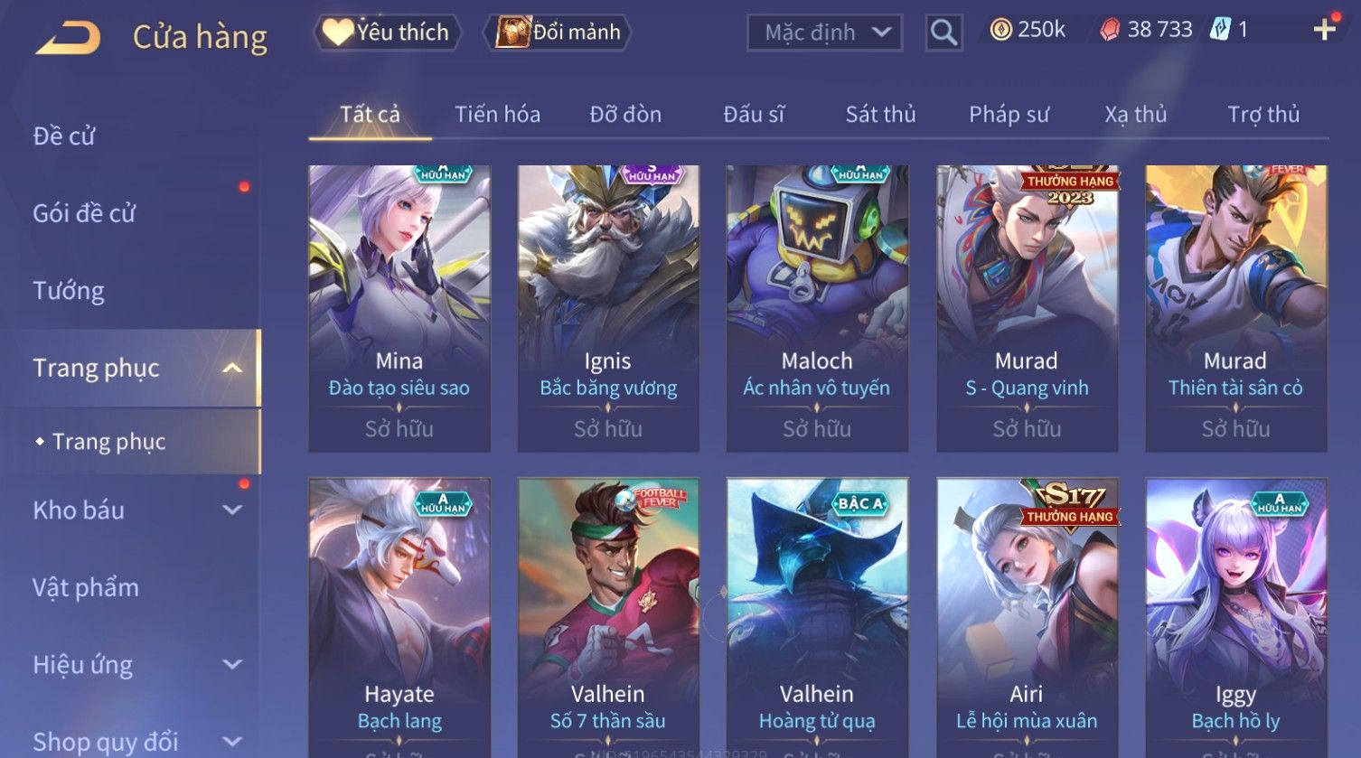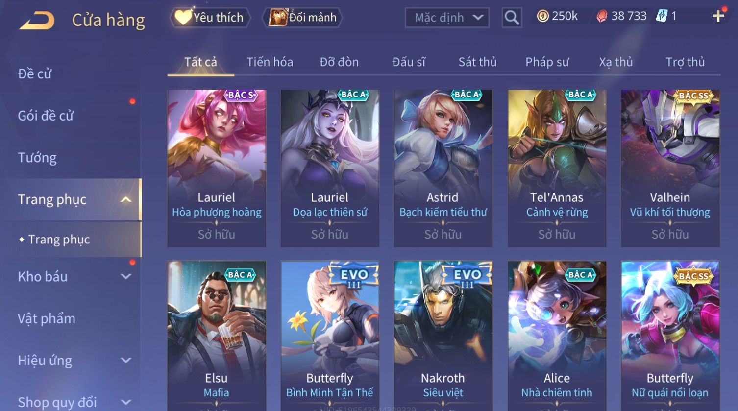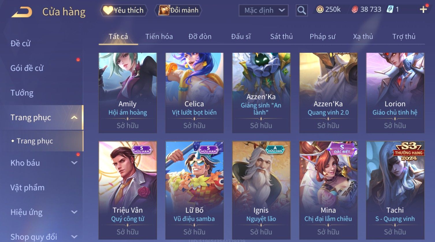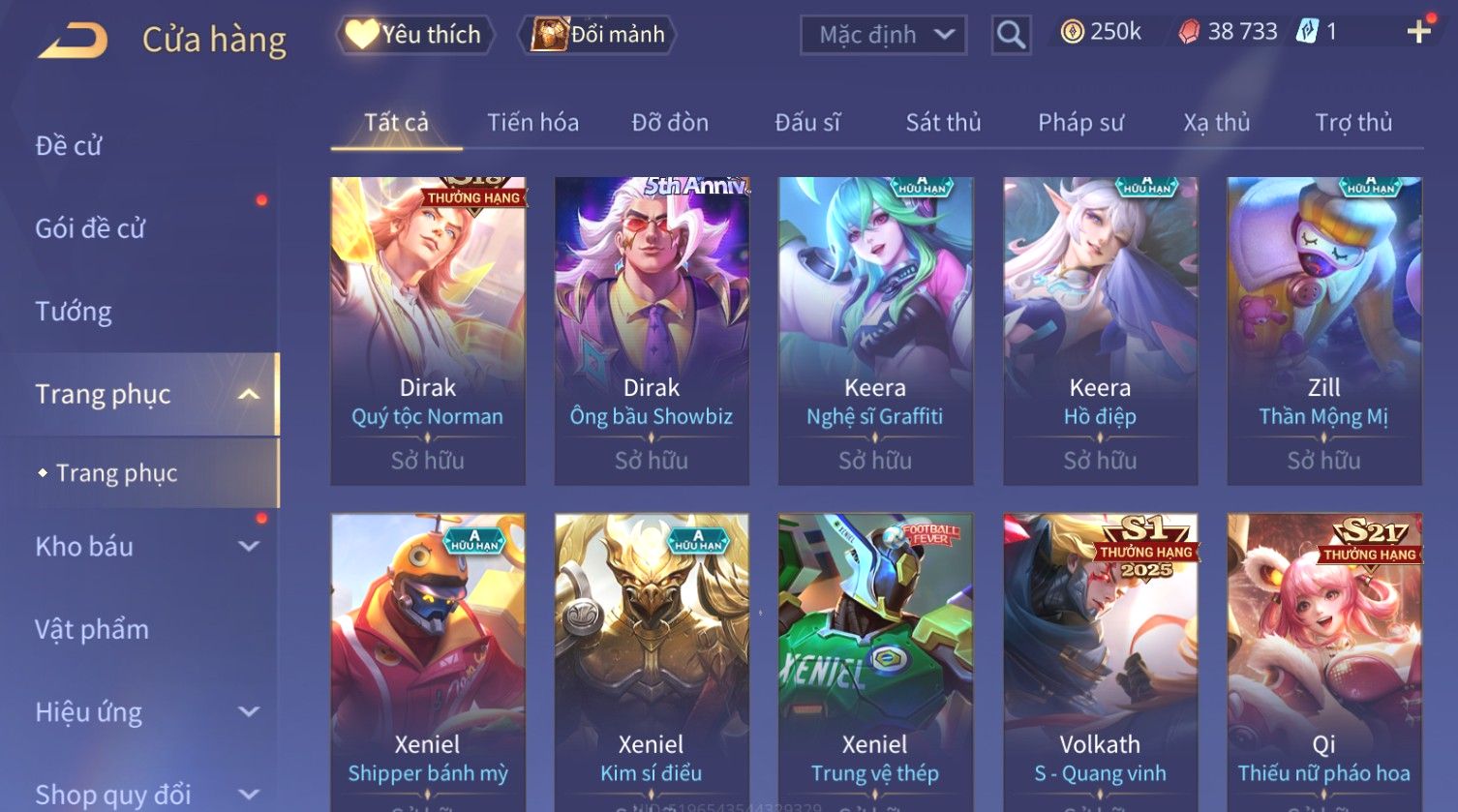 Nổi bật: Skin: Raz Chiến Thần Muay Thái×Yorn Long Thần Soái×Zata Chí Tôn Tà Phượng×Ngộ Không Thần Giáp Xích Diễm×Fennik Phong Tranh Thám Xuân×Lauriel Phi Thiên×Elsu Trấn Thiên Phi Hồ×Omen Đao Phủ Tận Thế×Florentino Giám Sát Tinh Hệ×Ilumia Nộ Hải Thiên Ngư×Full Ngọc, Nhiều Skin SS Đẹp