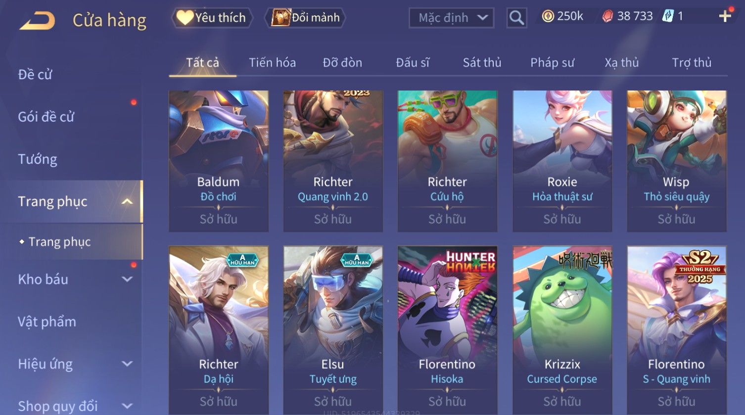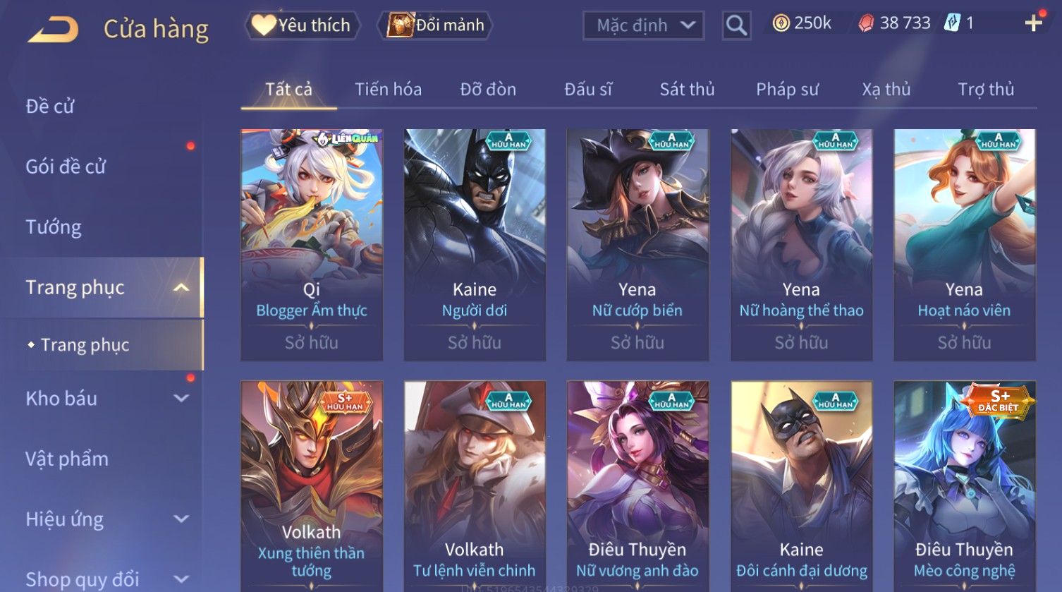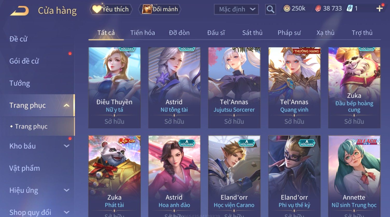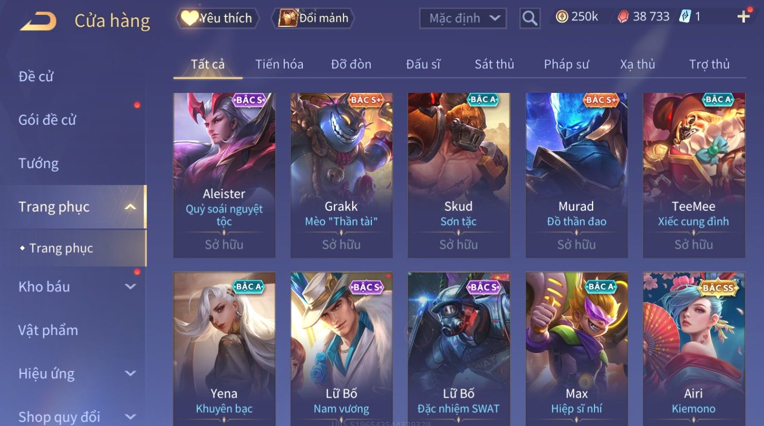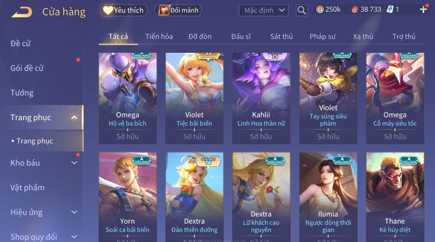 Nổi bật: Skin: Raz Chiến Thần Muay Thái×Yorn Long Thần Soái×Zata Chí Tôn Tà Phượng×Ngộ Không Thần Giáp Xích Diễm×Fennik Phong Tranh Thám Xuân×Lauriel Phi Thiên×Elsu Trấn Thiên Phi Hồ×Omen Đao Phủ Tận Thế×Florentino Giám Sát Tinh Hệ×Ilumia Nộ Hải Thiên Ngư×Full Ngọc, Nhiều Skin SS Đẹp