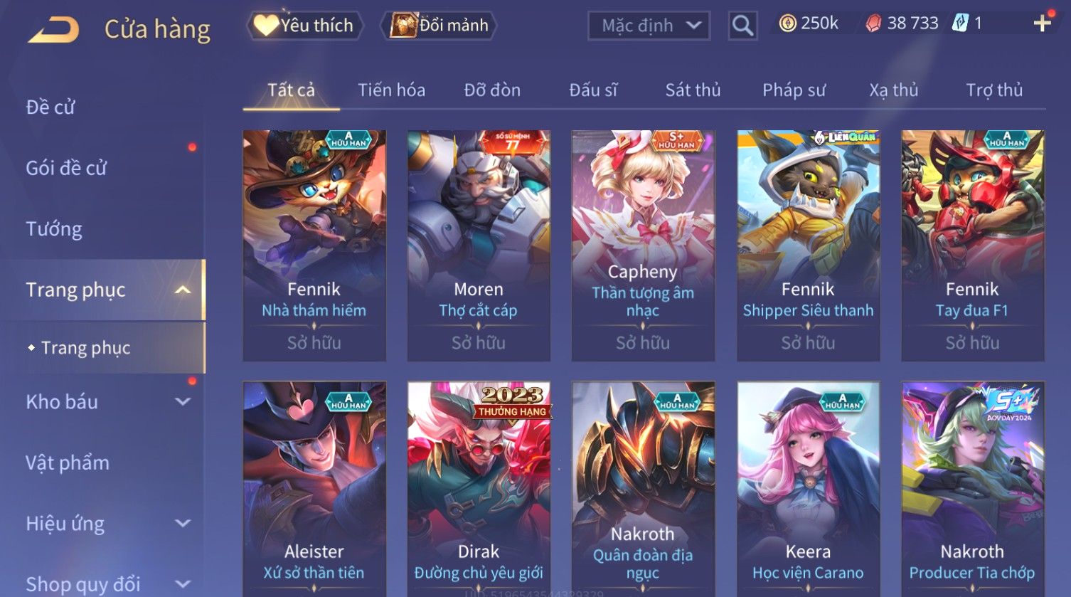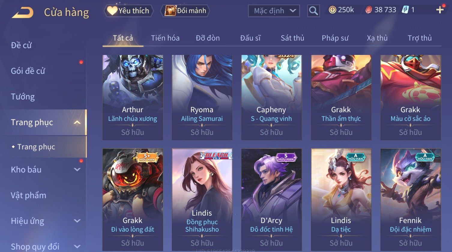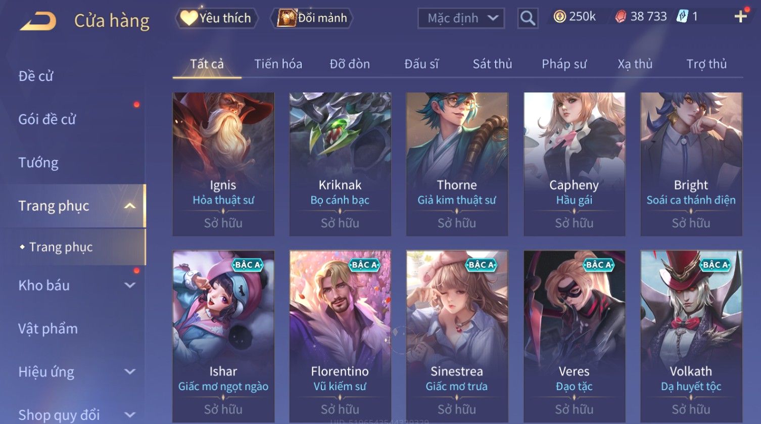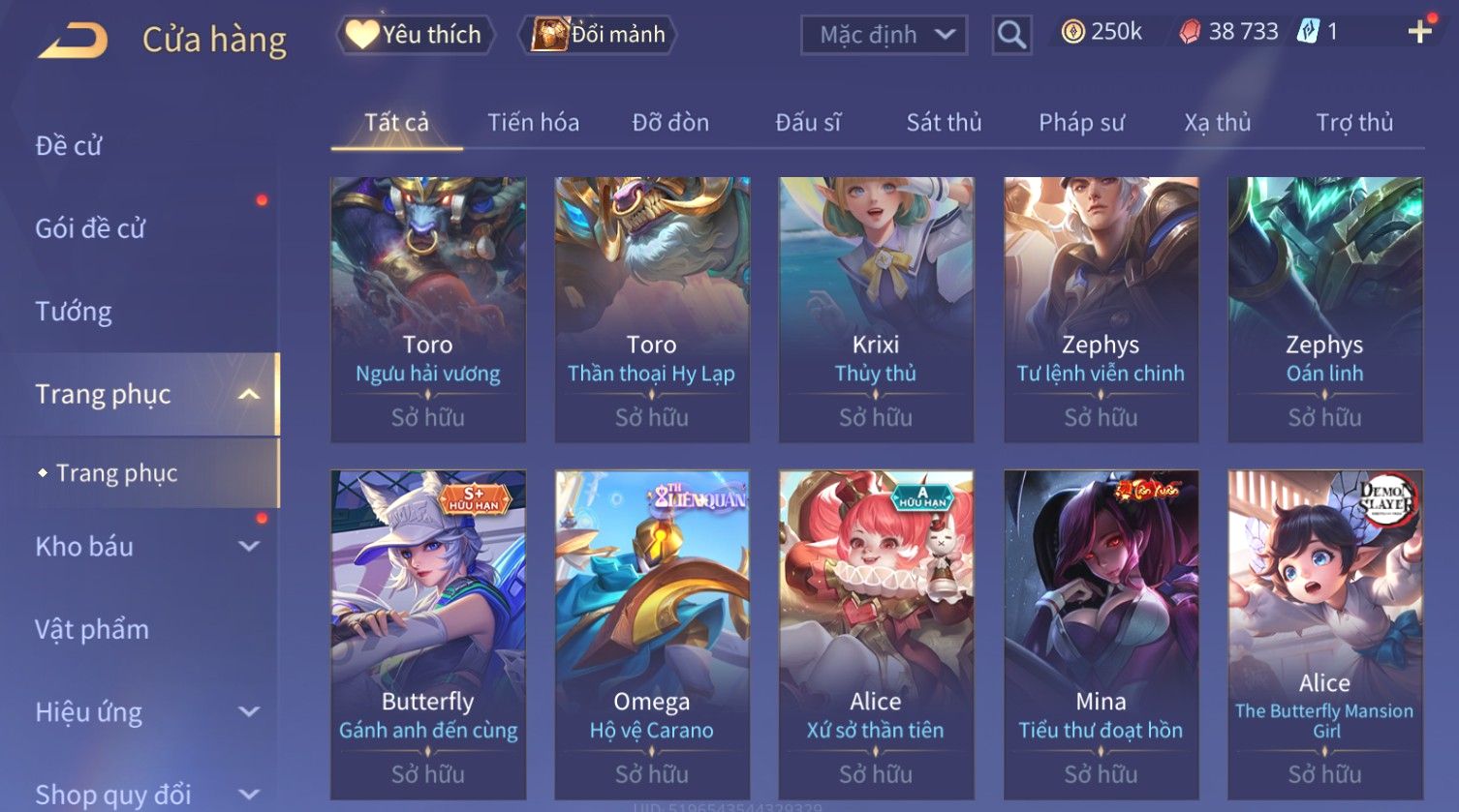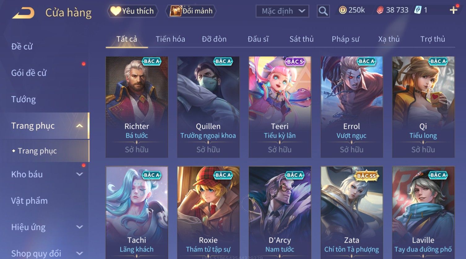 Nổi bật: Skin: Raz Chiến Thần Muay Thái×Yorn Long Thần Soái×Zata Chí Tôn Tà Phượng×Ngộ Không Thần Giáp Xích Diễm×Fennik Phong Tranh Thám Xuân×Lauriel Phi Thiên×Elsu Trấn Thiên Phi Hồ×Omen Đao Phủ Tận Thế×Florentino Giám Sát Tinh Hệ×Ilumia Nộ Hải Thiên Ngư×Full Ngọc, Nhiều Skin SS Đẹp