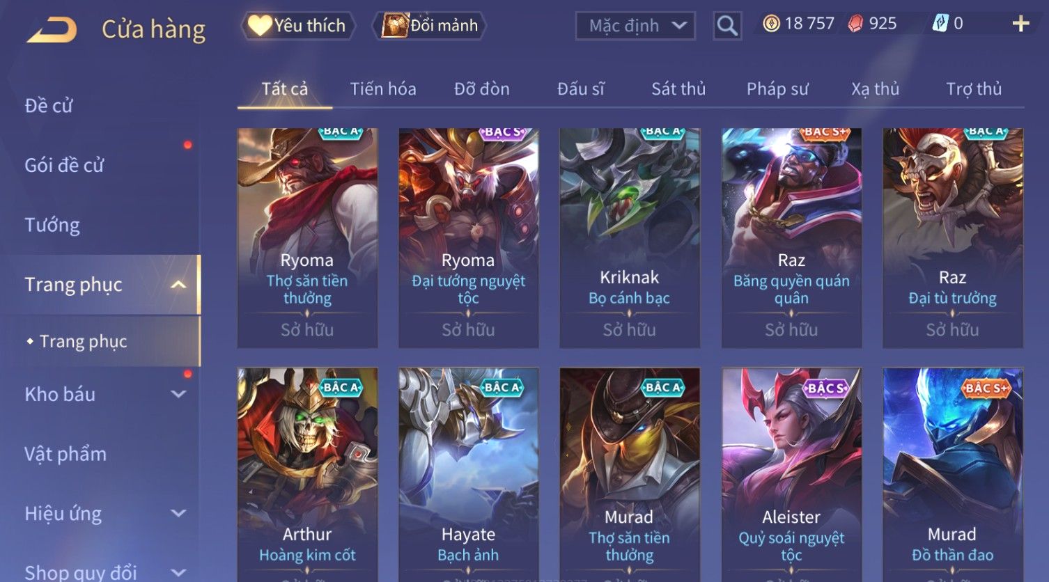 Nổi bật: Full Ngọc, Nhiều Skin SS Đẹp