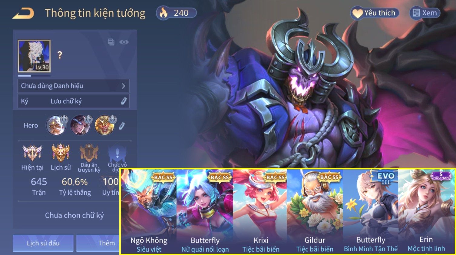 Nổi bật: Skin: Ngộ Không Siêu Việt×Butterfly Nữ Quái Nổi Loạn×Gildur Tiệc Bãi Biển×Krixi Tiệc Bãi Biển×